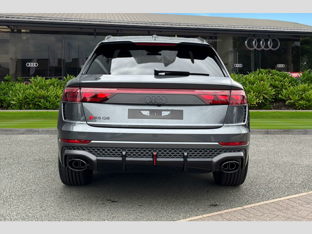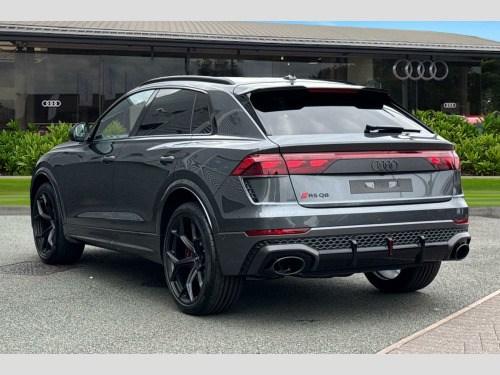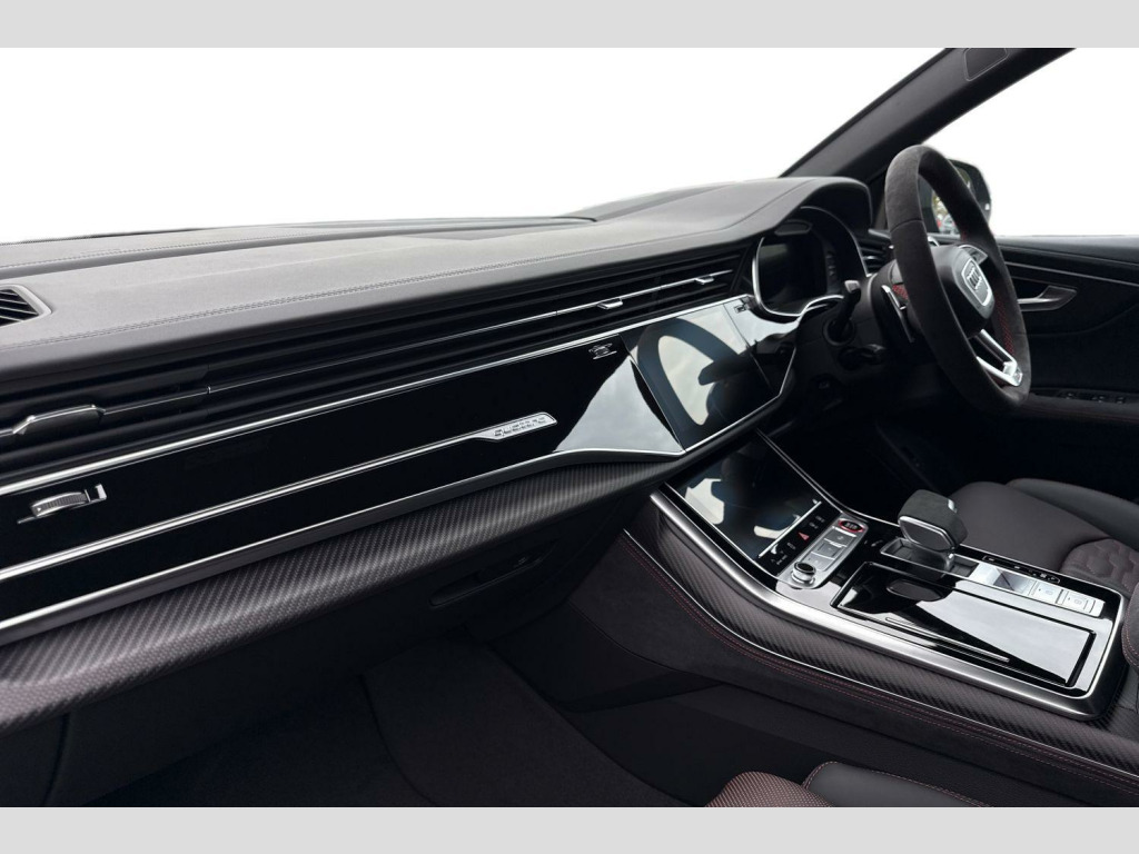 Price shown includes a deposit contribution of £1250 when purchased on finance by 31/12/25. Solutions Personal Contract Plan. 6.9% APR Representative. Audi Financial Services. Terms and Conditions apply. RS Design Pack Plus - Red, Black Roof Rails, RS Ceramic Brakes with Brake Calipers in Red, 23in Alloy Wheels - 5-Y-Spoke - Audi Sport - Matt Contrasting Black, 360 Degree Camera, 4-Way Lumbar Support for Front Seats, 4-Zone Automatic Air Conditioning, AMI - Audi Music Interface, Adaptive Cruise Assist with Emergency Assist, Air Ioniser and Aromatization, All-Wheel Steering, Anti-Theft Alarm, Anti-Theft Wheel Bolts and Wheel Loosening Warning, Audi Connect Navigation and Infotainment (3 Year Subscription From New), Audi Connect Safety and Service - e-call, Audi Connect with Amazon Alexa Integration, Audi HD Matrix LED Headlights with Audi Laser Light, Audi Phone Box Light, Audi Pre-Sense Front, Audi Smartphone Interface, Audi Virtual Cockpit, Auto Dimming and Frameless Rear View Mirror, Bang and Olufsen 3D Premium Sound System, Black Cloth Headlining, Camera Based Traffic Sign Recognition, City Assist Pack, Comfort Front Centre Armrest, Convenience Key, DAB Digital Radio, Digital OLED Rear Combination Lamps, Door Mirrors - Electrically Adjustable - Heated - Folding - Automatically Dimming with Memory Function and Integrated LED Indicators with Kerb View Function for Passenger Side, Door Mirrors in Matt Carbon, Double Sun Visor, Driver - Front Passenger - Front Side and Curtain Airbag System, Driver and Front Passenger Memory Function for the Electrically Adjustable Front Seats, ESC - Electronic Stabilisation Control inc ABS - ASR and EDL, Electric Sunblinds for the Rear Side Windows and Manual Sunblind for the Rear Window, Electric Windows - Front, Electromechanical Active Roll Stabilisation, Electromechanical Power Steering, Extended LED Interior Lighting Package - Multi-Coloured, First Aid Kit and Warning Triangle, Front Seat Ventilation, Head-Up Display, Headlight Washers, Heated Front Seats, Hold Assist, ISOFIX Child Seat Mounting for Front Passenger, Illuminated Door Sill Trims with RS Logo, Inlays - Matt Carbon Twill, Intersection Assist, LED Entry Lights - Front and Rear, LED Projection of RS Performance Logo when Opening the Front and Rear Side Doors, Lane Departure Warning, MMI Navigation Plus including MMI Touch, Matt Carbon Black Styling Package, Natural Voice Recognition, Operating Buttons in Black - Glass Look, Panoramic Glass Sunroof, Park Assist with Parking System Plus, Parking System Plus with 360 Degree Display - Front - Rear and Side Sensors, Pedals in Stainless Steel, Power Latching for the Doors, Power Operated Tailgate, Privacy Glass - Dark-Tinted Rear and Rear-Side Windows - From B-Pillar Backwards, RS 3-Spoke Heated Leather Multi-function Sport Steering Wheel with Shift Paddles and RS Mode Button, RS Adaptive Air Suspension, RS Audi Drive Select, RS Badges on the Front Wings, RS Ceramic Brakes with Brake Calipers in Anthracite Grey, RS Coming-Leaving Home Animations in Front and Rear, RS Design Package - Grey, RS Manhattan Grey Front Spoiler Lip and Rear Diffuser Insert, RS Specific Bumpers in Full Body Colour, RS Specific Styling, RS Sport Exhaust System with Black Exhaust Tips, Rear Bench Seat Plus, Seat Belt Monitoring, Signature LED Daytime-Running Lights, Standard Pedestrian Protection Measures, Steering Column - Electrically Adjustable with Memory, Technology Pack Pro, Tool Kit, Tour Pack, Tyre Pressure Loss Indicator, Tyre Repair Kit, Upper and Lower Interior Elements in Leather, Window Trim Strips in Matt Grey with Audi Rings and Emblem in Black, Windshield with Heat Insulated Glass, quattro All-Wheel Drive with Sport Differential