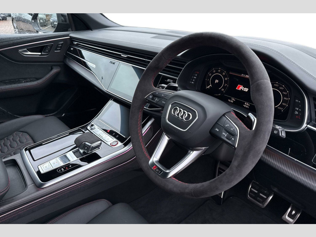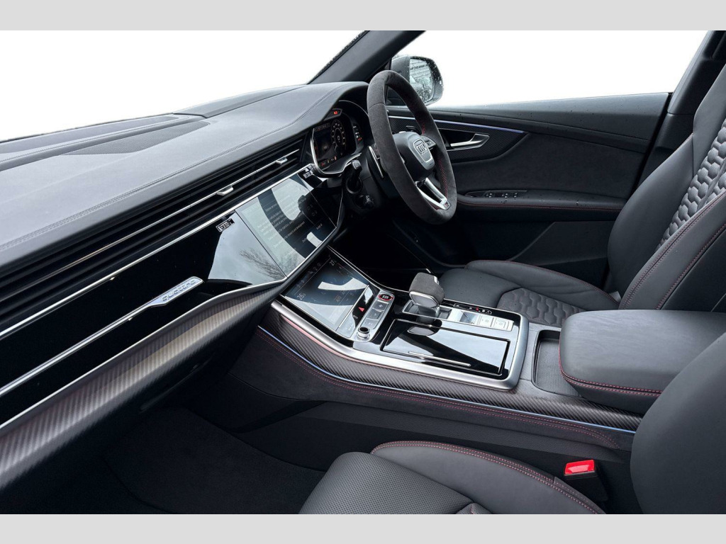Perforated Valcona Leather - Super Sport Seats - Black with Express Red Stitching, RS Design Package - Red, RS Ceramic Brakes with Brake Calipers in Red, 23in Alloy Wheels - 5-Y-Spoke - Audi Sport - Matt Contrasting Black, 360 Degree Camera, 4-Way Lumbar Support for Front Seats, 4-Zone Automatic Air Conditioning, AMI - Audi Music Interface, Adaptive Cruise Assist with Emergency Assist, Air Ioniser and Aromatization, All-Wheel Steering, Anti-Theft Alarm, Anti-Theft Wheel Bolts and Wheel Loosening Warning, Audi Connect Navigation and Infotainment (3 Year Subscription From New), Audi Connect Safety and Service - e-call, Audi Connect with Amazon Alexa Integration, Audi HD Matrix LED Headlights with Audi Laser Light, Audi Phone Box Light, Audi Pre-Sense Front, Audi Smartphone Interface, Audi Virtual Cockpit, Auto Dimming and Frameless Rear View Mirror, Bang and Olufsen 3D Premium Sound System, Black Cloth Headlining, Camera Based Traffic Sign Recognition, City Assist Pack, Comfort Front Centre Armrest, Convenience Key, DAB Digital Radio, Digital OLED Rear Combination Lamps, Door Mirrors - Electrically Adjustable - Heated - Folding - Automatically Dimming with Memory Function and Integrated LED Indicators with Kerb View Function for Passenger Side, Door Mirrors in Matt Carbon, Double Sun Visor, Driver - Front Passenger - Front Side and Curtain Airbag System, Driver and Front Passenger Memory Function for the Electrically Adjustable Front Seats, ESC - Electronic Stabilisation Control inc ABS - ASR and EDL, Electric Sunblinds for the Rear Side Windows and Manual Sunblind for the Rear Window, Electric Windows - Front, Electromechanical Active Roll Stabilisation, Electromechanical Power Steering, Extended LED Interior Lighting Package - Multi-Coloured, First Aid Kit and Warning Triangle, Front Seat Ventilation, Head-Up Display, Headlight Washers, Heated Front Seats, Hold Assist, ISOFIX Child Seat Mounting for Front Passenger, Illuminated Door Sill Trims with RS Logo, Inlays - Matt Carbon Twill, Intersection Assist, LED Entry Lights - Front and Rear, LED Projection of RS Performance Logo when Opening the Front and Rear Side Doors, Lane Departure Warning, MMI Navigation Plus including MMI Touch, Matt Carbon Black Styling Package, Natural Voice Recognition, Operating Buttons in Black - Glass Look, Panoramic Glass Sunroof, Park Assist with Parking System Plus, Parking System Plus with 360 Degree Display - Front - Rear and Side Sensors, Pedals in Stainless Steel, Power Latching for the Doors, Power Operated Tailgate, Privacy Glass - Dark-Tinted Rear and Rear-Side Windows - From B-Pillar Backwards, RS 3-Spoke Heated Leather Multi-function Sport Steering Wheel with Shift Paddles and RS Mode Button, RS Adaptive Air Suspension, RS Audi Drive Select, RS Badges on the Front Wings, RS Ceramic Brakes with Brake Calipers in Anthracite Grey, RS Coming-Leaving Home Animations in Front and Rear, RS Design Package - Grey, RS Manhattan Grey Front Spoiler Lip and Rear Diffuser Insert, RS Specific Bumpers in Full Body Colour, RS Specific Styling, RS Sport Exhaust System with Black Exhaust Tips, Rear Bench Seat Plus, Seat Belt Monitoring, Signature LED Daytime-Running Lights, Standard Pedestrian Protection Measures, Steering Column - Electrically Adjustable with Memory, Technology Pack Pro, Tool Kit, Tour Pack, Tyre Pressure Loss Indicator, Tyre Repair Kit, Upper and Lower Interior Elements in Leather, Window Trim Strips in Matt Grey with Audi Rings and Emblem in Black, Windshield with Heat Insulated Glass, quattro All-Wheel Drive with Sport Differential