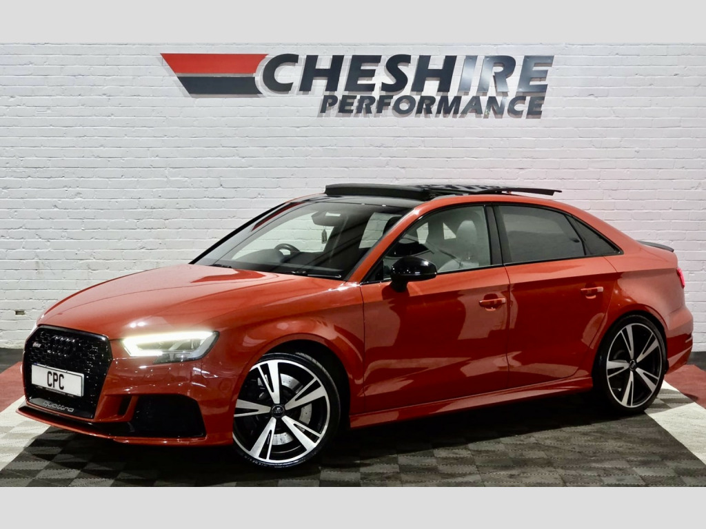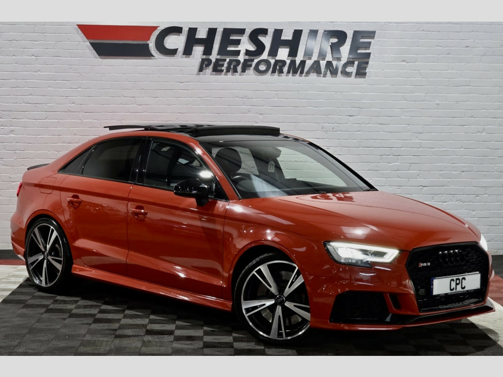 2017 67 AUDI RS3 2.5 TFSI SALOON 4DR S TRONIC QUATTRO. , This Vehicle Comes With Warranty As Standard, Please Call Us For More Details!, , Stunning Example With Only 2 Previous Keepers From New Presented In Audi Catalunya Red Paintwork With Contrasting Black Dakota Leather Seats Complete With 19 Inch Gloss Black Turbine Alloy Wheels With A Diamond Cut Finish Wrapped In Four Michelin Tyres. , Premium Enthusiast Owned Example Covering 36,000 Miles From New, Backed Up With Full Service History Which Is Up To Date With A Fantastic Collection Of Invoices To Show As Well As The Digital Print Out, Has Clearly Been Maintained To The Highest Standards, Very Clean Throughout With Excellent Bodywork, Unmarked Interior And Outstanding Wheels, New Owner Wont Be Disappointed. This Vehicle Comes With Two Keys. , Its 2.5 Litre 5 Cylinder Petrol Engine Produces Circa 500Bhp And 590Nm Of Torque Thanks To APR Stage 1 ECU Software. This Is Matched With Its 7 Speed Automatic Gearbox With The Option Of Using F1 Style Paddle Shifters Which Makes For A Superb Drive!, , This Example Benefits From Some Fantastic Modifications Including The Following;, *Stage 1 APR ECU Software. *Forge Front Mount Intercooler. *K&N Panel Filter. *Wheel Spacers. , Outstanding Spec Includes;, *Audi Catalunya Red Paintwork. *Electric Adjustable Black Nappa Heated Leather Seats. *19 Inch Gloss Black Rotor Alloy Wheels With A Diamond Cut Finish. *Electronic Tilt And Slide Panoramic Sunroof. *Audi Drive Select. (Comfort, Auto, Dynamic, Individual), *RS Valved Sports Exhaust. *Multi Function Half Alcantara Steering Wheel. *Cruise Control System. *Virtual Cockpit. *Torque And BHP Gauges. *Audi Black Pack. (Gloss Black Exterior Styling), *Audi Advanced Key. *Digital Dual Climate Control. *Sound Pack. *Heated Wing Mirrors. *Parking Sensors. *Reverse Camera. *Automatic Xenon LED Headlights. *Automatic Windscreen Wipers. *Upgraded Bang & Olufsen Sound System. *Audi Multi Media Interface. *Satellite Navigation. *DAB Radio. *Bluetooth Connectivity. *Electronic Parking Brake. *Auto Hold. *Illuminated Cup Holders. *Ambient Interior Lighting. *Illuminated Door Sills. *Privacy Glass. *Split Folding Rear Seats. , Excellent Standard Spec Includes; Height Adjustable Steering Wheel, Cup Holders, Traction Control, Arm Rest, 12V And Much More. , All Our Vehicles Have Been Road Tested With Multi Point Checks And We Welcome RAC Or AA Inspections, For Your Added Peace Of Mind All Of Our Vehicles Are HPI Clear. , We Can Provide A Decision Within 30 Minutes Please Call Us To Discuss Your Requirements, Our Finance Partners Include Close Brothers | CF247 | Motonovo | Evolution And Others. , We Offer Full Dealer Facilities Including A Comfortable Customer Office An Indoor Viewing Area And We Accept All Methods Of Payment, We Are Open 7 Days A Week Please Call Ahead To Ensure The Vehicle Of Interest Is Still Available, Sales 0161 336 2007 Or General Enquiries 0161 335 0008. , Every effort has been made to ensure the vehicle has been described accurately in accordance with its age and mileage, The data above details the usual specification of the most recent model of this vehicle and may vary for the actual vehicle for sale. , Please always check the vehicle specification prior to purchase. If You Have Any Questions Please Get In Touch And We Will Be Happy To Help. , All Our Vehicles Come With Warranty Included, Extended Warranty Options Available, We Offer Finance With Competitive HP And PCP Deals Available, Visit Our Website To Use Our Online Calculator And Apply Online Today!