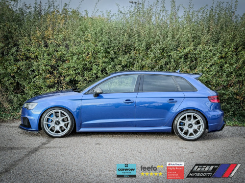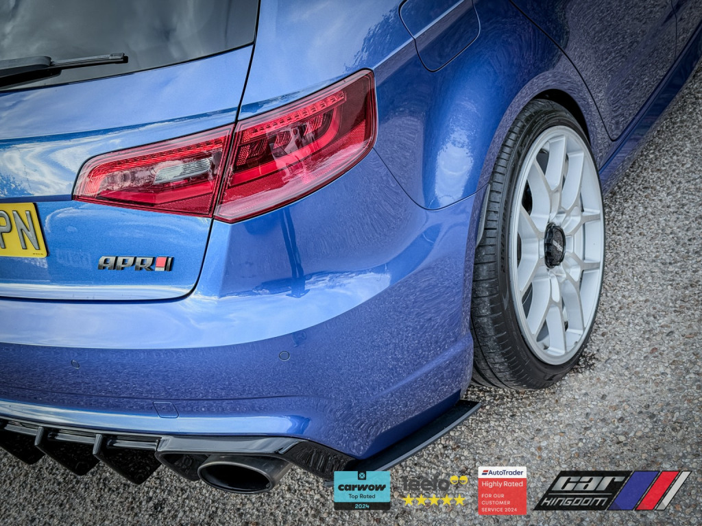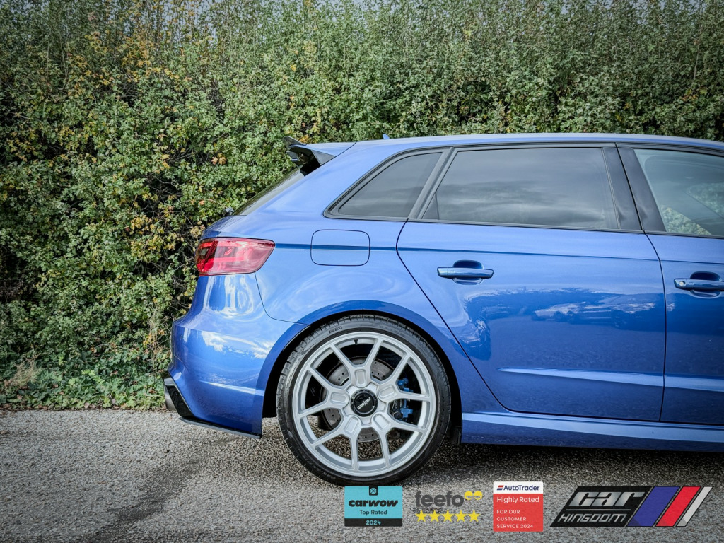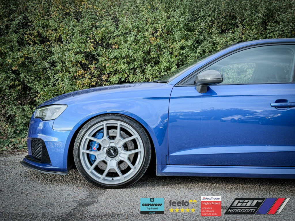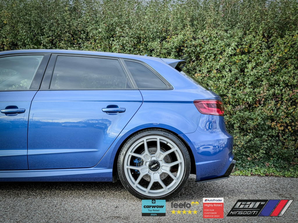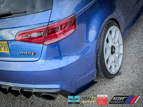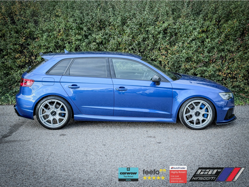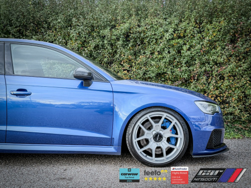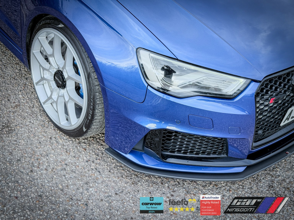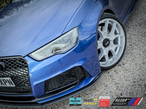 APR Stage 1 tuned RS3! Very clean condition with excellent looking Rotiform ZMO Alloys with Pirelli tyres all round. Finished in Sepang Blue. An excellent car to drive and looks amazing with the upgraded alloy wheels and Maxton Design bodykit. Inside we have heated Leather seats and custom Carbon Fibre steering wheel, original wheel is also included. Tuned to Stage 1 for staggering performance! Custom exhaust.