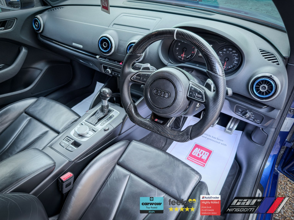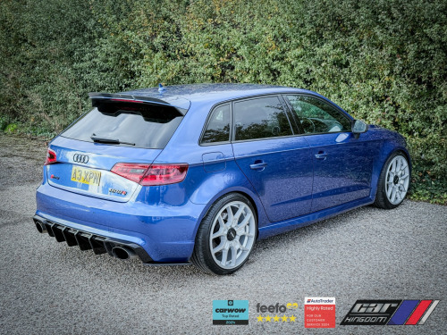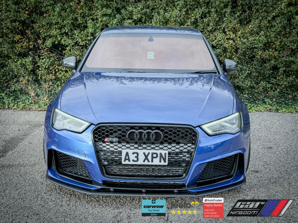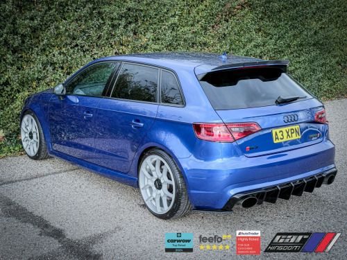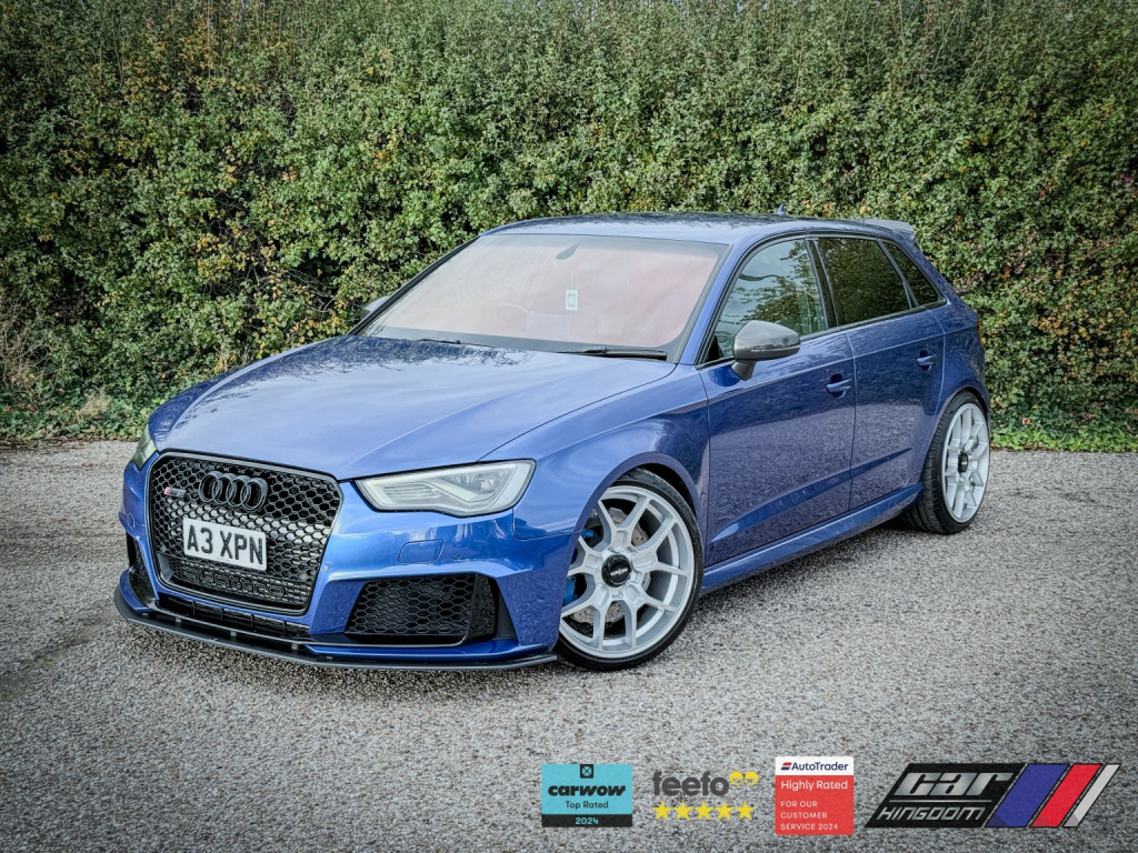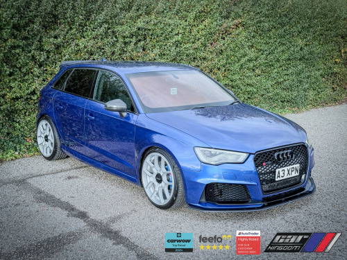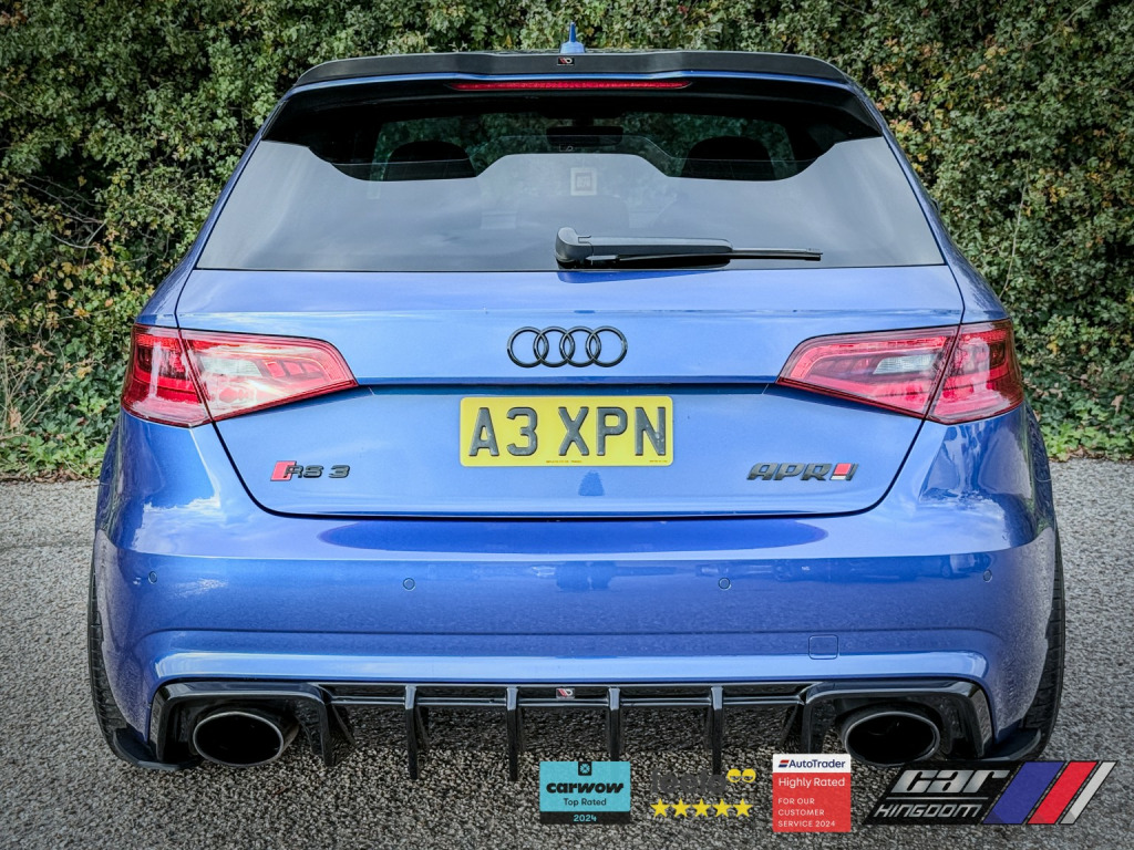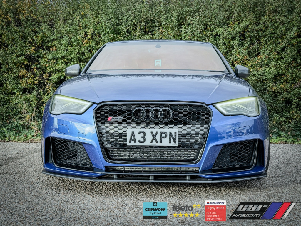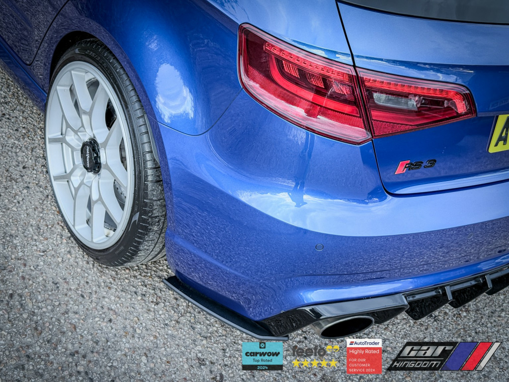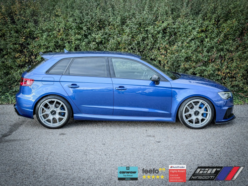 APR Stage 1 tuned RS3! Very clean condition with excellent looking Rotiform ZMO Alloys with Pirelli tyres all round. Finished in Sepang Blue. An excellent car to drive and looks amazing with the upgraded alloy wheels and Maxton Design bodykit. Inside we have heated Leather seats and custom Carbon Fibre steering wheel, original wheel is also included. Tuned to Stage 1 for staggering performance! Custom exhaust.