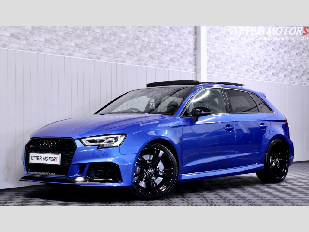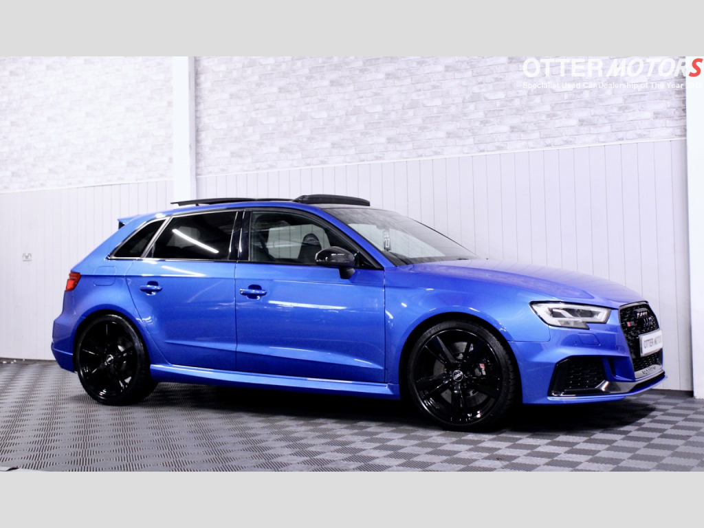 -???? OVER 300 5* REVIEWS ON AUTOTRADER + GOOGLE, -???? SPECIALIST USED CAR DEALERSHIP OF THE YEAR 2018, -???? SHORTLISTED USED CAR DEALERSHIP OF THE YEAR 2019, -???? AWARD WINNING SALES TEAM WITH THE FUTURE STAR AWARD 2020 FROM USED CAR MAGAZINE, -???? SHORTLISTED USED CAR DEALER OF THE YEAR 2022, -???? SHORTLISTED INDEPENDENT DEALER OF THE YEAR 2023, , - NEW 12 MONTH MOT, - FRESHLY SERVICED, - 6 MONTH NATIONWIDE WARRANTY, - BUY IN STORE OR ONLINE, - DELIVERY AVAILABLE, - APPLY FOR FINANCE ONLINE USING THE CALCULATOR BELOW, - BESPOKE VIDEO PRESENTATION UPON REQUEST, - MULTI-AWARD WINNING COMPANY AND STAFF, , Key Features;, , **ARA BLUE METALLIC PAINTWORK**AUDI SPORT PACK**BLACK STYLING EXTERIOR**FRONT AND REAR PARKING SENSORS**REAR VIEW CAMERA**19 RS ALLOY WHEELS**PRIVACY GLASS**LED HEADLIGHTS**VENTED BRAKE DISCS**BLACK RS BRAKE CALLIPERS**RS SUPER SPORT SEATS**BANG & OLUFSEN SOUND SYSTEM**VIRTUAL DASH**APPLE CAR PLAY**SAT NAV**DAB RADIO**TILT + SLIDE PANORAMIC SUNROOF**DUAL ZONE CLIMATE CONTROL**CARBON FIBRE INLAYS**FLAT BOTTOM LEATHER/SUEDE STEERING WHEEL**QUILTED LEATHER SUPER SPORT SEATS**HEATED FRONT SEATS**SERVICE HISTORY**, , Description;, , Finished in the stunning Ara Blue this 2020 Audi RS3 Saloon is a truly magnificent car. It boasts an outstanding spec owing to its upgraded packs and sits in brilliant condition both inside and out. With the usual refinements taken care of the car also boasts Apple Car Play, Reversing Camera, Bang & Olufsen Sound, Heated Super Sport Seats, and the all important Tilt + Slide Panoramic Sunroof! a 2 owner example with an excellent service history - including a gearbox and all-wheel drive service in March 2025 - this is a rare and exceptional example that you dont want to miss! (MA20 GGX), , Every vehicle we sell undergoes rigorous preparations including a Fresh Service, 12 Month MOT, and professional valet & detail to ensure our high standards are met! With over 20 years specialist experience, weve built a trusted reputation across the Southwest and Nationally! Our showroom is conveniently located near Exeter (EX11 1RE), just 10 minutes from the M5, however we also offer nationwide delivery, bringing your next car straight to your door. , IF YOU HAVE ANY QUESTIONS PLEASE CONTACT US ON 01404 812608 / 07445 137231 / [email protected] / WHATSAPP. VISIT OUR FAQ PAGE FOR FREQUENTLY ASKED QUESTIONS.