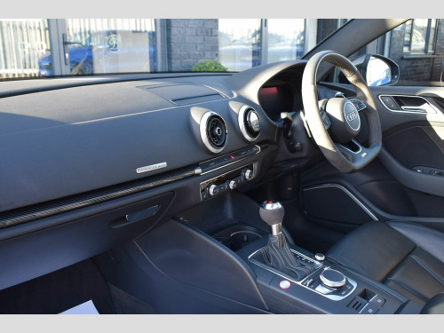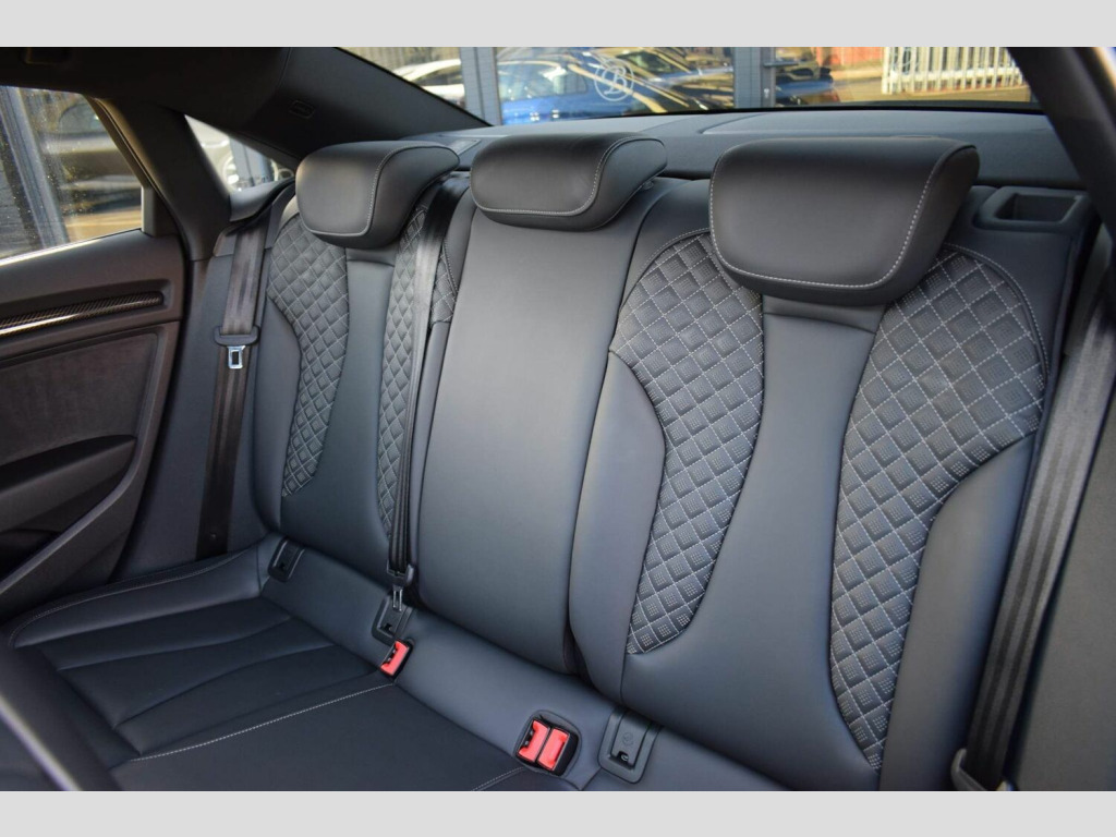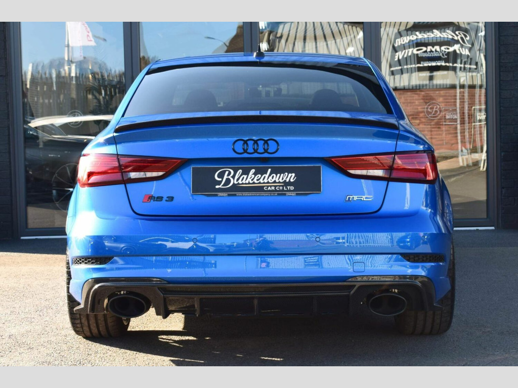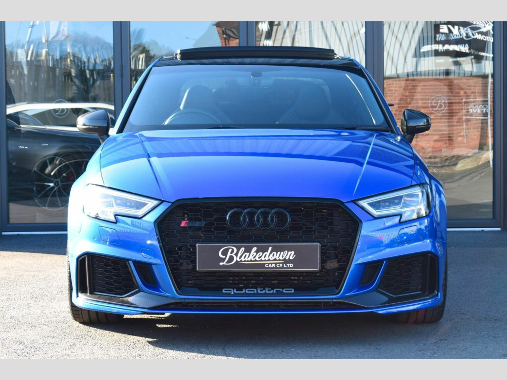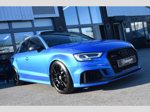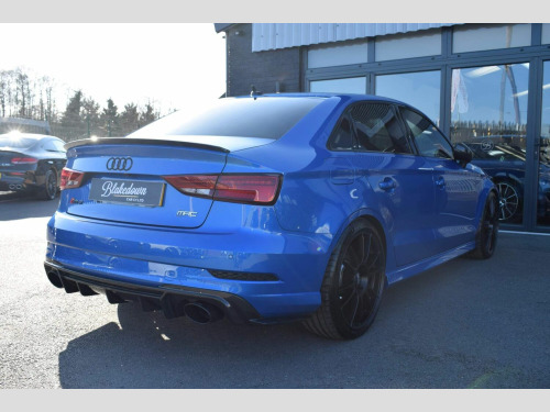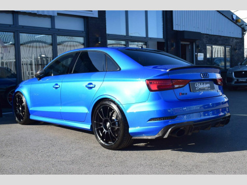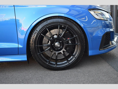 November 2019 â69 Audi RS3 2.5 Quattro Saloon Audi Sport Edition finished in Ara Blue Crystal Effect with full black Fine Nappa leather interior and Rock Grey contrast stitching. Just 17750 miles covered by two owners which is supported by full specialist service history. Serviced in March 2021 VRS motorsport and again in October 2021 by QS Tuning which also included a DSG service. Spark plugs replaced in 2020 for NGK racing plugs. This car is presented in fantastic condition inside and out having been enthusiast owned, maintained and modified including bodywork, wheels and interior and is supplied with two keys, all correct handbooks etc. This RS3 has been tastefully modified and is running Ultrasonic Stage 2 ECU calibration to produce an impressive 555ps with dyno printout present from MRC. The additional/supporting modification list includes: TVS Stage 3 TCU Calibration, Forge Race Intercooler, Sports Cat and OPF Delete (MOT compliant), Scorpion Cat Back Exhaust System, Forge Hard Turbo Pipe, IE Carbon Intake System, Forge Boost Hoses, AEM Meth Kit And Controller, Innovate Ethanol Gauge, Bilstien B16 Coilovers, KW Mag Ride Delete, H&R 25mm Rear Anti Roll Bar, O.Z Racing Ultraleggera HLT Alloys, 245/35/19 Square Set Up, Alignment & Corner Weight Set Up. Forge DSG Dog Bone Mount, AP Front Bumper Carbon Inserts, Audi Sport Carbon Wing Mirrors, AP Carbon Rear Lip Spoiler , AP Carbon Rear Diffuser and finally a Ghost Immobiliser system with Smartrac Tracker for additional security. Not only is this car boasting a super modification list but also comes with a superb factory specification with options fitted on top of the already comprehensive Audi Sport Edition spec to include: Comfort and Sound Package (Bang & Olufsen Audio, Reverse Camera and Advanced Key), Matrix LED Exterior Lighting Pack and RS Embossed Super Sports Seats. Other equipment includes: 19in Alloy Wheels - 5-Arm Rotor Design Audi Sport, Audi Parking System Plus, Audi Phone Box with Wireless Charging, Audi Virtual Cockpit, MMI Navigation Plus with MMI Touch, Panoramic Glass Sunroof and more.