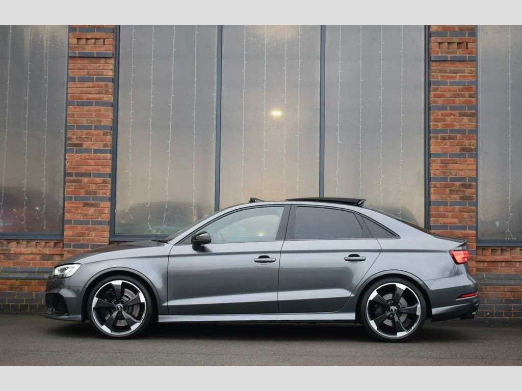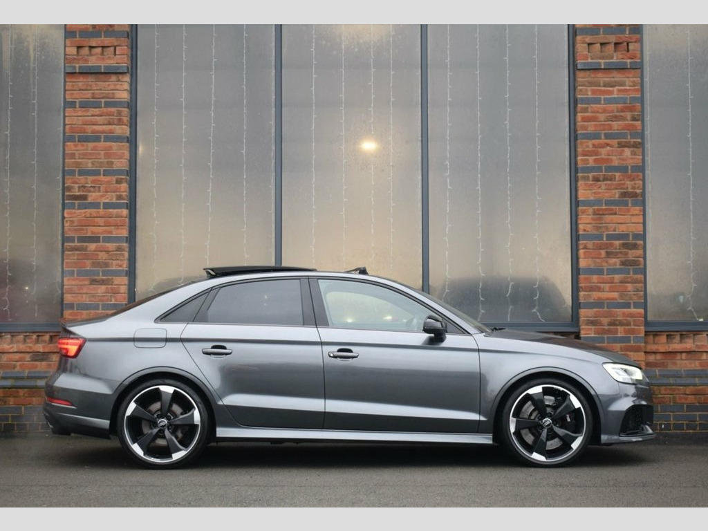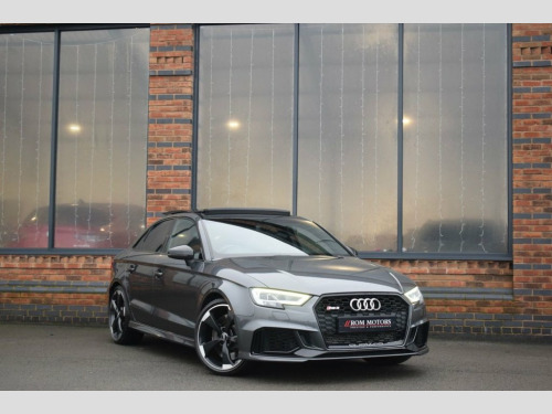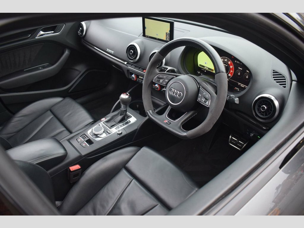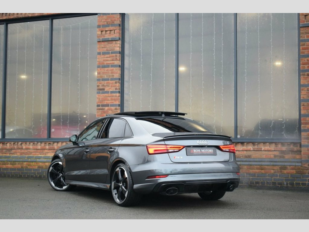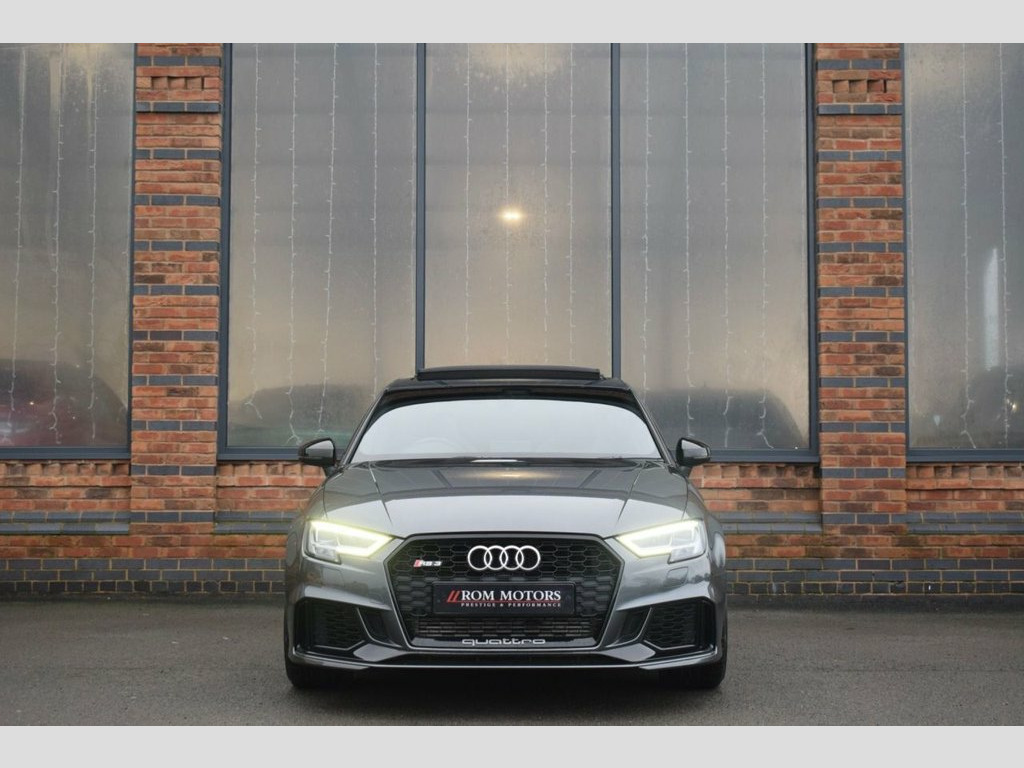 Rom Motors are delighted to offer this beautiful Audi RS3 Sport Edition for sale, finished in the ever so popular and desirable Daytona Grey Metallic. Audi's Sport Edition trim pack on the late 8V cars gives you all of the big options as standard, full exterior gloss black package, panoramic sunroof, Super Sports Bucket Seats, Sports Exhaust & Carbon Interior Inlays. All of that with out mentioning its famous 2.5L turbo charged 5 cylinder under the bonnet. Our example benefits from a full Audi service history with matching Audi rated Pirelli P Zero's all round; really showing how well this vehicle has been maintained and cherished by it's previous owners (3 in total). PAYMENT: We accept debit cards for payments up to £500. For larger payments we accept BACS (bank transfer) only. Please check transfer processing times and limits with your bank if you plan to pay on collection as we are unable to release cars without cleared funds. Please also bring anything you may need to access your online banking on the day including securekeys, card readers etc. Please note a £249 admin fee is applicable for purchases funded by third party finance lenders. Fine Nappa Leather with Rhombus Pattern , Fine Nappa Leather with Rhombus Pattern , Daytona Grey, Comfort and Sound Package, 19in Alloy Wheels - 5-Arm Rotor Design A, 2 x USB Charging Ports and 1 x AUX-IN, 6-Airbag System with Knee Airbag for Dri, Aluminium Interior Elements, Anti Theft Locking Wheel Bolts, Anti-Theft Alarm, Audi Connect Infotainment Services (36 M, Audi Drive Select, Audi Hill Hold Assist, Audi Parking System Plus, Audi Phone Box with Wireless Charging, Audi Smartphone Interface, Audi Sound System, Audi Virtual Cockpit with RS Specific Di, Auto-Dimming Rear-View Mirror, Black Door Mirrors, Black Styling Package, Bluetooth Interface, Brake Calipers Painted in Black with RS ,