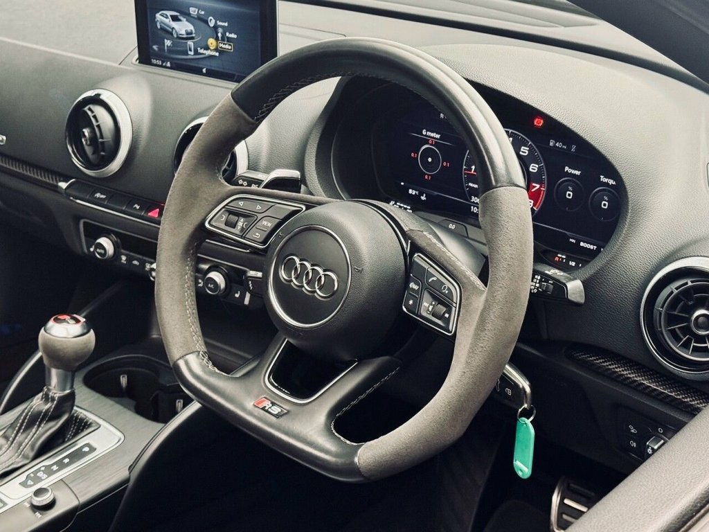 Finished in Mythos Black with Fine Nappa Leather with Rhombus Pattern - RS Sport Seats with RS Embossed Logo - Black- Grey Stitching. --- FACTORY SPEC --- It boasts some amazing Spec from the factory including; Panoramic Glass Sunroof / 19in Alloy Wheels - 5-Arm Rotor Design Audi Sport - Gloss Anthracite Black - Diamond Cut Finish / RS Sports Exhaust System / RS Sports Suspension / Audi Phone Box with Wireless Charging / Audi Smartphone Interface / Audi Sound System / Audi Virtual Cockpit with RS Specific Display / Black Styling Package / Brake Calipers Painted in Black with RS Logo at the Front / Audi Hill Hold Assist / Audi Parking System Plus / Cruise Control / Heated Front Seats / Inlays - Carbon / LED Headlights with LED Rear Lights and Dynamic Rear Indicators / MMI Navigation Plus including MMI Touch / DAB Radio / Bluetooth / Door Mirrors - Electrically Adjustable and Heated with Integrated LED Side Indicators / Auto-Dimming Rear-View Mirror / Tyre Pressure Monitoring System / Privacy Glass plus so much more. --- SERVICE HISTORY --- Excellently maintained with service history present, 4 services from Audi in total with the most recent carried out on 29,712 miles and included Spark Plugs and a Brake Fluid service. Independent Multi-point health check just carried out showing a clean bill of health. MOT due 01/09/2026 Fine Nappa Leather with Rhombus Pattern , 19in Alloy Wheels - 5-Arm Rotor Design A, 2 x USB Charging Ports and 1 x AUX-IN, 6-Airbag System with Knee Airbag for Dri, Aluminium Interior Elements, Anti Theft Locking Wheel Bolts, Anti-Theft Alarm, Audi Connect Infotainment Services (36 M, Audi Drive Select, Audi Hill Hold Assist, Audi Parking System Plus, Audi Phone Box with Wireless Charging, Audi Smartphone Interface, Audi Sound System, Audi Virtual Cockpit with RS Specific Di, Auto-Dimming Rear-View Mirror, Black Door Mirrors, Black Styling Package, Bluetooth Interface, Brake Calipers Painted in Black with RS , CD Drive, Cruise Control, DAB Digital Radio, Door Mirrors - Electrically Adjustabl