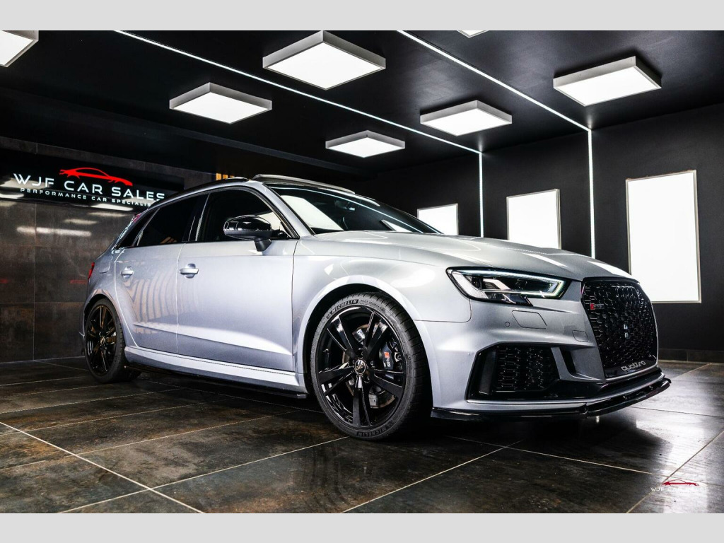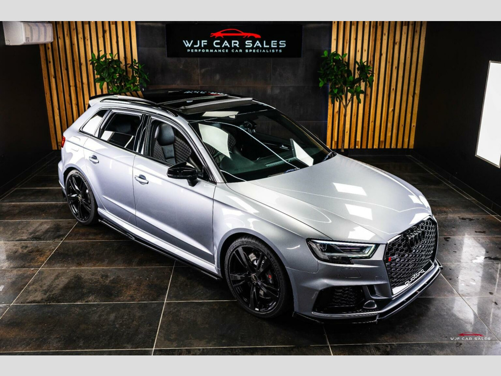 PLEASE SEE WEBSITE WWW.WJFCARSALES.CO.UK, WJF Car Sales Proudly presents this June 2020 Registered, Audi RS3 Sport Edition, Finished in Floret Silver Metallic Paint, Covering 52140 Miles, Full Service History, Just Had Major Service See Below, Supplied with 2 Keys, 6 Months Warranty, 6 Months Breakdown Cover, Service Plans and Extended Warranties Available. MODIFICATIONS: CTS Air Intake, Ghost Immobiliser and Maxton Kit. SPECIFICATION: 19 Inch Alloys, Adaptive Dampers, Adaptive High Beam, Apple CarPlay, Audi Phone Box, Audi Sport Pack, Bang and Olufsen, Bluetooth, Carbon Interior Trim, Climate Control, Comfort and Sound Pack, Cruise Control, DAB Radio, Electric Folding Mirrors, Gloss Black Styling Pack, Heated Front Seats, High Beam Assist, ISOFIX, Keyless Entry, Keyless Start, LED Headlights, Mag Ride, Multi Function Steering Wheel, Panoramic Roof, Parking Sensors, Privacy Glass, Reversing Camera, Satellite Navigation, Super Sport Seats, TPMS. SERVICE HISTORY:, PDI: 22/06/2020 @ 0 Miles , 1st Service: 02/06/2021 @ 4882 Miles - Audi, 2nd Service: 27/09/2021 @ 14749 Miles - Audi, 3rd Service: 09/11/2022 @ 20912 Miles - Awesome GTi, 4th Service: 23/10/2023 @ 30432 Miles - Kolatech , 5th Service: 13/09/2024 @ 40819 Miles - Awesome GTI , 6th Service: 24/11/2025 @ 52129 Miles - WJF Performance - Added to Digital History Record - Dust Filter, Engine Oil & Filter, Spark Plugs, Haldex Oil, S Tronic Service, Front and Rear Brake Pads. VCDS Checks: , 24/11/2025 - Mileage Confirmed as Correct. FINANCE:, Funding Options Available From 9.9% APR, **Viewings By Appointment ONLY**, Home Delivery Available on our Transporter , Part Exchange Welcome, Youtube Video we recommend to watch on your smart TV in 4K, We accept card payments up to £1,000.00, for larger payments it is BACS(bank transfer) so please bring anything you may need to access your online banking on the day including secure keys, card readers etc. We will not release cars without cleared funds, We accept cash payments up to £8000. Please note a £350 admin fee is applicable for purchases funded by third party finance lenders.