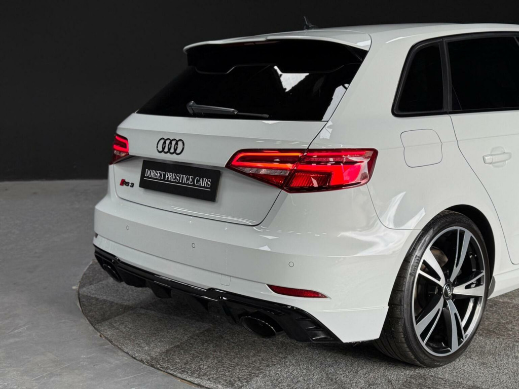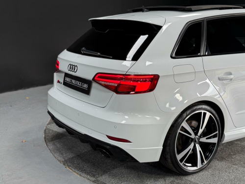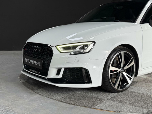 Dorset Prestige Cars are proud to present to you this Lovely Example 2019 Audi RS3 2.5 TFSI Audi Sport Edition Sportback S Tronic quattro. Finished in Glacier white metallic with Black Leather Heated seats. 19inch Diamond Cut RS Alloy Wheels with 4-Brand new P-Zero Tyres, Black Callipers, Front & Rear Parking sensors, Privacy pack, Panoramic Glass Sliding Roof, Daytime running lights, Carbon Interior Pack, Satellite navigation, Alcantara flat bottom multifunction steering wheel, Alcantara gear lever, Lumber support Seats, Automatic Cadillacs, Virtual cockpit, DAB radio, Cruise control, Black roof lining, Drivers centre armrest with storage, Isofix seats, Heated electric adjust mirrors. Service History = Audi Main dealer 3/10/20 @ 3134miles, Audi Main dealer 25/8/2 1 @ 7549 miles, Audi Main Dealer 31/8/23 @ 17886miles, Specialist 27/8/24 @ 21472 miles, Specialist 6/10/25 @ 28176 miles. This is a very clean nice low mileage example. Only 2 Owner From new backed up with Full Service History and come with original book pack with manuals. Nationwide Delivery Trailered or Driven you Choose, 6 Months Warranty+ Extended warranties available 12 Months AA Breakdown.... This vehicle comes with 6 months Warranty for full peace of mind (up to 36 month extension available), 3 or 5 year ceramic coating available, train station collection service, nationwide delivery available on all vehicles. Part Exchange welcome. Open Monday to Saturday ***Viewing By Appointment Only*** All Major Credit and Debit Cards Accepted. Please visit our website for more information on our services and to view our other vehicles currently in stock. Secure this vehicle today for £500 deposit T&Cs Apply! All our vehicles are HPI clear and have been through our workshop for a full health check for peace of mind. See our 5***** reviews , Buy with confidence through us. Find us on Facebook Instagram and YouTube! View our full range of cars on our website and Autotrader profile.