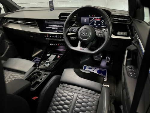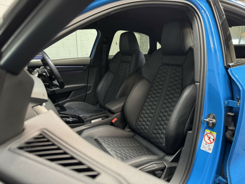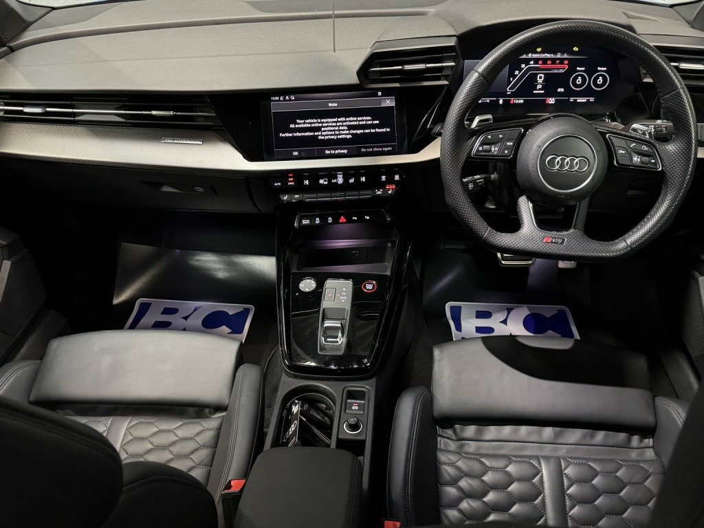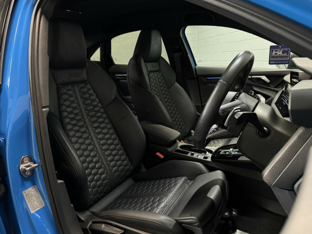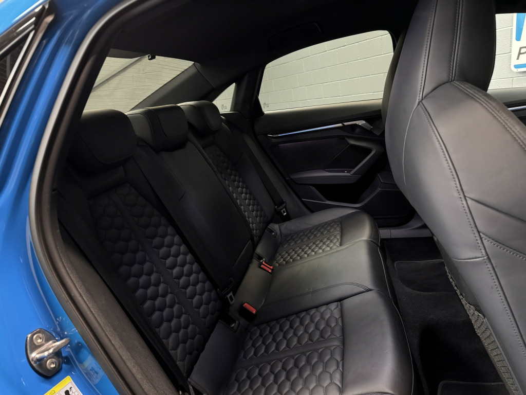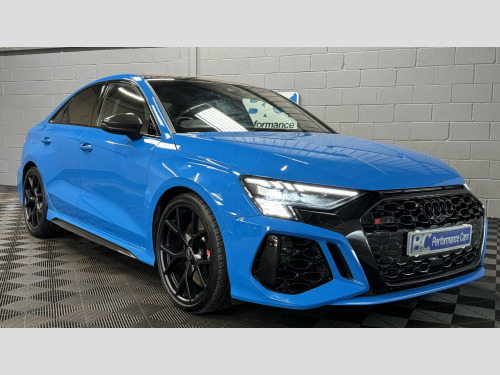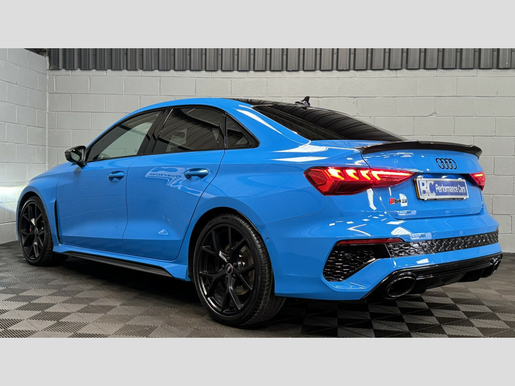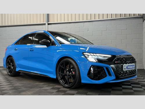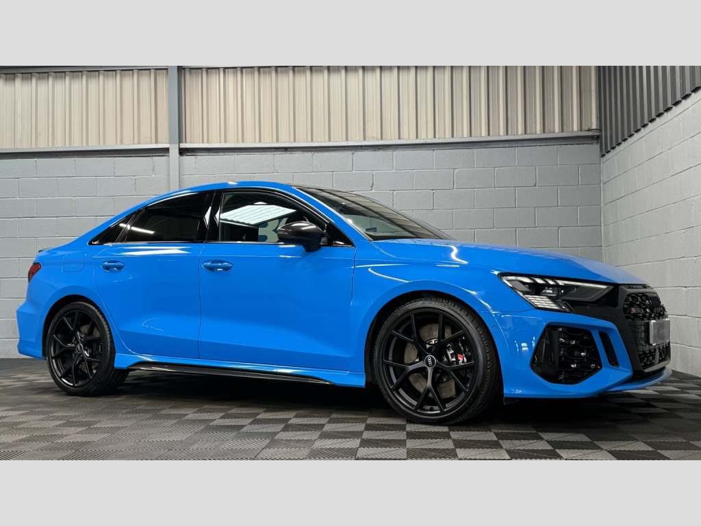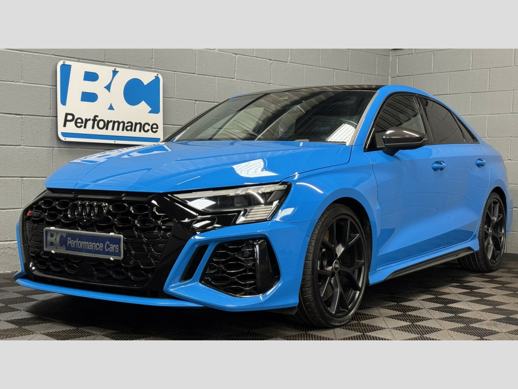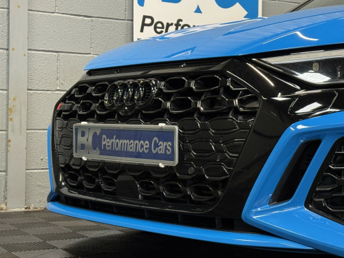 2022 22 Audi RS3 Carbon Black Edition Saloon, This Turbo Blue example has covered 26,223 with 1 keeper, supplied with a comprehensive servicing history empathetically maintained to a enthusiasts standard, Key Features Of The Carbon Edition, -Carbon Fibre Mirrors – Side Skirts *Rear Spoiler * Engine Cover, - Black/Black Fine Nappa Leather Sports Seats with Honeycomb Stitching & RS Embossing, -20 Satin Finished Audi Sport Alloy Wheels, -Matrix LED Headlights, -Gloss Black Exterior Styling Package, -Carbon Texture Interior, -Black RS Callipers, -Lane Assistance, -Flat Bottom Steering Wheel, -Car Play, -Privacy Glass, -Virtual Cockpit, -Cruise Control, , Security, Ghost Imobiliser, , Enhancements , The previous keeper wanted to further enhance the sound of the vehicle, with OPF/PPF they are known for being quitter than the previous models. This RS3 visited Forge Motorsport where they installed, -Milltek Cat Back Exhaust System, -Forge Motor Sport Carbon Fibre Intake, -Forge Turbo Elbow, All works are fully documented with invoices , , Hard wired front & rear dash cams, , History, This RS3 features a record of 7 engine services and 2 Gearbox services, all works have been completed by Audi Specialist and all services have been updated on the Audi history system, Last serviced 01/29/2026, , Supplied with 2 keys