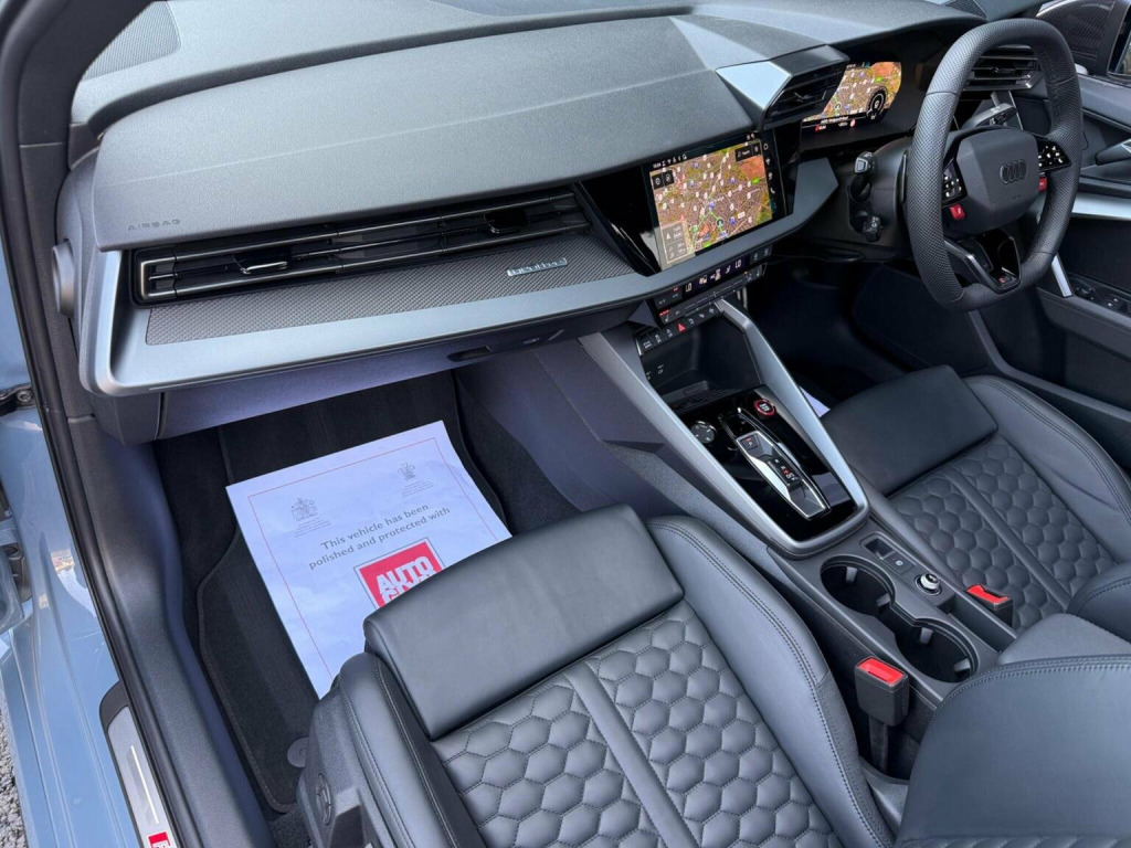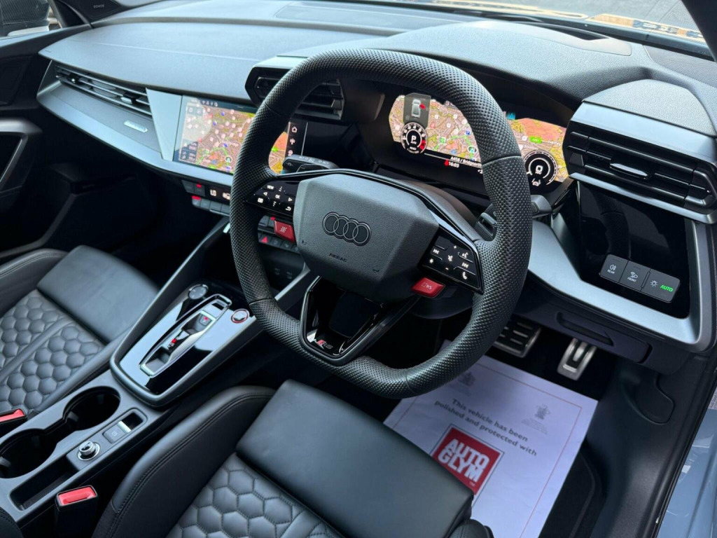 2025 25 AUDI RS3 CARBON BLACK 2.5 TFSI QUATTRO S TRONIC, HIGH SPEC INCLUDES:, * KEMORA GREY METALLIC, * NEW 2025 FACELIFT MODEL, * AUDI VIRTUAL COCKPIT , * 7 SPEED S-TRONIC AUTO GEARBOX WITH PADDLESHIFT , * LARGE RED CALLIPERS WITH RS LOGO, * TECHNOLOGY PACK PRO, * HEADS UP DISPLAY, * KEYLESS ENTRY, * KEYLESS GO, * PANORAMIC ELECTRIC GLASS SUNROOF WITH BLIND , * AUDI DRIVE SELECT, COMFORT, ECO, INDIVUDUAL AND DYNAMIC DRIVING MODES , * RS PERFORMANCE AND RS INDIVIDUAL DRIVING MODES, * START / STOP TECHNOLOGY , * 19 AUDI TEN CROSS-SPOKE ALLOY WHEELS FINISHED IN SILK MATT GREY , * EXCELLENT TYRES ALL ROUND, * SONOS UPGRADED SOUND SYSTEM, * AUDI PUDDLE LIGHTING, * MATRIX LED HEADLIGHTS AND CORNERING LIGHTS , * FULL BLACK LEATHER SUPERSPORT BUCKET SEATS RS EMBOSSED WITH CONTRAST BLACK STITCHING , * UPGRADE FLAT BOTTOM MULTI-FUNCTION LEATHER STEERING WHEEL WITH CONTRAST STITCHING, * PIANO GLOSS BLACK INTERIOR AND DASH TRIM , * THREE STAGE HEATED SEATS , * TWO STAGE MEMORY SEATS, * LED INTERIOR PACK , * AUDI MULTIMEDIA , * AUDI (HDD) MMI COLOUR SATELLITE NAVIGATION PLUS WITH HARD DRIVE , * GOOGLE EARTH / MAPS , * TMC (TRAFFIC MUSIC CHANNEL), * DAB DIGITAL RADIO , * JUKEBOX WITH 20GB OF STORAGE FOR MUSIC , * TWIN SD CARD SLOTS , * BLUETOOTH FACTORY PHONE CONNECTION, * BLUETOOTH MUSIC INTERFACE , * FRONT AND REAR PARKING SENSORS WITH ON SCREEN ASSIST, * REVERSE CAMERA, * LED DAYTIME RUNNING LIGHTS, * FOGLIGHTS, * USB-C CONNECTION , * ILLUMINATED RS3 LOGO ENTRY SILLS, * TWIN CUP HOLDERS , * AUTOMATIC LIGHTS, * AUTOMATIC WIPERS , * AUTO MAIN BEAM ASSIST, * ESC TRACTION CONTROL , * PRIVACY GLASS , * LEATHER CENTRE ARMREST , * CRUISE CONTROL , * AIR CONDITIONING, * DUAL DIGITAL CLIMATE CONTROL, * ELECTRIC HEATED FOLDING MIRRORS, * ELECTRIC HANDBRAKE, * AUDI MAIN DEALER WARRANTY UNTIL 03/28, STUNNING LOOKING RS3 WITH VERY HIGH SPEC, EXCELLENT PERFORMANCE WITH QUATTRO HANDLING , CAR IS IN EXCELLENT CONDITION INSIDE AND OUT, JUST BEEN VALETED,, HPI CLEAR WITH GOLD REPORT, 5 DAYS FREE DRIVEAWAY INSURANCE... PART EXCHANGE WELCOME, FINANCE AVAILABLE , 07425 507632