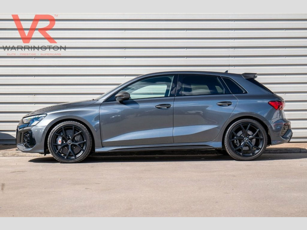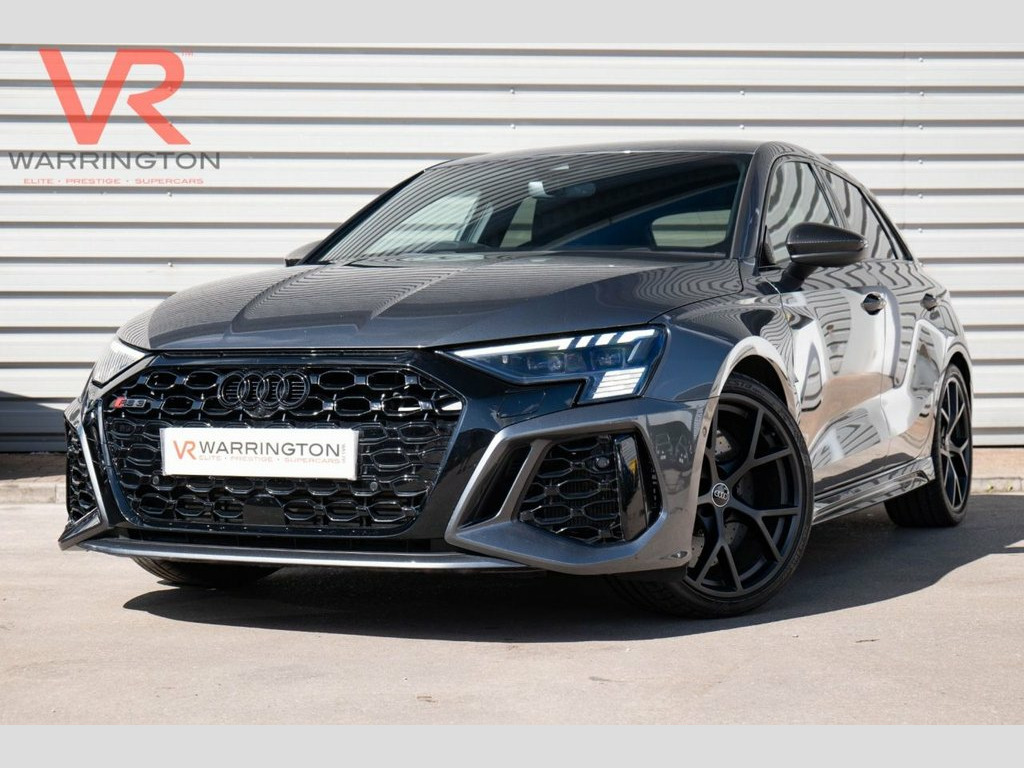 Here at VR EPS Warrington, we are pleased to offer this stunning 2023 - 23 plate - Audi RS3 2.5 TFSI Carbon Back Sportback 5dr Petrol S Tronic Quattro finished in Daytona Grey with Black Interior. First registered in May 2023, this vehicle comes with... RS Dynamic Pack which includes Ceramic Brakes, RS Sports Exhaust and Adaptive Chassis Tuning | Carbon Fibre Mirror Covers | Carbon Fibre Side Skirts | Carbon Fibre Rear Roof Spoiler | Carbon Fibre Dashboard Insert | Bang & Olufsen Sound System | Apple CarPlay | Android Auto | Reverse Parking Camera | Front and Rear Parking Sensors | Bluetooth Phone and Media Connectivity | Satellite Navigation | Flat-Bottomed RS Steering Wheel | Front Heated Seats | Audi Virtual Cockpit | Driver Assistance | Audi Drive Select | Also boasting service history which has been completed at the following dates and mileages... 31/01/2024 - 13740 miles at Audi, Boston. At VR EPS Warrington you can enjoy a buying experience like no other! You can either... Visit our Boutique showroom in Warrington Cheshire or order directly through our website and arrange delivery to your door. Or as most of our customers have done… Do both!! Our talented team of advisors are available to provide their knowledge and match you to your dream car. All our cars are supplied with two keys, an 82-point vehicle inspection, 6 months fully comprehensive RAC Warranty, and 12 months RAC roadside assistance. Comfort and Sound Package, RS Dynamic Pack, Driver Assistance Package, Daytona Grey, 19in Alloy Wheels - 5-Y-Spoke-Matt Black, Airbags - Driver and Front Passenger wit, Aluminium Interior Elements, Ambient Lighting Pack, Anti Theft Locking Wheel Bolts, Anti-Theft Alarm, Audi Beam, Audi Connect Emergency Call and Service, Audi Connect Infotainment Services (3 Mo, Audi Drive Select, Audi Matrix LED Headlights with LED Rear, Audi Pre-Sense Front, Audi Smartphone Interface, Audi Sound System, Audi Virtual Cockpit with RS Specific Di, Auto-Dimming Rear-View Mirror, Black Styling Pack, Bluetooth Interface, Brake Calipers Painted in Black with RS , Carbon Roof Spoiler, Cloth Headlining in Black, Co