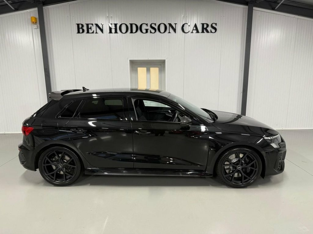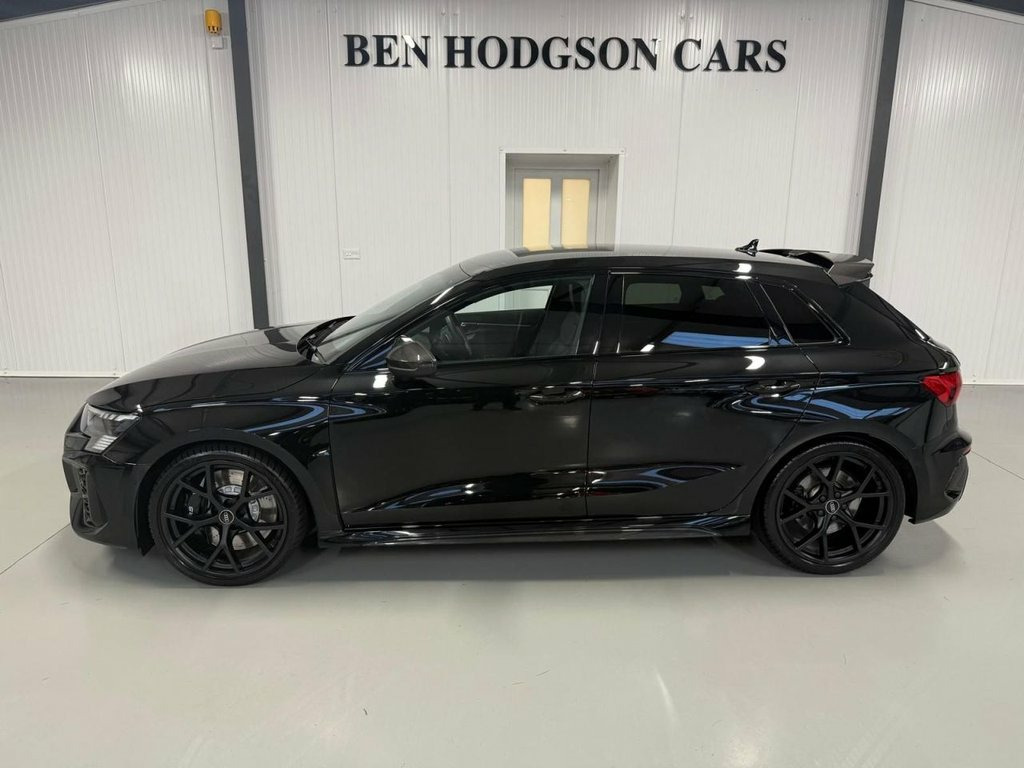 We Are Delighted To Offer For Sale This Stunning 2024 Audi RS3 Carbon Black Edition. Which Was Sourced From The 1 Mature Previous Owner Who Purchased It Brand New From Our Local Audi Dealer And Comes With The Remaining Audi Warranty Until 2027. Immaculate Condition Throughout The Car Has Been Very Well Looked After By The Previous Owner. This Car Comes With Full Audi Service History And Is Totally Standard, Making It The Ideal Audi RS3 To Have! This Car Has A Great Specification Including: Carbon Mirrors. Carbon Spoiler, 19' Alloy Wheels With Bridgestone Tyres, Matrix Headlights, Virtual Dash, Satellite Navigation, DAB Radio, Bluetooth Telephone And Streaming, Car Play, Heated Seats, Self Park, Cruise Control, Multi Function Leather Steering Wheel, Privacy Glass, Plus More! This Audi RS3 Carbon Black Edition Won't Be Around For Long! Please Call To Arrange Your Personal Appointment. Low Rate Finance And Part Exchange Options Available. 19in Alloy Wheels - 5-Y-Spoke-Matt Black, Airbags - Driver and Front Passenger wit, Aluminium Interior Elements, Ambient Lighting Pack, Anti Theft Locking Wheel Bolts, Anti-Theft Alarm, Audi Beam, Audi Connect Emergency Call and Service, Audi Connect Infotainment Services (3 Mo, Audi Drive Select, Audi Matrix LED Headlights with LED Rear, Audi Pre-Sense Front, Audi Smartphone Interface, Audi Sound System, Audi Virtual Cockpit with RS Specific Di, Auto-Dimming Rear-View Mirror, Black Styling Pack, Bluetooth Interface, Brake Calipers Painted in Black with RS , Carbon Roof Spoiler, Cloth Headlining in Black, Collision Avoidance Assistant, Cruise Control, DAB Digital Radio, Door Mirrors - Electr