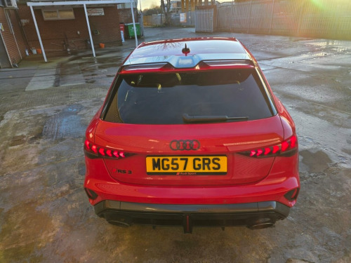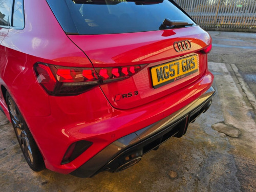 Boasting an exceptionally low mileage of just 1950 miles for its 2025 registration, this Audi RS3 TFSI Carbon Black represents a remarkable find. This four wheel drive model is powered by a potent 2.5 litre petrol engine, meeting Euro 6 emissions standards. The Carbon Black trim enhances its appeal, and it comes equipped with a suite of advanced features. These include a light and rain sensor for automatic headlight activation, the Audi Phone Box with wireless charging for seamless connectivity, and sophisticated Audi Matrix LED headlights with dynamic indicators and a headlight cleaning system. Inside, the Audi Virtual Cockpit with its RS specific design and 12.3 inch display, complete with a head up display, offers a modern and informative driving experience. Furthermore, parking is made effortless with the Parking Assist system, featuring front and rear sensors. This Audi RS3 TFSI Carbon Black truly stands out with its impressive performance, achieving 0-60mph in a swift 3.8 seconds, a figure that places it ahead of many comparable vehicles. The fact that it has had only one owner further underscores its excellent condition and careful use. The combination of its advanced technology, exhilarating acceleration, and pristine provenance makes this RS3 a compelling choice for discerning drivers. This RS3 still looks and smells like new. The car has had Guardex paint protection from new, Its has two keys and Audi warranty left to run out. We can give the car its first service 12v Socket and Storage Compartment in Fr, 19in Alloy Wheels - 10-Cross-Spoke Silk , 3-Zone Deluxe Automatic Air Conditioning, 4-Way Lumbar Support for Front Seats, Airbags - Driver and Front Passenger wit, Ambient Lighting Package Pro, Anti Theft Locking Wheel Bolts, Anti-Theft Alarm, Audi App Store and Smartphone Interface, Audi Beam, Audi Connect Navigation and Infotainment, Audi Drive Select, Audi Matrix LED Headlights with LED Rear, Audi Phone Box with Wireless Charging, Audi Pre-Sense Front, Audi Virtual Cockpit with RS Specific De, Auto Dimming and Frameless Rear View Mir, Automatic Start-Stop System with Recuper, Black Styling Pack Plus, Camera Based Traffic Sign Recognition, Carbon D