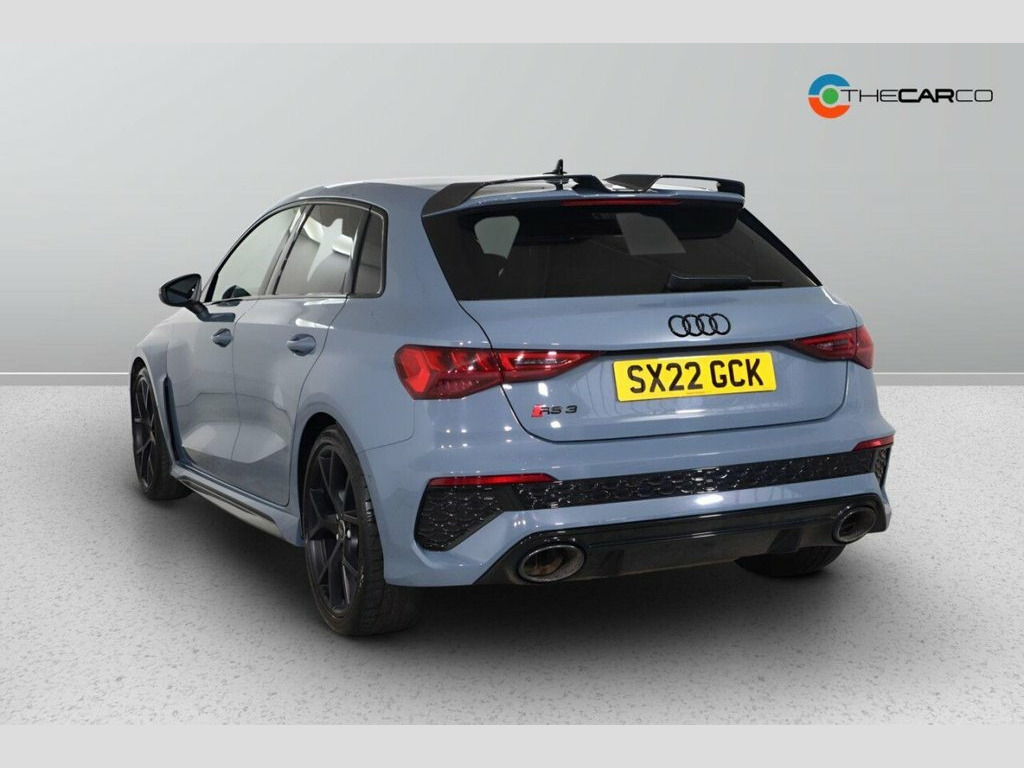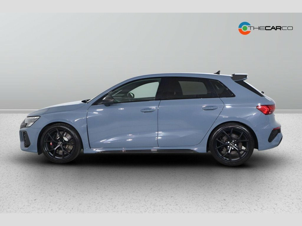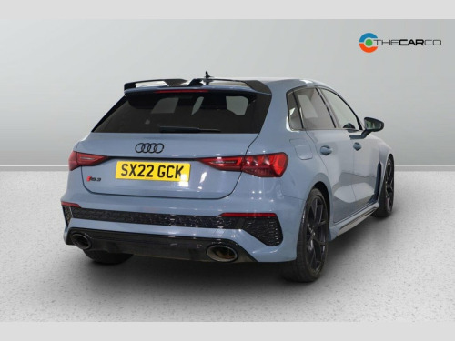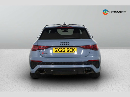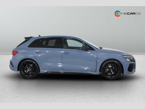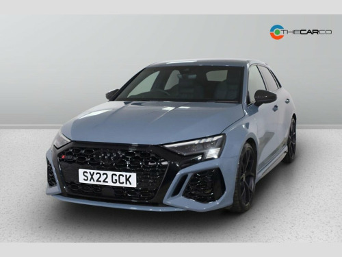 This 2022 Audi RS3 TFSI Carbon Black presents a superb ownership proposition, having been meticulously maintained by a single owner and boasting exceptionally low mileage of just 17,435 miles. This Euro 6 compliant model is powered by a potent 2.5 litre petrol engine, delivering exhilarating performance through its four wheel drive system. Inside, you'll find comfort and convenience with Dual Zone Electronic Climate Control and Heated Front Seats. The advanced Audi Matrix LED Headlights, complete with dynamic indicators and a headlight cleaning system, ensure excellent visibility, while the Light and Rain Sensor automatically adjusts lighting and wipers. For effortless manoeuvring, the Parking System Plus with front and rear sensors is included. The RS3 TFSI Carbon Black truly stands out, particularly with its impressive acceleration, achieving 0-62mph in a mere 3.8 seconds. This remarkable speed demonstrates its superior performance compared to many other vehicles in its class. The combination of its powerful engine, advanced four wheel drive, and sophisticated technology makes this Audi RS3 a compelling choice for those seeking a dynamic and well equipped driving experience. 19in Alloy Wheels - 5-Y-Spoke-Matt Black, Airbags - Driver and Front Passenger wit, Aluminium Interior Elements, Ambient Lighting Pack, Anti Theft Locking Wheel Bolts, Anti-Theft Alarm, Audi Beam, Audi Connect Emergency Call and Service, Audi Connect Infotainment Services (3 Mo, Audi Drive Select, Audi Matrix LED Headlights with LED Rear, Audi Pre-Sense Front, Audi Smartphone Interface, Audi Sound System, Audi Virtual Cockpit with RS Specific Di, Auto-Dimming Rear-View Mirror, Black Styling Pack, Bluetooth Interface, Brake Calipers Painted in Black with RS , Carbon Roof Spoiler, Cloth Headlining in Black, Collision Avoidance Assistant, Cruise Control, DAB Digital Radio, Door Mirrors - Electr