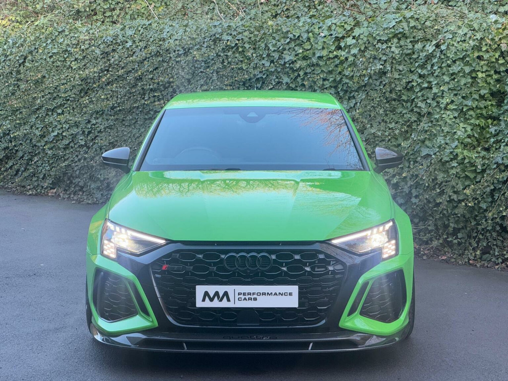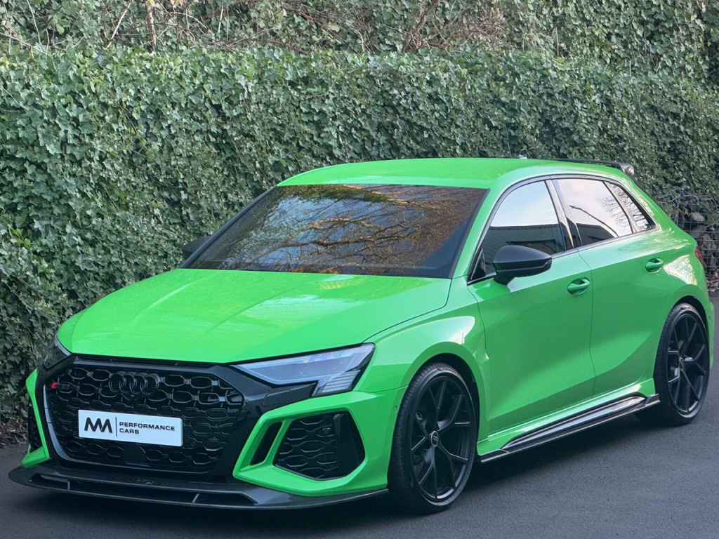 2024 Audi RS3 Carbon Black finished in Kyalami Green. Modifications on this car include - MRC Stage 2 ECU Remap 545 BHP | Large Bore Downpipe & Hi-Flow Sports Cat | Forge DAZA Inlet Hard Pipe & Turbo Inlet Pipe | High-Flow Intake | Forge Intercooler | NGK Racing Spark Plugs. Specifications on this car include - Carbon Splitter, Carbon Side Skirts, Carbon Engine Cover, Carbon Roof Spoiler & Carbon Inlays | RS Sports Exhaust | Comfort and sound pack | Bang & Olufsen Premium Sound system With 3D Sound | Digital Matrix LED Headlights | Parking Assist | Reverse camera | Privacy Glass | Immobiliser | Apple Car Play & much more listed in the standard spec section below. Supplied with two keys and all correct documentation, HPI clear, Full Service History. This vehicle has passed a thorough inspection which includes exterior and interior inspection, mechanical inspection & document and history inspection. All our cars comes with a HPI report to prove they havent been written off & are clear of finance. We are available on whats app - 07827 958980 or alternative feel free to give us a call or drop us a email using the message seller button above. We offer some of the lowest finance rates in the country on all of our vehicles. Please get in contact with us & one of our finance experts will help you build the ideal package for you based on your monthly affordability, we work with several different lenders meaning we do all the leg work to find you the best deal. We would love to take your vehicle in a part exchange no matter what make, model or condition or if you just want to sell your vehicle then please get in contact with us for more information. We Are Open By Appointment Only So Please Get In Contact With Us To Book A Viewing At Our Indoor Showroom Located In Sutton Coldfield. We offer nationwide delivery on all of our cars & extended warranty packages.