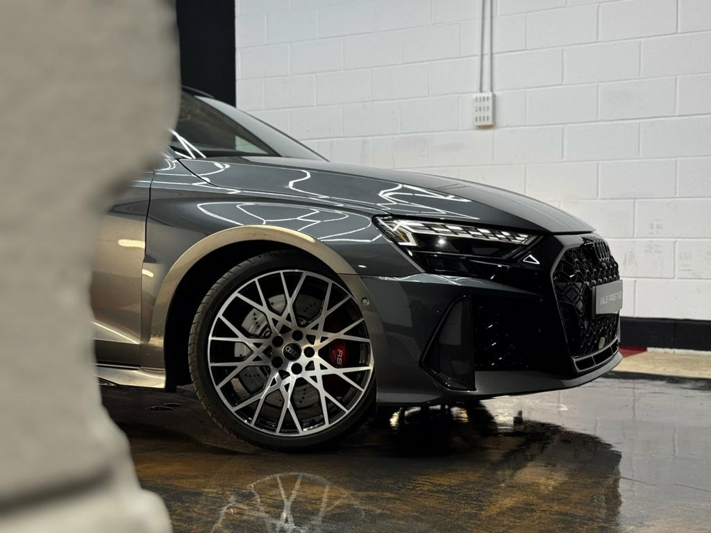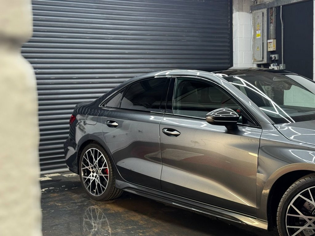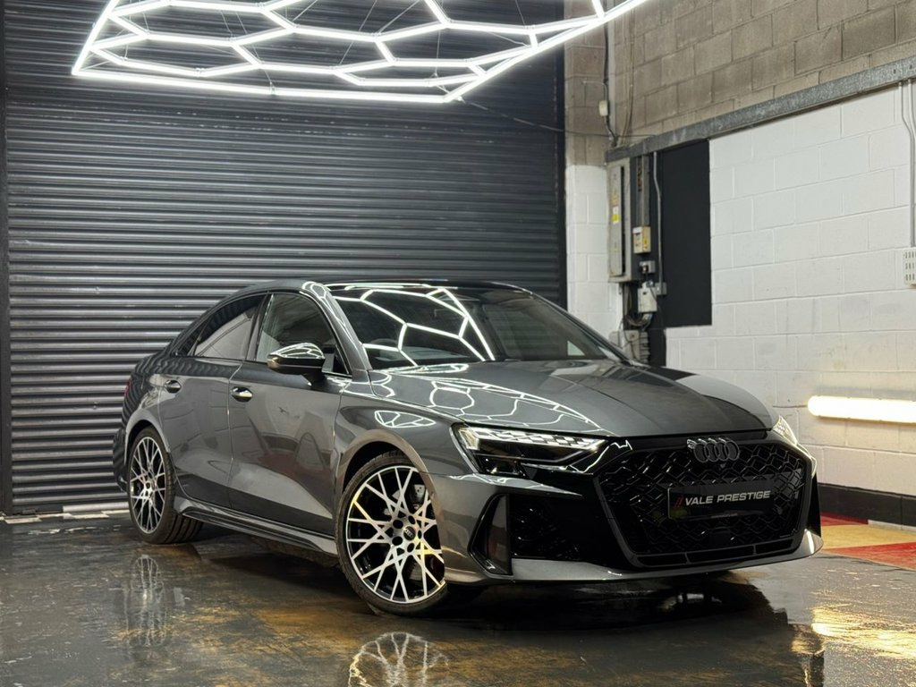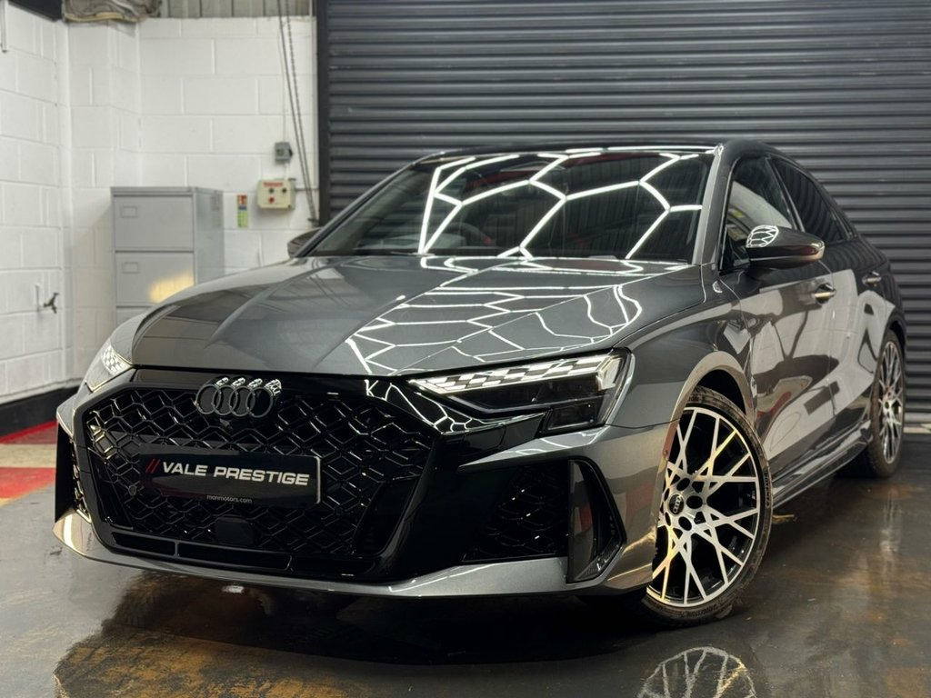 December 2025 Audi RS3 2.5 TFSI Carbon Vorsprung edition.. Audi's ultimate performance saloon is quattro all-wheel drive and a high-spec carbon-enhanced finish. With just 1900 miles and 1 owner, this near-new RS3 is presented in manhattan pearl grey and is fully loaded . The 8-speed S tronic automatic transmission combined with the 2.5 TFSI power plant delivers 394 bhp and 180 mph with ease when needed and is practical, refined as a family saloon. The interior compliments in the same amazing specifications to include ; Hex red stitched nappa extended leather, switchable full ambient lighting ,virtual cockpit ,apple car play, full pan roof ,the list just goes on and on. 12v Socket and Storage Compartment in Fr, 19in Alloy Wheels - 10-Cross-Spoke Black, 3-Zone Deluxe Automatic Air Conditioning, 4-Way Lumbar Support for Front Seats, Adaptive Suspension with Audi Drive Sele, Airbags - Driver and Front Passenger wit, Ambient Lighting Package Pro, Anti Theft Locking Wheel Bolts, Anti-Theft Alarm, Attention and Fatigue Detection, Audi App Store and Smartphone Interface, Audi Beam, Audi Connect Navigation and Infotainment, Audi Phone Box Light with Wireless Charg, Audi Pre-Sense Front, Audi Virtual Cockpit with RS Specific De, Auto Dimming and Frameless Rear View Mir, Automatic Start-Stop System with Recuper, Black Styling Pack Plus, Camera Based Traffic Sign Reco