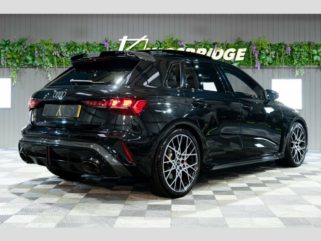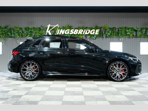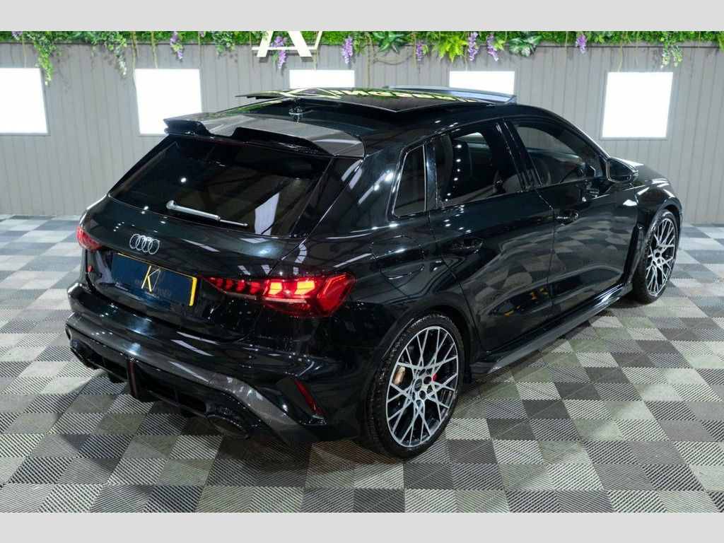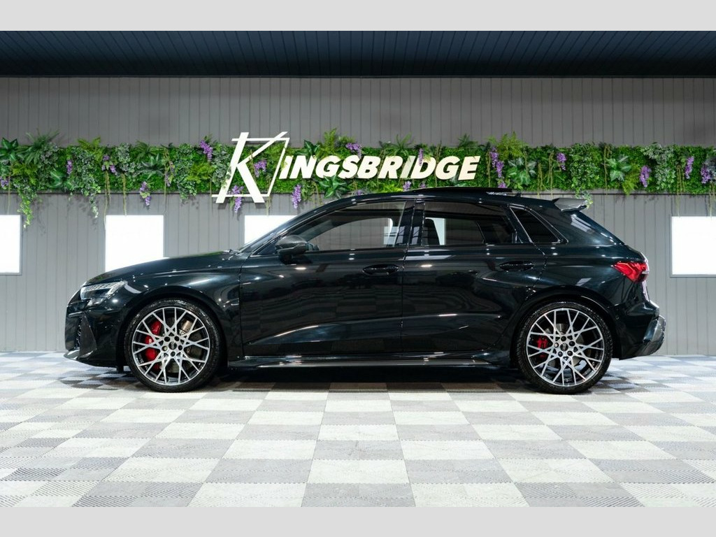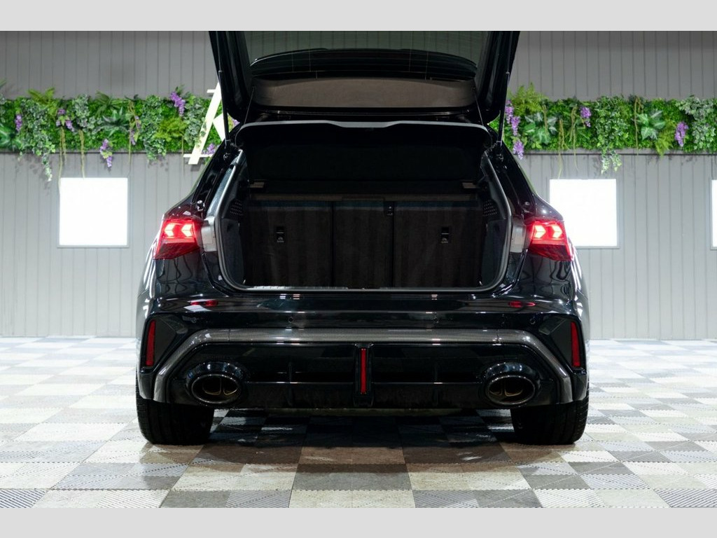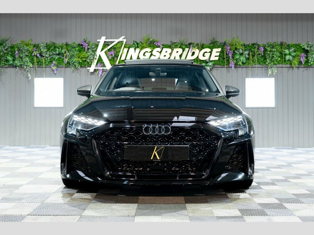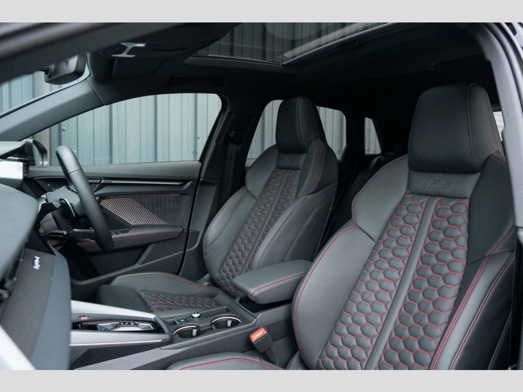 This 2025 Audi RS3 TFSI Carbon Vorsprung offers an exceptional ownership proposition with an incredibly low mileage of just 3500 miles, having been meticulously cared for by a single owner. This striking example is presented in the desirable Carbon Vorsprung trim, featuring a potent 2.5 litre petrol engine paired with Audi's renowned four wheel drive system, all meeting Euro 6 emissions standards. Inside, you'll find a wealth of premium features designed to enhance your driving experience, including the Audi Phone Box with wireless charging, automatic headlights activated by the light and rain sensor, and a luxurious panoramic sunroof. Comfort is assured with heated front seats, while the Technology Pack adds adaptive cruise control, a head up display, a rear camera for parking assistance, and a premium branded sound system. The performance of this RS3 is truly remarkable, highlighted by its rapid 0-60mph acceleration in just 3.8 seconds, demonstrating its dynamic capabilities. These impressive figures, combined with the comprehensive specification and excellent provenance, position this Audi RS3 TFSI Carbon Vorsprung as a superior choice for those seeking exhilarating performance and sophisticated luxury. Brake Calipers - Red, 19in Alloy Wheels - 10-Cross-Spoke Silk , Fine Nappa Leather - RS Embossed Sports , Mythos Black, 12v Socket and Storage Compartment in Fr, 19in Alloy Wheels - 10-Cross-Spoke Black, 3-Zone Deluxe Automatic Air Conditioning, 4-Way Lumbar Support for Front Seats, Adaptive Suspension with Audi Drive Sele, Airbags - Driver and Front Passenger wit, Ambient Lighting Package Pro, Anti Theft Locking Wheel Bolts, Anti-Theft Alarm, Audi App Store and Smartphone Interface, Audi Beam, Audi Connect Navigation and Infotainment, Audi Phone Box with Wireless Charging, Audi Pre-Sense Front, Audi Virtual Cockpit with RS Specific De, Auto Dimming and Frameless Rear View Mir, Automatic Sta