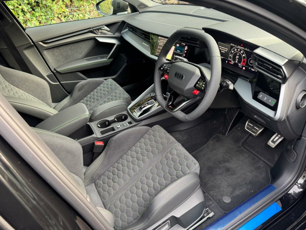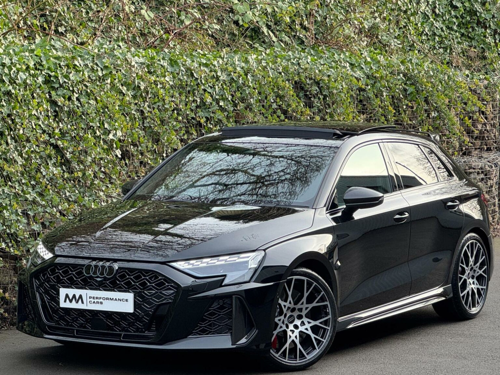 2025 Audi RS3 2.5 TFSI Carbon Vorsprung finished in Mythos Black. Specifications on this car include - Carbon Buckets Seats | Sliding Panoramic roof | RS Sports exhaust | Comfort and sound pack | Bonus Premium Sound system With 3D Sound | Lane Assist | Adaptive Cruise Control | Reverse camera | Audi Matrix LED Headlights with LED Rear Lights | Heads up display | Front & Rear parking sensors | Privacy Glass | Apple Car Play & much more listed in the standard spec section below, Supplied with two keys and all correct documentation, 1 Owner From New, HPI clear. This vehicle has passed a thorough inspection which includes exterior and interior inspection, mechanical inspection & document and history inspection. All our cars comes with a HPI report to prove they havent been written off & are clear of finance. We are available on whats app - 07827 958980 or alternative feel free to give us a call or drop us a email using the message seller button above. We offer some of the lowest finance rates in the country on all of our vehicles. Please get in contact with us & one of our finance experts will help you build the ideal package for you based on your monthly affordability, We would love to take your vehicle in a part exchange no matter what make, model or condition or if you just want to sell your vehicle then please get in contact with us for more information. We Are Open By Appointment Only So Please Get In Contact With Us To Book A Viewing. We offer nationwide delivery on all of our cars & extended warranty packages