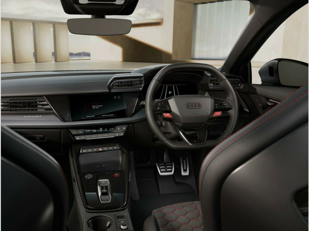 This 2026 Audi RS3 2.5 TFSI Carbon Vorsprung Sportback S Tronic quattro Euro 6 (s/s) 5dr Hatchback is currently available for £69,975 in Leeds West Yorkshire with Petrol engine and Automatic gearbox. For more information or to arrange a viewing, click here to send us an email using form below.