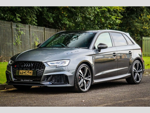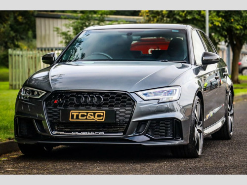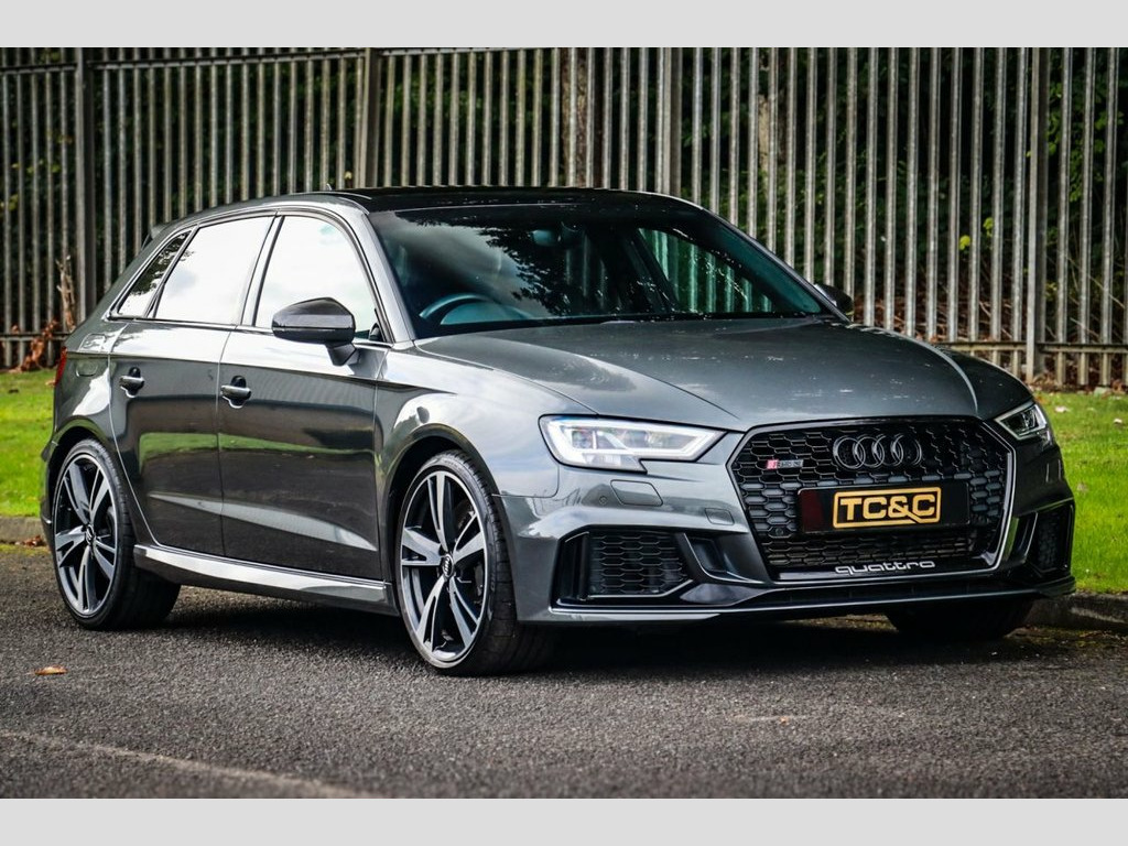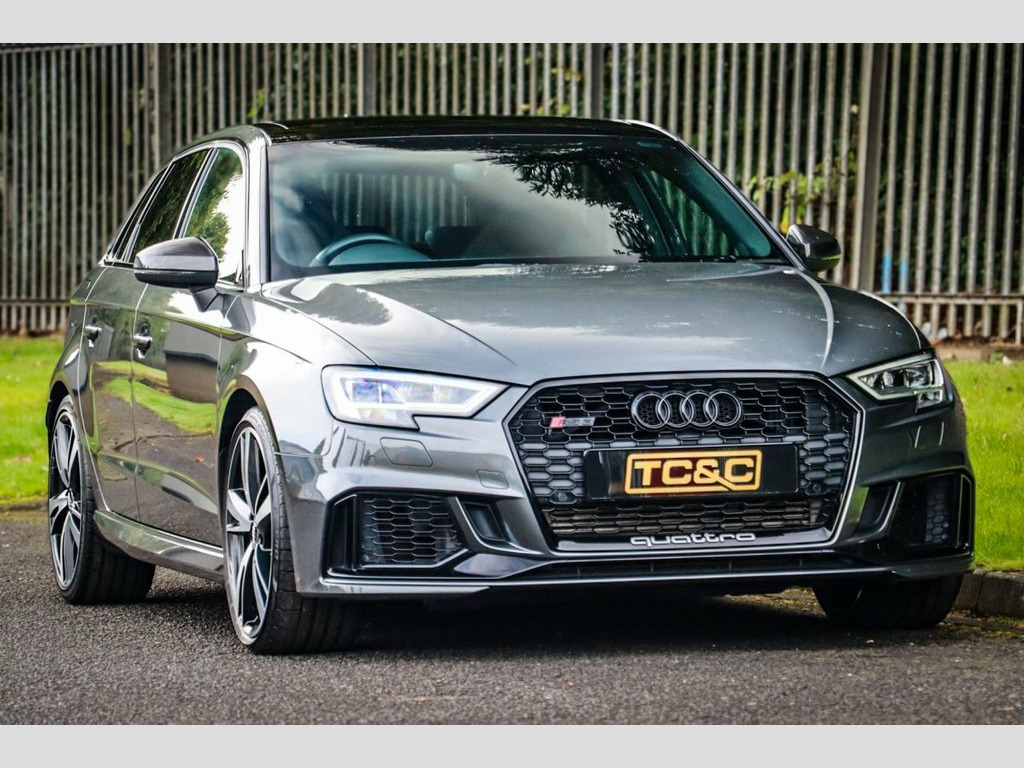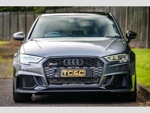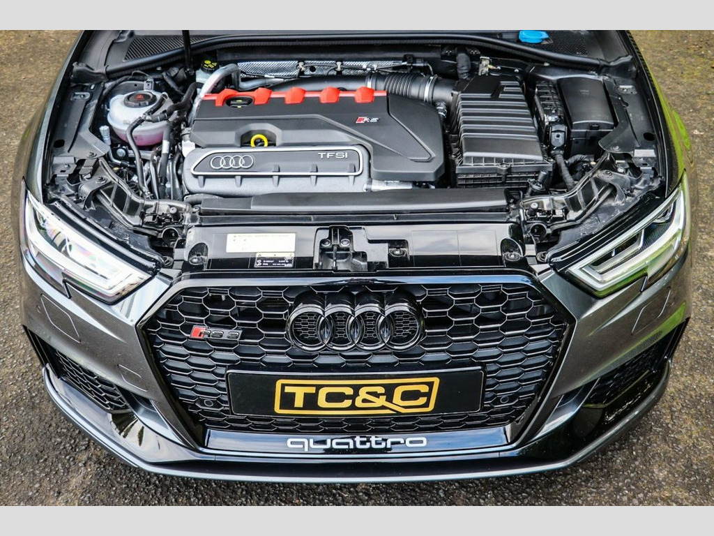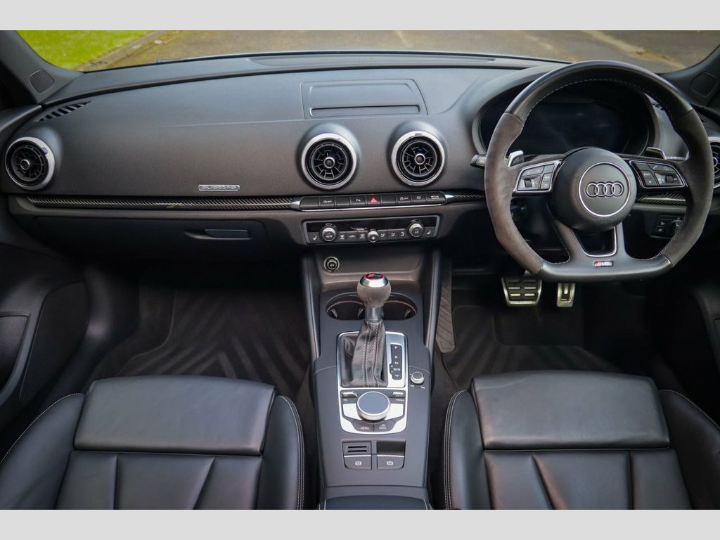 Audi RS3 Sport Edition – Low Mileage, Huge Specification, Full Service History This stunning Audi RS3 Sport Edition is presented in the sought-after Daytona Grey metallic, paired with gloss black styling. A rare low-mileage Audi RS3 with quattro all-wheel drive, it delivers the perfect blend of high-performance hot hatch excitement and everyday usability. Maintained to the highest standard, this RS3 comes with a comprehensive full-service history (services at 13k, 17k and 19k miles), an upgraded immobiliser for extra security, and is supplied with two remote keys, a valid MOT, and a minimum six-month warranty for total peace of mind. Key Features & Options Sliding panoramic glass sunroof – rare option Audi Drive Select switchable driving modes Super Sport Nappa leather seats with contrast stitching Carbon fibre interior trim & Alcantara flat-bottom steering wheel 19-inch diamond-cut alloy wheels with gloss black detailing Satellite navigation, reversing camera & front/rear parking sensors Automatic LED headlights & factory privacy glass Heated front seats, dual-zone climate control & cruise control DAB digital radio, Bluetooth, AUX input Power-folding heated mirrors, electronic handbrake with auto-hold Exterior Highlights Finished in Daytona Grey metallic, this RS3 looks aggressive and purposeful. Gloss black styling, black exhaust tips, distinctive RS badging and the diamond-cut 19-inch alloys give it true road presence. Interi 19in Alloy Wheels - 5-Arm Blade Design A, 6-Airbag System with Knee Airbag for Dri, Aluminium Interior Elements, Anti Theft Locking Wheel Bolts, Anti-Theft Alarm, Audi Beam, Audi Connect Infotainment Services (3 Mo, Audi Drive Select, Audi Parking System Plus, Audi Phone Box with Wireless Charging, Audi Smartphone Interface, Audi Sound System, Audi Sport Pack, Audi Virtual Cockpit with RS Specific Di, Auto-Dimming Rear-View Mirror, Black Styling Package, Bluetooth Interface, Brake Calipers Painted in Black with RS , Cruise Control, DAB Digital Radio, Daytona Grey, Door Mirrors - Black Housing, Door Mirrors - Electrically Adjustable a, Door Mirrors - Heated-Electrically Adjus, Door Sill Trims