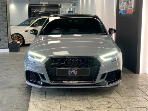 2019 (69) AUDI RS3 SPORTS EDITION Finished in Nardo Grey with Fine Nappa Leather interior and 19" Alloys. Factory spec includes; comfort and sound package, Bang & Olufsen sound system, Wingback seats with red stitching, heated front seats, keyless enttry and keyless start. Pandora alarm system and META Track tracking system, panoramic sunroof, audi virtual cockpit with sat nav, audi drive select, cruise control, DAB radio and Bluetooth connectivity. Full Service history. 4 owners. PCP and HP finance available from 9.9% APR (subject to status) 19in Alloy Wheels - 5-Arm Blade Design A, 6-Airbag System with Knee Airbag for Dri, Aluminium Interior Elements, Anti Theft Locking Wheel Bolts, Anti-Theft Alarm, Audi Beam, Audi Connect Infotainment Services (3 Mo, Audi Drive Select, Audi Parking System Plus, Audi Phone Box with Wireless Charging, Audi Smartphone Interface, Audi Sound System, Audi Virtual Cockpit with RS Specific Di, Auto-Dimming Rear-View Mirror, Black Styling Package, Bluetooth Interface, Brake Calipers Painted in Black with RS , Cruise Control, DAB Digital Radio, Door Mirrors - Black Housing, Door Mirrors - Electrically Adjustable a, Door Sill Trims - Inlays in Aluminium an, Dual-Zone Electronic Climate Control, ESC - El