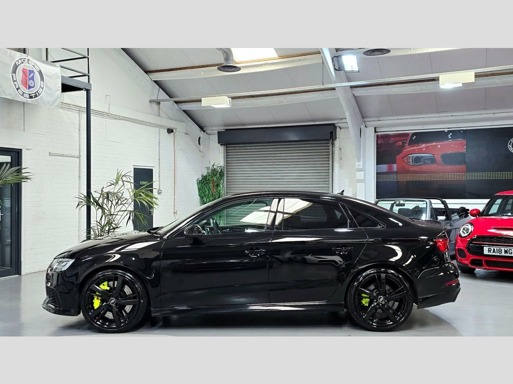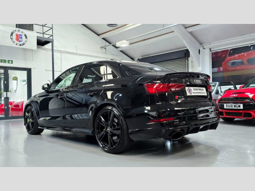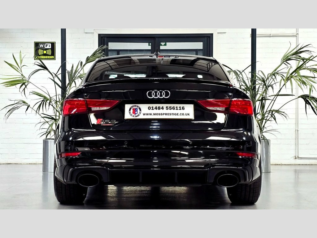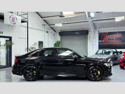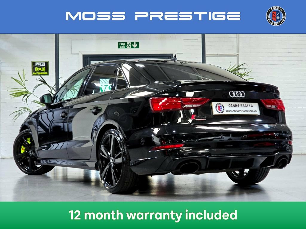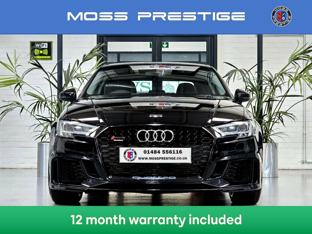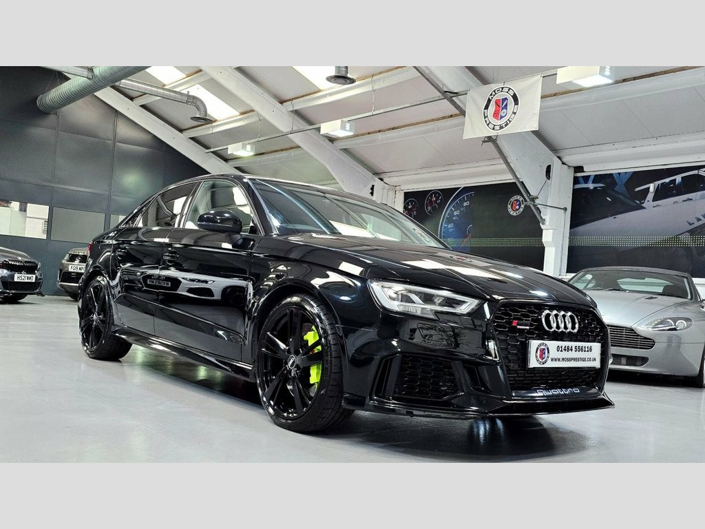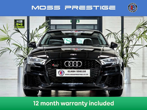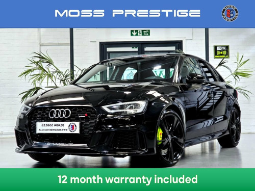 Moss Prestige are proud to offer this Beautiful AUDI RS3 2.5 TFSI GPF Saloon S Tronic quattro Euro 6 with only 38k miles and full service history to go with it. Moss Prestige Care Package which also includes 12 months Warranty and 12 Months MOT you'll have piece of mind for any trip. This rare Beauty comes with extras worth over 5k from factory. Including, Reversing camera Front & Rear parking sensors, media player, Bluetooth, Leather & Alcantara flat bottomed steering wheel,, Cruise Control, Climate Control and Air conditioning. Freshly powder coated gloss black 19'' Alloy Wheels sat in front of Porsche Acid Green RS brake calipers.. Not to be missed and must be seen to be appreciated. All Our Cars Are Fully HPI Checked Including Write Off, Stolen & Recovered, Mileage Data Check & Finance So You Can Rest Assured Knowing Our Vehicles Don't Have An Hidden Past., All Cars Come With A Full HPI Printout., Part Exchange Welcome, Credit & Debit Cards accepted, Finance Arranged, Please Call Or Email To Arrange A Test Drive, Indoor showroom located In Huddersfield West Yorkshire , 12 months warranty, Full service history, Excellent bodywork, Interior - Excellent Condition, Tyre condition Good, Black, For walk around video or any further info WhatsApp 07354 848 182, £30,995 Mythos Black, Comfort and Sound Package, 19in Alloy Wheels - 5-Arm Blade Design i, 6-Airbag System with Knee Airbag for Dri, Aluminium Interior Elements, Anti Theft Locking Wheel Bolts, Anti-Theft Alarm, Audi Beam, Audi Connect Infotainment Services - 36 , Audi Drive Select, Audi Parking System Plus, Audi Phone Box with Wireless Charging, Audi Smartphone Interface, Audi Sound System, Audi Virtual Cockpit with RS Specific Di, Auto-Dimming Rear-View Mirror, Bluetooth Interface, Brake Calipers Painted in Black with RS , Cruise Control, DAB Digital Radio, Door Mirrors - Electrically Adjustable a, Door Sill Trims - Inlays in Aluminium an, Dual-Zone Electronic Climate Control, ESC - Electronic Sta