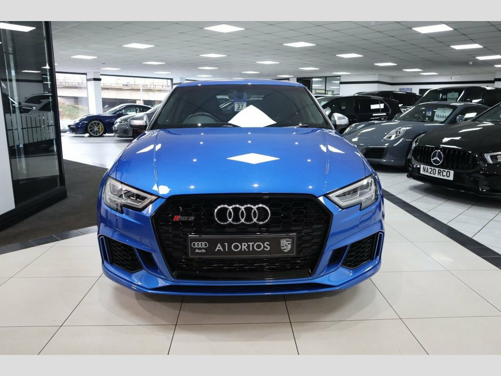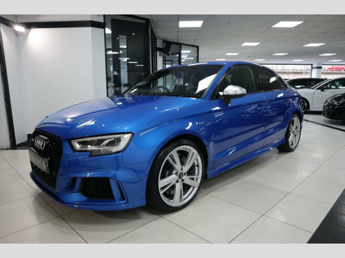 STUNNING 8Y RS3 JUST ARRIVED INTO STOCK! GENUINE LOW MILES COVERING 23K MILES FROM NEW BACKED WITH FULL SERVICE HISTORY! IMPRESSIVE CONDITION, NOT TO BE MISSED! FIVE CYLINDERS AND 400PS ON TAP! PREMIUM PERFORMANCE SALOON! FINISHED IN ARA BLUE CRYSTAL! SPEC INCLUDES, COMFORT/SOUND PACKAGE, BANG AND OLUFSEN PREMIUM SOUND SYSTEM, REAR VIEW CAMERA, UPGRADED 19 INCH BLADE DESIGN ALLOY WHEELS, BLACK EXTERIOR STYLING PACKAGE, BLACK FINE NAPPA LEATHER EMBOSSED SEATS, HEATED FRONT SEATS, AUDI VIRTUAL COCKPIT DISPLAY, AUDI BRAKES SYSTEM, AUDI DRIVE SELECT, SPORT CONTOUR LEATHER/ALCANTARA MULTI FUNCTION FLAT BOTTOM STEERING WHEEL, HEATED FRONT SEATS, PARKING AID PLUS, LED HEADLIGHTS, CRUISE CONTROL, RS SPORTS SUSPENSION, AUDI SMARTPHONE INTERFACE (ANDROID AUTO AND APPLE CARPLAY), PRIVACY GLASS, HOLD ASSIST! RARE, VERY SOUGHT AFTER INCREDIBLE EXAMPLE, EARLY VIEWING IS ESSENTIAL TO AVOID DISAPPOINTMENT, COMPREHENSIVE WARRANTY OPTIONS AVAILABLE , AA BREAKDOWN AVAILABLE STUNNING SHOWROOM CONDITION, MUST BE SEEN NOT TO BE MISSED, FIRST TO SEE WILL BUY, BE VERY QUICK THIS GEM WILL SOON GO!, VIEW MORE PICS ON OUR WEBSITE, PLEASE CALL FOR FULL SPEC, SIMPLY STUNNING! 19in Alloy Wheels - 5-Arm Blade Design i, Ara Blue, Comfort and Sound Package