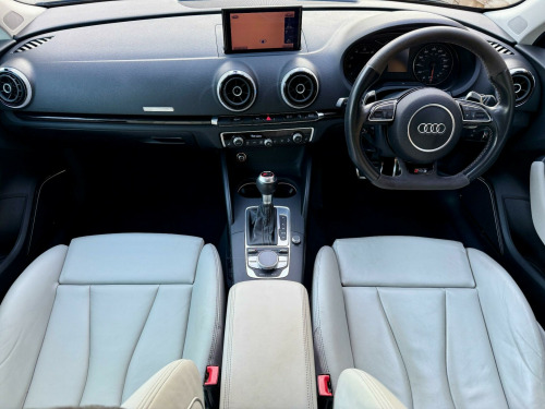 Audi RS3 Sportback 2.5 TFSI Quattro S Tronic finished in Mythos Black Metallic with Lunar Silver Super Sport Seats. Having just 1 previous owner, this incredible looking Audi RS3 Sportback has been extremely well cared for, coming with a full service history. In addition, we will be servicing and MOT’ing prior to its next owner taking delivery. This RS3 is in outstanding condition, showing very few age related marks, and all 4 tyres have a substantial amount of tread. The specification on this Audi RS3 is vast and some highlights include:- Technology package- HDD satellite navigation, Bang & Olufsen sound system- Auto dimming rear-view mirror- Cruise control- 19” 5 arm titanium rotor alloy wheels- Sports seats in lunar silver - Privacy glass- Rear parking camera- Heated front seats- Light & rain sensors- Two keys In arguably the best colour, it boasts super sports seats in lunar silver with diamond stitching, making them a really striking feature. If you’re looking for a performance hatchback then they don’t get much better than this one, and at this price it is fantastic value for money. In addition, it is Euro 6, meaning it is fully ULEZ compliant. All Auto Consortium cars are handpicked from local main dealers and we NEVER buy from auctions. This way we can be sure we’re selling our customers a good quality used car. This Audi RS3 Sportback also comes with three months warranty via Handler Protect. Be sure to ask about our extended warranty options, and feel free to call us with any questions or to arrange a viewing/test drive. Your part exchange is always welcome.