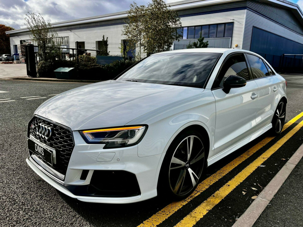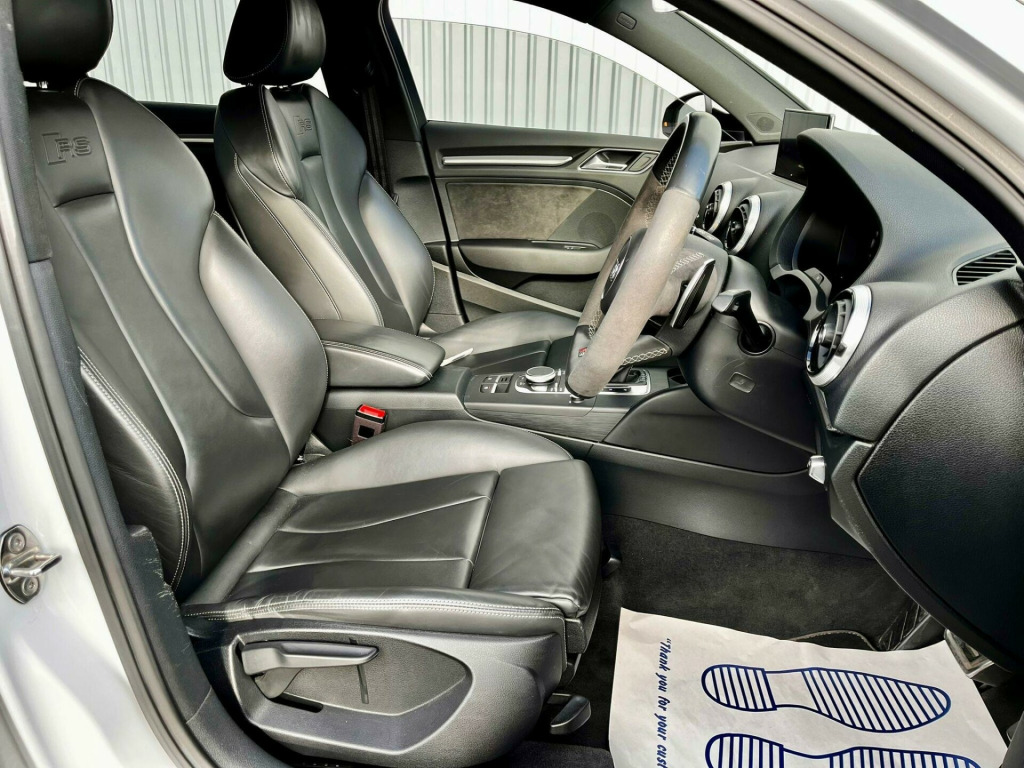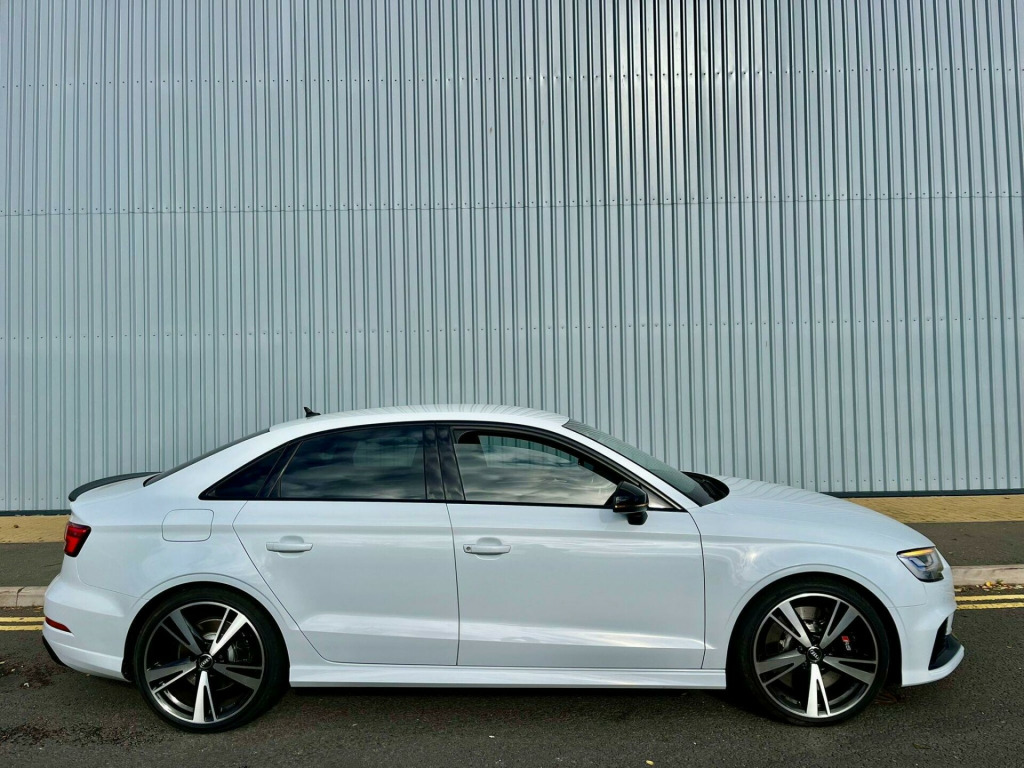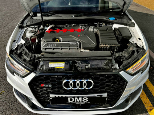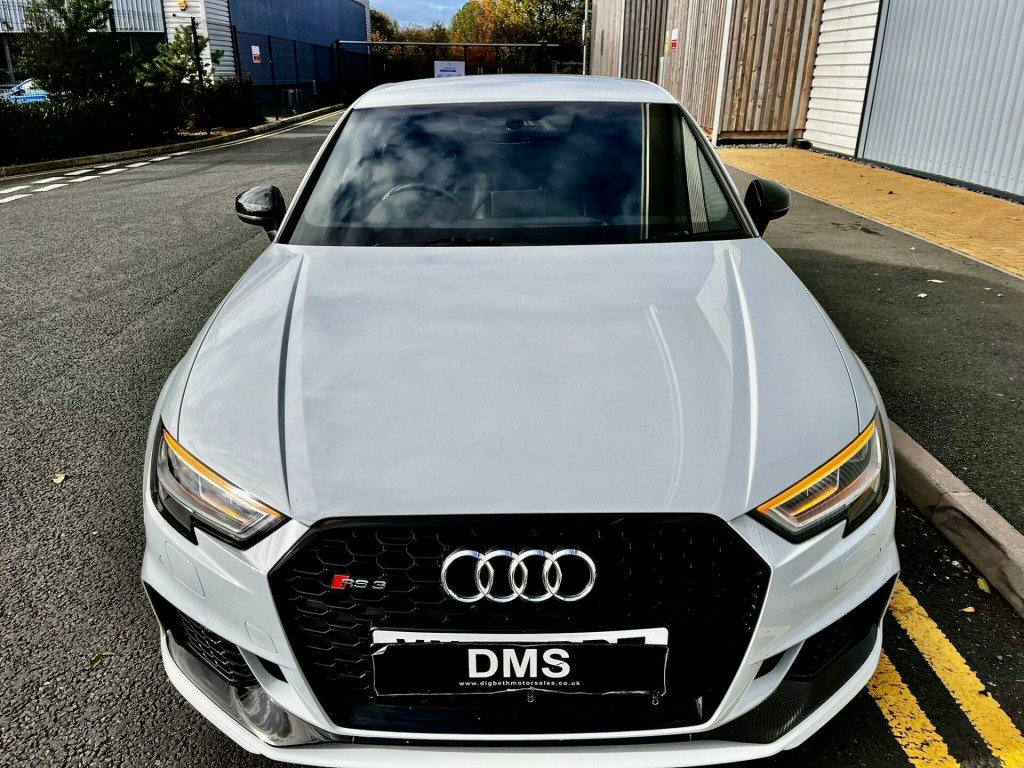 ONE OF THE CLEANEST AND TIDIEST EXAMPLE OF RS3 IN THE MARKET, COMFORT PACK, REVERSING CAMERA, 19'' ALLOYS, B&O SOUND SYTTEM, VIRTUAL COCKPIT DASH, HEATED LEATHER SPORT SEATS, SOUND PACK, FRONT & REAR PARKING SENSORS, AUTO HOLD, DAB RADIO, BLUETOOTH, SAT NAV, FLAT BOTTOMED STEERING WHEEL, FULL ELECTRIC WINDOWS & HEATED MIRRORS, DRL LED PACK, XENONS, COMFORT/DYNAMIC PACK, AUTO WIPERS, CRUISE CONTROL, WIRELESS CHARGER, AUX, USB PORT, APPLE CAR PLAY, ANDROID AUTO, PADDLE SHIFT, WIFI, ISOFIX SEATS, PRIVACY GLASS, MMI SCREEN, 2 KEYS & MUCH MORE, DRIVES FAULTLESS, LONG MOT, HPI CLEAR, CALL US TO ARRANGE DELIVERY, ANY INSPECTIONS ARE WELCOME, PART EX WELCOME. 19in Alloy Wheels - 5-Arm Blade Design in Galvanised Silver, 6-Airbag System with Knee Airbag for Driver, Aluminium Interior Elements, Anti Theft Locking Wheel Bolts, Anti-Theft Alarm, Audi Beam, Audi Connect Infotainment Services - 36 Month Trial, Audi Drive Select, Audi Parking System Plus, Audi Phone Box with Wireless Charging, Audi Smartphone Interface, Audi Sound System, Audi Virtual Cockpit with RS Specific Display, Auto-Dimming Rear-View Mirror, Bluetooth Interface, Brake Calipers Painted in Black with RS Logo at the Front, Cruise Control, DAB Digital Radio, Door Mirrors - Electrically Adjustable and Heated with Integrated LED Side Indicators, Door Sill Trims - Inlays in Aluminium and Illuminated with RS3 Logo, Dual-Zone Electronic Climate Control, ESC - Electronic Stabilisation Control inc ABS - ASR and EDL, Electric Windows - Front, Email and Text Messages can be Displayed on your Vehicles MMI, First Aid Kit and Warning Triangle, Front Centre Armrest, Headlights Washers, Hill Hold Assist, ISOFIX Child Seat Mounting and Top Tether, Inlays - Optic 3D Design - Titanium Grey, Interior Light Package, LED Headlights with LED Rear Lights and Dynamic Rear Indicators, Light and Rain Sensor, MMI Navigation Plus with MMI Touch, Manual Seat Adjustment, Matt Aluminium Look Door Mirrors, Matt Aluminium Look Window Trims, Online Media Streaming, Pedals in Stainless Steel, Privacy Glass, Progressive Steering, RS Body Styling, RS Brake System, RS Dual-branch Exhaust System with Two Chrome-plated Oval Tailpipe Trims, RS Flat Bottomed 3 Spoke Leather Multi-function Sport Steering Wheel with Alcantara Inserts and Gear Shift Paddles in Aluminium Look - Contrast Stitching and RS Badging, RS Gear Lever Knob in Alcantara with Leather Gaiter with Contrast Stitching, RS Sports Suspension, RS3 Badge on Grille and on Luggage Compartment Lid, Remote Central Locking, Seat Belt Monitoring, Seats - Heated Front, Split Folding Rear Seat Bench - 60-40 or Fully, Storage Package, Tool Kit, Tyre Pressure Warning Light, Tyre Repair Kit, 19in Alloy Wheels - 5-Arm Blade Design in Matt Titanium Look - Diamond Turned, Comfort and Sound Package. Full dealership history