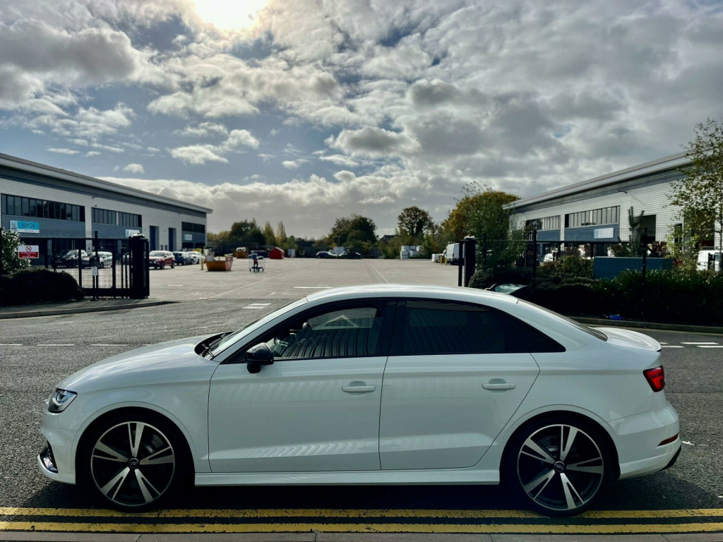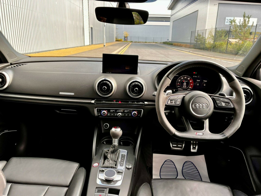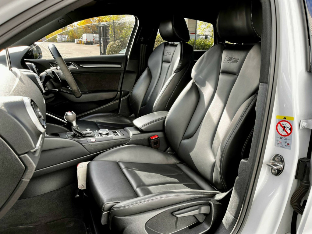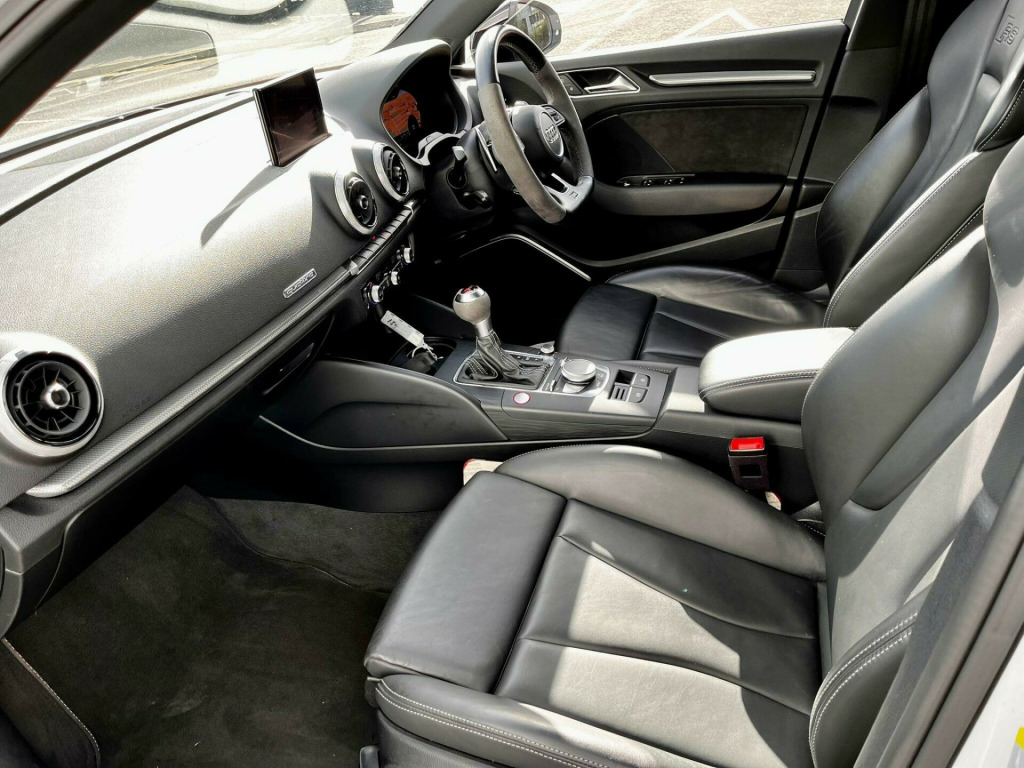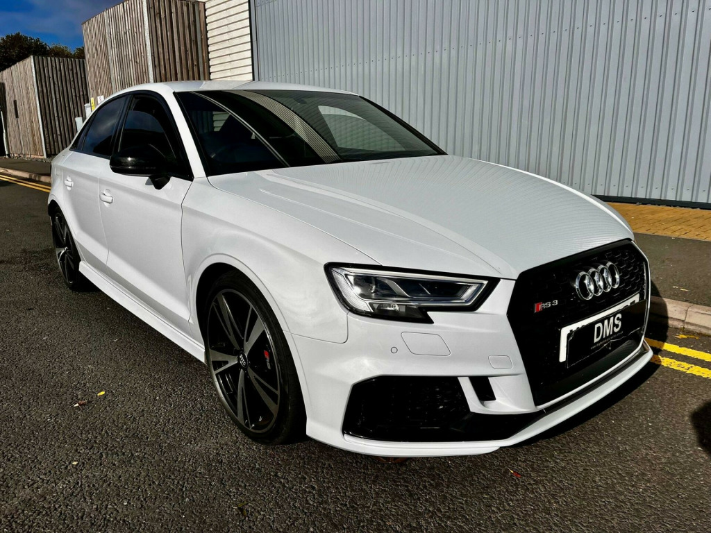 ONE OF THE CLEANEST AND TIDIEST EXAMPLE OF RS3 IN THE MARKET, COMFORT PACK, REVERSING CAMERA, 19'' ALLOYS, B&O SOUND SYTTEM, VIRTUAL COCKPIT DASH, HEATED LEATHER SPORT SEATS, SOUND PACK, FRONT & REAR PARKING SENSORS, AUTO HOLD, DAB RADIO, BLUETOOTH, SAT NAV, FLAT BOTTOMED STEERING WHEEL, FULL ELECTRIC WINDOWS & HEATED MIRRORS, DRL LED PACK, XENONS, COMFORT/DYNAMIC PACK, AUTO WIPERS, CRUISE CONTROL, WIRELESS CHARGER, AUX, USB PORT, APPLE CAR PLAY, ANDROID AUTO, PADDLE SHIFT, WIFI, ISOFIX SEATS, PRIVACY GLASS, MMI SCREEN, 2 KEYS & MUCH MORE, DRIVES FAULTLESS, LONG MOT, HPI CLEAR, CALL US TO ARRANGE DELIVERY, ANY INSPECTIONS ARE WELCOME, PART EX WELCOME. 19in Alloy Wheels - 5-Arm Blade Design in Galvanised Silver, 6-Airbag System with Knee Airbag for Driver, Aluminium Interior Elements, Anti Theft Locking Wheel Bolts, Anti-Theft Alarm, Audi Beam, Audi Connect Infotainment Services - 36 Month Trial, Audi Drive Select, Audi Parking System Plus, Audi Phone Box with Wireless Charging, Audi Smartphone Interface, Audi Sound System, Audi Virtual Cockpit with RS Specific Display, Auto-Dimming Rear-View Mirror, Bluetooth Interface, Brake Calipers Painted in Black with RS Logo at the Front, Cruise Control, DAB Digital Radio, Door Mirrors - Electrically Adjustable and Heated with Integrated LED Side Indicators, Door Sill Trims - Inlays in Aluminium and Illuminated with RS3 Logo, Dual-Zone Electronic Climate Control, ESC - Electronic Stabilisation Control inc ABS - ASR and EDL, Electric Windows - Front, Email and Text Messages can be Displayed on your Vehicles MMI, First Aid Kit and Warning Triangle, Front Centre Armrest, Headlights Washers, Hill Hold Assist, ISOFIX Child Seat Mounting and Top Tether, Inlays - Optic 3D Design - Titanium Grey, Interior Light Package, LED Headlights with LED Rear Lights and Dynamic Rear Indicators, Light and Rain Sensor, MMI Navigation Plus with MMI Touch, Manual Seat Adjustment, Matt Aluminium Look Door Mirrors, Matt Aluminium Look Window Trims, Online Media Streaming, Pedals in Stainless Steel, Privacy Glass, Progressive Steering, RS Body Styling, RS Brake System, RS Dual-branch Exhaust System with Two Chrome-plated Oval Tailpipe Trims, RS Flat Bottomed 3 Spoke Leather Multi-function Sport Steering Wheel with Alcantara Inserts and Gear Shift Paddles in Aluminium Look - Contrast Stitching and RS Badging, RS Gear Lever Knob in Alcantara with Leather Gaiter with Contrast Stitching, RS Sports Suspension, RS3 Badge on Grille and on Luggage Compartment Lid, Remote Central Locking, Seat Belt Monitoring, Seats - Heated Front, Split Folding Rear Seat Bench - 60-40 or Fully, Storage Package, Tool Kit, Tyre Pressure Warning Light, Tyre Repair Kit, 19in Alloy Wheels - 5-Arm Blade Design in Matt Titanium Look - Diamond Turned, Comfort and Sound Package. Full dealership history