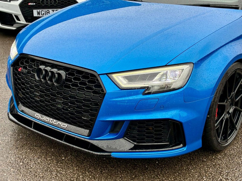 XPEL Self-healing PPF - Extended full front end: Bumper, bonnet, gloss black lower spoiler & Grill surround, Front wings and headlights. A-Pillars and wing mirrors, Loading part of rear bumper. - C QUARTZ Ceramic coated - MRC Stage 2 ECU & TCU with map switching, Stock map, 97 Ron 455ps & 680nm 99 Ron 510ps & 720nm 99 Ron + Octane booster 548ps & 715nm - Forge Intercooler - RPC downpipe - Forge Intake Hard Pipe & Turbo inlet pipe - AP racing Radical 6 Piston front brake setup w/ 380mm discs - APR Coilpacks - NGK Race Plugs - BMC Panel Filter - Forge motorsport water meth Boost tap - AEM Water/Methanol V2 Injection kit (WMI), stealth tank in boot with cooling mist solenoid. For cooling purposes, not tuned to meth. - Wavetrac ATB Limited-slip front differential - KW V3 Suspension - KW Electronic Mag ride cancellation kit - 034 Motorsports Rear Anti-roll bar - 034 Motorsports Billet Spherical Dog-bone mount - 034 Motorsports Spherical rear anti-roll bar end links - 034 Motorsports Billet Transmission mount - Ispiri FFR6 Corsa Black Wheels: 19inch x 8.5J - Michelin PS4S 235/35/19, fronts are brand new - Gloss black wrapped roof - Custom blue interior stitching on all seats - AP Front lip - AP carbon Arch guards front and back - AP rear reflector delete - Ghost immobiliser - Global Telemetrics S5 tracker 19in Alloy Wheels - 5-Arm Blade Design, 2 x USB Charging Ports and 1 x AUX-IN, 6-Airbag System with Knee Airbag for Dri, Aluminium Interior Elements, Anti Theft Locking Wheel Bolts, Anti-Theft Alarm, Audi Beam, Audi Connect Infotainment Services (36 M, Audi Drive Select, Audi Hill Hold Assist, Audi Parking System Plus, Audi Smartphone Interface, Audi Sound System, Audi Virtual Cockpit with RS Specific Di, Auto-Dimming Rear-View Mirror with Light, Bluetooth Interface, Brake Calipers Painted in Black with RS , Cruise Control, DAB Digital Radio, Door Mirrors - Electrically Adjustable a, Dual-Zone Electronic Climate Control, ESC - Electronic Stabilisation Control i, Electric Windows - Front and
