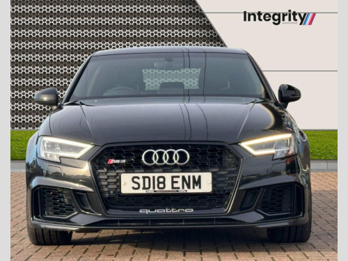 The 2018 Audi RS3 Saloon is widely regarded as one of the most complete compact performance cars ever built, combining supercar-level acceleration with everyday usability and Audi's legendary quattro all-wheel-drive system. Powered by the award-winning 2.5-litre turbocharged five-cylinder engine, the RS3 delivers a distinctive soundtrack, relentless performance, and exceptional grip in all conditions, setting it apart from anything else in its class. This example has covered 72,686 miles and benefits from a strong service history with six recorded services, making it an excellent representation of a model praised for both its engineering and long-term durability. Beyond sheer performance, this RS3 impresses with its refined interior and everyday usability. Numerous reviews emphasise that the cabin is both well-appointed and practical, offering advanced technology and usability on par with luxury vehicles, even if the primary focus is performance. The quattro drivetrain also means outstanding grip in all weather conditions, making this car just as confident on wet commuter routes as it is on twisty B-roads. Finished in Mythos Black with sleek black leather interior, this RS3 exudes understated yet aggressive style. The optional factory extras — including 19in Gloss Black diamond-cut alloy wheels, privacy glass, high-gloss black styling pack, and the Comfort & Sound package — not only enhance the car's visual presence but also add tangible comfort an 19in Alloy Wheels - 5-Arm Blade Design, 19in Alloy Wheels - 5-Arm Blade Design i, 2 x USB Charging Ports and 1 x AUX-IN, 6-Airbag System with Knee Airbag for Dri, Aluminium Interior Elements, Anti Theft Locking Wheel Bolts, Anti-Theft Alarm, Audi Beam, Audi Connect Infotainment Services (36 M, Audi Drive Select, Audi Hill Hold Assist, Audi Parking System Plus, Audi Smartphone Interface, Audi Sound System, Audi Virtual Cockpit with RS Specific Di, Auto-Dimming Rear-View Mirror with Light, Bluetooth Interface, Brake Calipers Painted in Black with RS , Comfort and Sound Package, Cruise Control, DAB Digital Radio, Door Mirrors - Electrically Adjustable a, Dual-Zone Electronic Climate Control, El