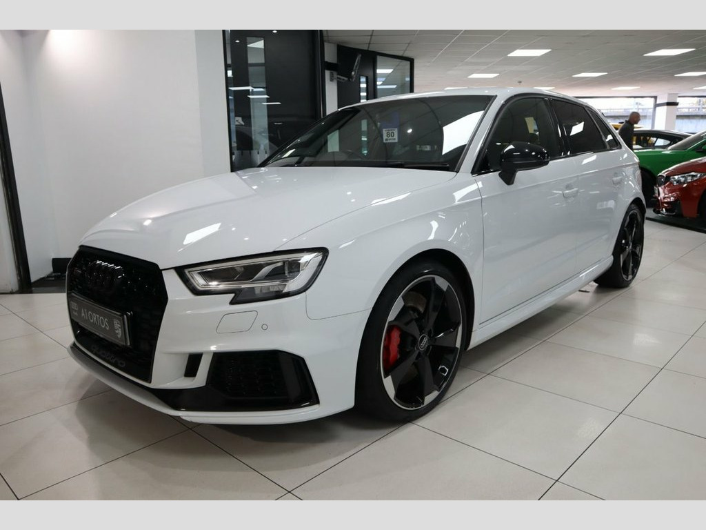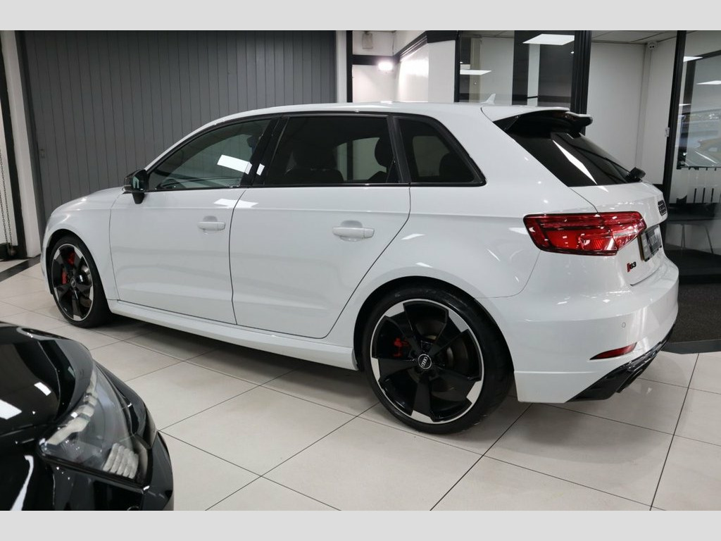 VERY RARE RS3 SPORTBACK JUST ARRIVED INTO STOCK! COVERING 49K MILES FROM NEW BACKED WITH FULL SERVICE HISTORY! INCREDIBLY SOUGHT AFTER EXAMPLE WITH THE ADDITION OF AUDI MAGNETIC RIDE RS SUSPENSION (£995 COST OPTION)! VERY CAPABLE PREMIUM HOT HATCH WITH 400PS! FINISHED IN GLACIER WHITE METALLIC! SPEC INCLUDES, RS SPORTS EXHAUST SYSTEM, HIGH GLOSS BLACK EXTERIOR STYLING PACKAGE, RED PAINTED BRAKE CALIPERS, UPGRADED 19 INCH GLOSS BLACK ROTOR DESIGN ALLOY WHEELS, AUDI VIRTUAL COCKPIT, AUDI SMARTPHONE INTERFACE WITH ANDROID AUTO AND APPLE CARPLAY, FINE NAPPA LEATHER BLACK SPORTS SEATS, HEATED FRONT SEATS, LEATHER MULTI FUNCTION FLAT BOTTOM STEERING WHEEL, PARKING SENSORS FRONT AND REAR, MMI NAVIGATION PLUS WITH MMI TOUCH! RARE, VERY SOUGHT AFTER INCREDIBLE EXAMPLE, EARLY VIEWING IS ESSENTIAL TO AVOID DISAPPOINTMENT, COMPREHENSIVE WARRANTY OPTIONS AVAILABLE , AA BREAKDOWN AVAILABLE STUNNING SHOWROOM CONDITION, MUST BE SEEN NOT TO BE MISSED, FIRST TO SEE WILL BUY, BE VERY QUICK THIS GEM WILL SOON GO!, VIEW MORE PICS ON OUR WEBSITE, PLEASE CALL FOR FULL SPEC, SIMPLY STUNNING! 19in Alloy Wheels - 5-Arm Rotor Design -, Audi Magnetic Ride with RS Sport Suspens, Brake Calipers Painted in Red with RS Lo, Glacier White, Privacy Glass, RS Sports Exhaust System, Styling Package - High-Gloss Black
