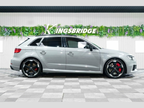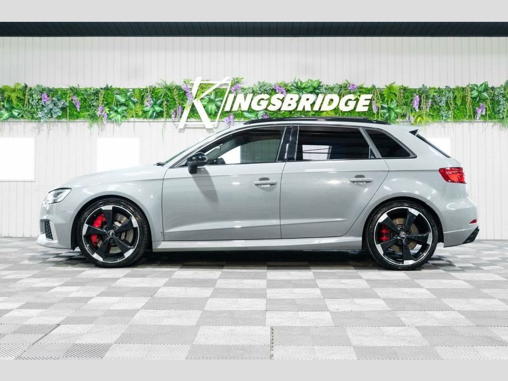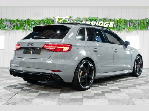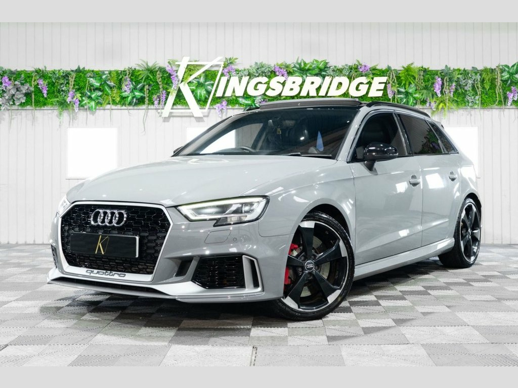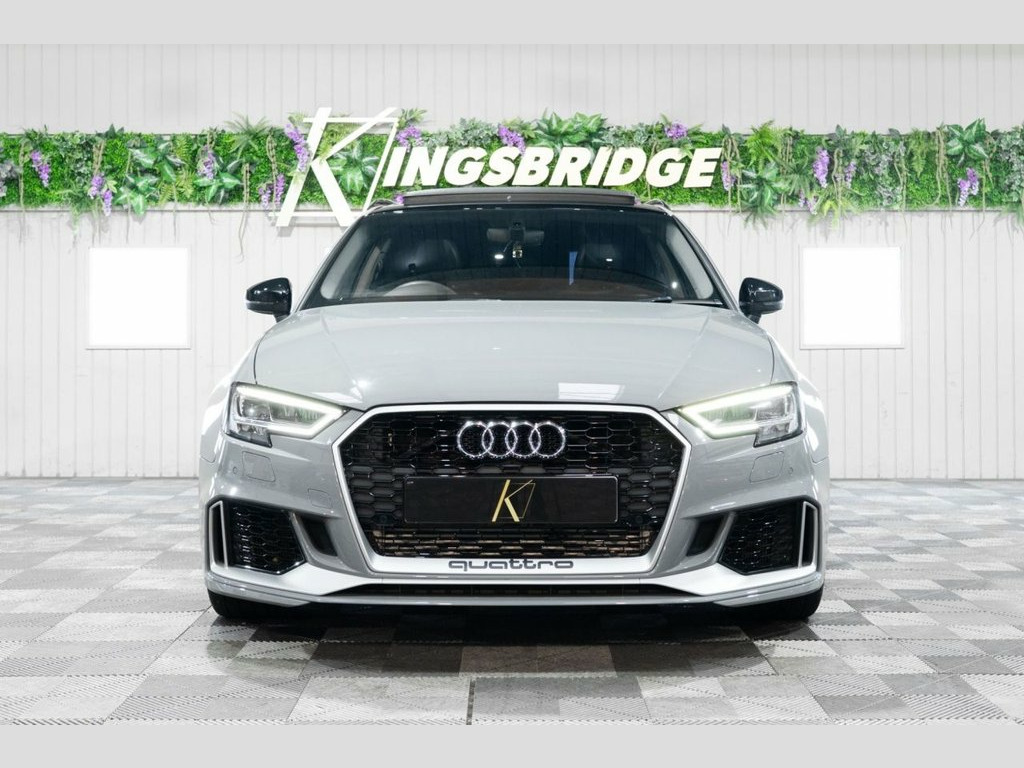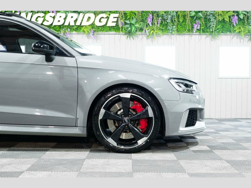 This 2019 Audi RS3 TFSI boasts exceptionally low mileage for its age, having covered just 34,000 miles. This performance saloon features a potent 2.5 litre petrol engine paired with a four wheel drive drivetrain, ensuring dynamic handling and exhilarating acceleration from 0-60mph in a mere 4.1 seconds. Its Euro 6 emission class means it meets current environmental standards. The RS3 is equipped with a host of desirable features that enhance its appeal and functionality. These include striking 19 inch alloy wheels in a Matt Titanium Rotor design with a diamond turned finish, complemented by a Matt Aluminium Styling Package. For enhanced visibility and a modern aesthetic, it benefits from Matrix LED headlights with LED rear lights and dynamic front and rear indicators. Practicality is also a strong point, with a generous boot space and the convenience of a Panoramic Glass Sunroof. The Comfort and Sound Package adds further refinement, incorporating keyless entry, a luxury branded sound system, and rear parking assistance with a camera. Matt Aluminium Styling Package, Matrix LED Headlights with LED Rear Ligh, Fine Nappa Leather - RS Embossed Sports , Nardo Grey, Comfort and Sound Package, Panoramic Glass Sunroof, RS Sports Exhaust System, Brake Calipers Painted in Red with RS Lo, 19in Alloy Wheels - 5-Arm Rotor Design -, 19in Alloy Wheels - 5-Arm Rotor Design, 2 x USB Charging Ports and 1 x AUX-IN, 6-Airbag System with Knee Airbag for Dri, Aluminium Interior Elements, Anti Theft Locking Wheel Bolts, Anti-Theft Alarm, Audi Connect Infotainment Services (36 M, Audi Drive Select, Audi Hill Hold Assist, Audi Parking System Plus, Audi Phone Box with Wireless Charging, Audi Smartphone Interface, Audi Sound System, Audi Virtual Co