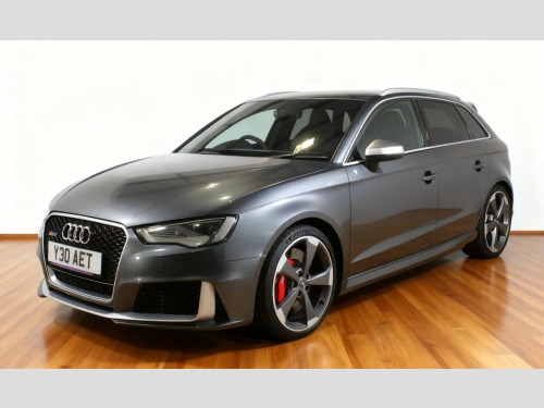 This 2015 Audi RS3 TFSI boasts a comprehensive service history, with its last service completed on 2025-04-03 at 84,105 miles, and will be supplied with a full 12 months MOT for your peace of mind. This powerful four wheel drive model features a 2.5 litre petrol engine and meets Euro 6 emissions standards. It is equipped with a styling package in extended matt aluminium, aluminium roof rails, and striking 19 inch alloy wheels in a 5 arm rotor design with a diamond cut, titanium matt finish. The body coloured door mirrors come with integrated LED indicators, and a rear view camera with parking assistance is included for added convenience. Experience exhilarating performance with this Audi RS3, capable of accelerating from 0 to 60 miles per hour in just 4.3 seconds. This impressive acceleration figure demonstrates its superior performance compared to other vehicles in its class. The combination of its potent engine, advanced four wheel drive system, and sophisticated design makes this RS3 a truly compelling proposition for any discerning driver. 12V Power Socket - Rear, 12V Power Socket - Rear x2, 19in Alloy Wheels - 5-Arm Rotor Design -, ABS - Anti-Lock Braking System, AMI - Audi Music Interface, ASR - Anti Slip Regulation, Adaptive Brake Lights, Airbags - Driver, Airbags - Drivers Knee, Airbags - Front Passenger, Airbags - Front Side, Airbags - Head Level Side For Front and , Alarm - Thatcham Category 1, All Weather LED Headlights, Aluminium Interior Elements, Aluminium Look Pedals, Aluminium-Effect Door Mirror Housings, Anti Theft Locking Wheel Bolts, Audi Drive Select, Audi Parking System Plus, Audi Parking System Rear with Acoustic I, Automatic Wipers with Rain Sensor, Brake Calipers - High Gloss-Black with R, Cables x2 - MP3 C