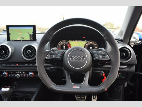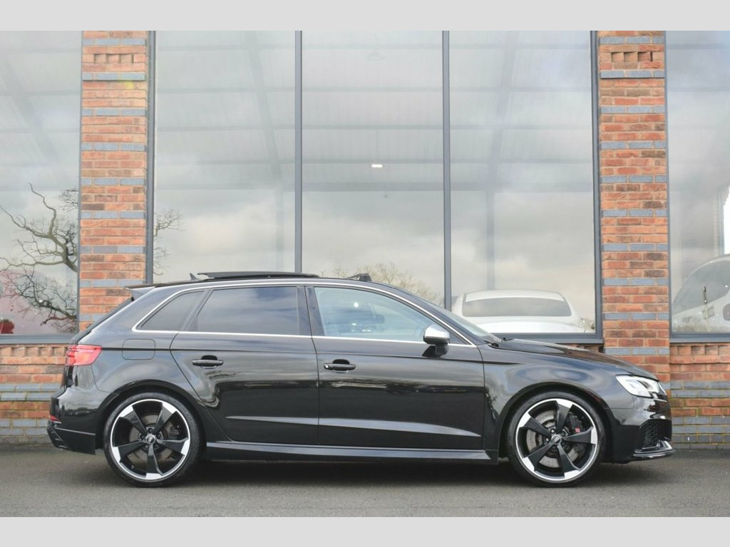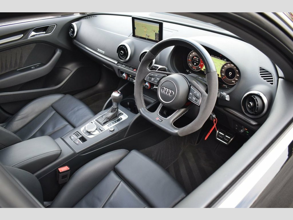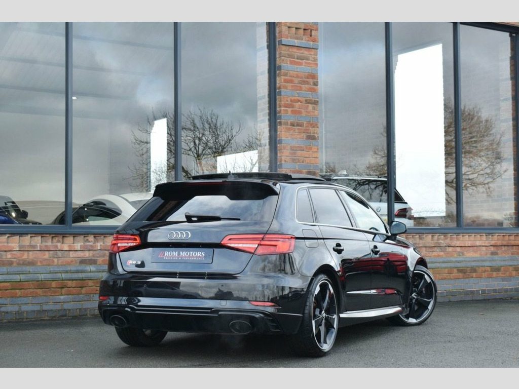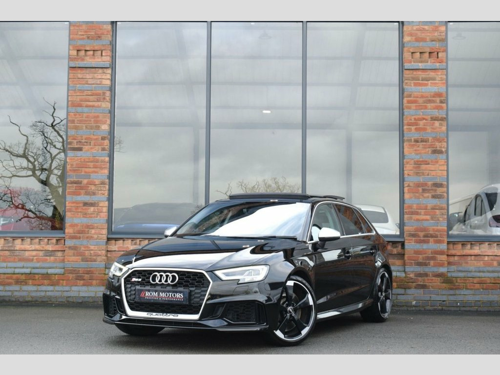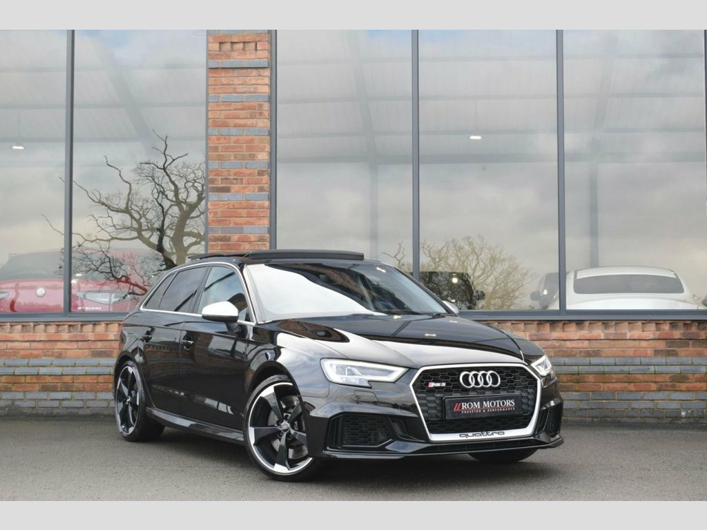 Rom Motors are excited to offer this Audi RS3 for sale. Finished in Mythos Black Metallic and coupled with Black 19" Diamond Cut Alloys and Full Panoramic Sliding Glass Sunroof, the latter, a must have option on an RS3 if you ask us. On top of this, being a pre OPF car it would be silly not to open that up even further to release its famous 5-Pot sound with a factory fitted RS Sports exhaust. The 2 big ticks for us are taken care of. Along side all the usual goodies of Full Heated Leather Interior, Apple CarPlay, Digital Dash & Cruise Control you also have optional Matrix LED Headlights, Audi's state of the art assisted lighting system still rolling out the factory on the latest models today & Reversing Camera. Presented in fantastic condition throughout with a Full Service History with both Audi & Specialist Service Centres ready to drive away today. RS Sports Exhaust System, Privacy Glass, Matrix LED Headlights with LED Rear Ligh, Mythos Black, Panoramic Glass Sunroof, Rear-View Camera, 19in Alloy Wheels - 5-Arm Rotor Design, 2 x USB Charging Ports and 1 x AUX-IN, 6-Airbag System with Knee Airbag for Dri, Aluminium Interior Elements, Anti Theft Locking Wheel Bolts, Anti-Theft Alarm, Audi Beam, Audi Connect Infotainment Services (36 M, Audi Drive Select, Audi Hill Hold Assist, Audi Parking System Plus, Audi Smartphone Interface, Audi Sound System, Audi Virtual Cockpit with RS Specific Di, Auto-Dimming Rear-View Mirror with Light, Bluetooth Interface, Brake Calipers Painted in Black with RS , CD Drive, Cruise Control, DAB Digital Radio, D