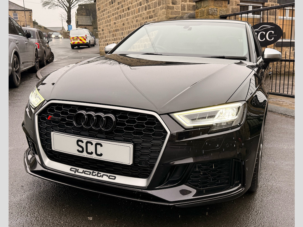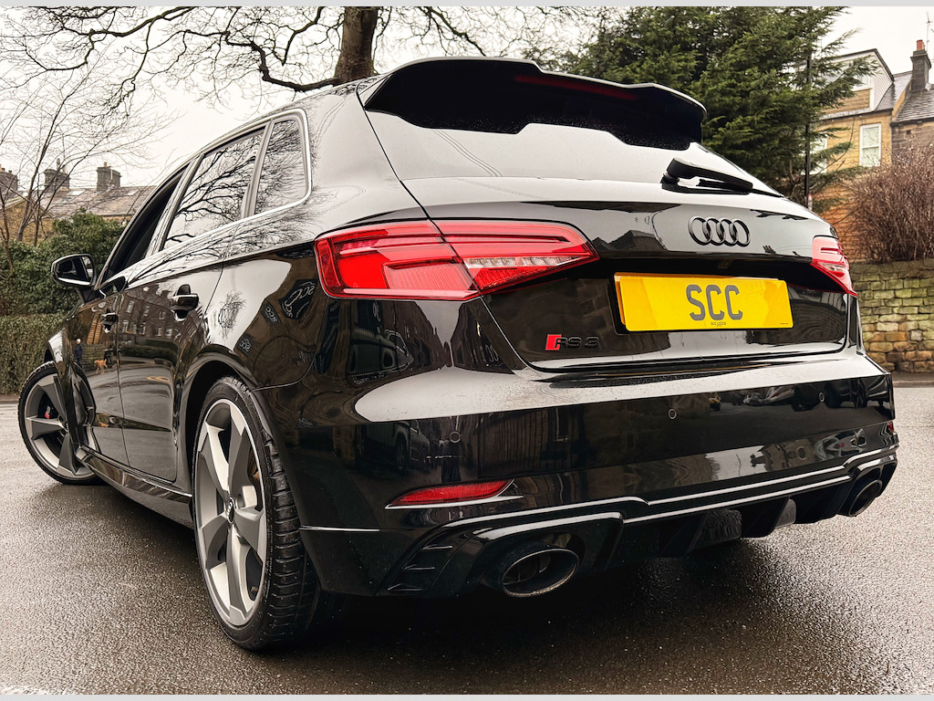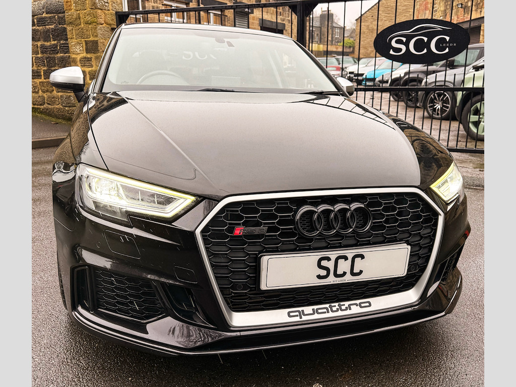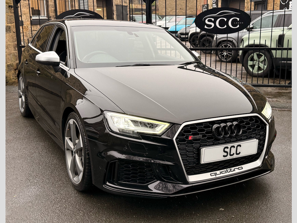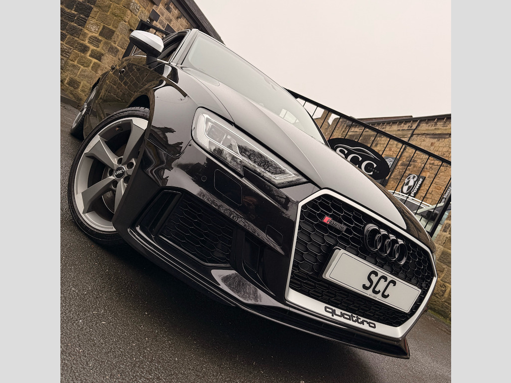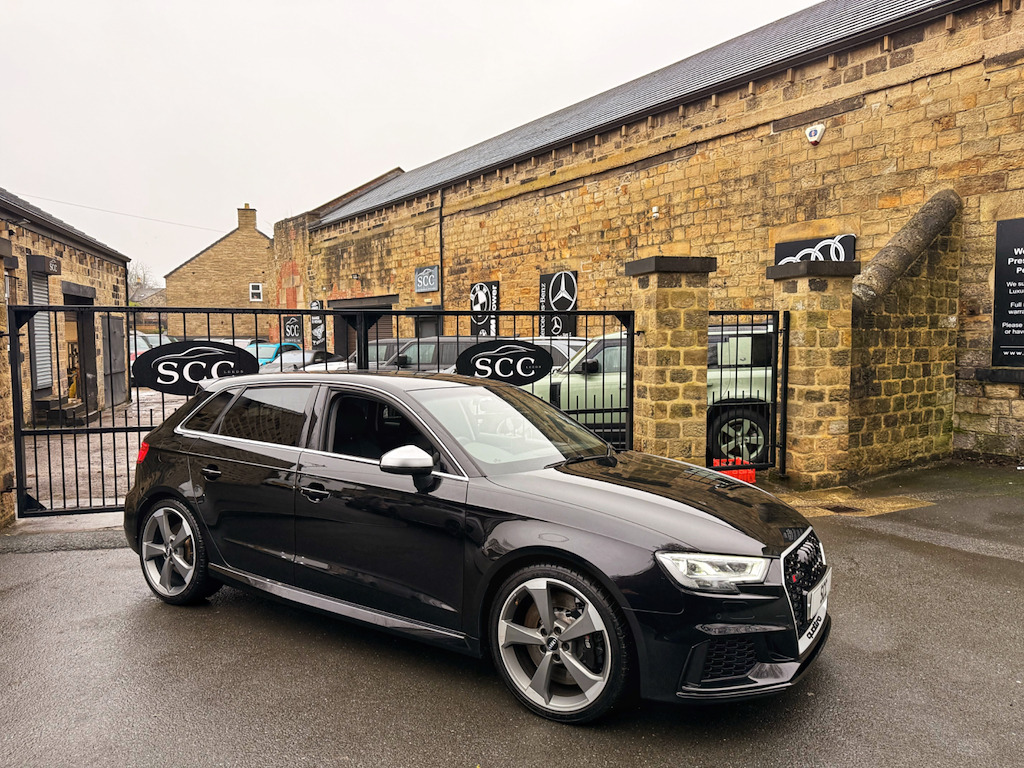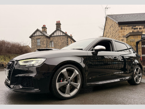 Audi RS3 – Pure Performance, Iconic Driving Hatch The Audi RS3 Hatchback isn’t just fast—it’s unrelentingly thrilling. Powered by Audi’s tuned turbo engine and the iconic RS Sports Exhaust, every press of the accelerator delivers hair-raising sound and lightning-fast response. This generation of RS3 is renowned for superb balance, razor-sharp handling, and track-ready agility, making it one of the most celebrated performance hatchbacks on the market. Performance highlights include: RS Sports Exhaust System – spine-tingling, attention-grabbing sound 19-inch Alloy Wheels – 5-Arm Rotor Design – optimized for grip and style Audi Sport Pack – enhances driving dynamics and sporty aesthetics ESC with ABS, ASR & EDL – precision control even in the most demanding situations Inside, it’s built for driver-focused enjoyment: Fine Nappa Leather RS-Embossed Sports Seats – hold you tight during aggressive cornering Electrically Adjustable Front Seats – combine comfort with sport performance Comfort and Sound Package – premium audio to complement the driving thrill Ownership & Service History: 2 owners from new. Full Audi main dealer service record – meticulously maintained 2021 at 15k oil change service, 2022 oil change service, 2023 inspection with oil service, 2024 inspection with oil service, 2025 inspection with oil service. Haldex coupling completed 2024. On the 2019 Audi RS3, the Audi Sport Pack was an optional factory upgrade that bundled together a couple of performance-focused features to enhance drivability and driving feel: Audi’s Sport Pack wasn’t a cosmetic styling kit — it focused on driving dynamics and sound: RS Sports Exhaust – this optional valved exhaust enhances the engine note and gives the RS3 its characteristic aggressive soundtrack under acceleration. Magnetic Ride (MagRide) – adaptive suspension that continuously adjusts damping to improve handling precision and body control. This isn’t always listed on every spec sheet, but specialist communities and buyers guides identify this as one of the key components tied to the Sport Pack option. In essence, the Sport Pack for this generation of RS3 brought a more engaging, dynamic drive thanks to a sharper sound and suspension upgrades that let you push harder on both road and track compared to the standard setup. Panther Black Crystal Effect (paint code Z9Z / H8) is an optional crystal-effect exterior colour from Audi that sits above the standard black finishes in both depth and visual complexity. It’s offered as an enhanced colour option rather than a basic solid or metallic paint. At first glance, it appears like a deep, glossy black, giving the car a sleek and aggressive presence. In direct sunlight or brighter light, the crystal effect reveals microscopic metallic or mica flakes in the paint that catch the light and can display subtle shimmering highlights — adding depth, richness and a sense of movement to the finish. Under some lighting conditions, enthusiasts note that it can show hints of very dark hues or undertones (like deep purple tones) as light plays across the surface — giving the finish a dynamic character not seen on standard black paints. It’s more than just black — it’s a premium paint option that enhances the RS3’s visual impact, especially in changing light. Because of the crystal particles in the finish, it can look noticeably richer and more dimensional than a plain black paint, especially when the sun hits it. This RS3 isn’t just a hatchback—it’s a performance icon, blending everyday usability with exhilarating speed, precision handling, and legendary RS character. Own a piece of Audi’s performance heritage. Book your test drive today or call 01943 884551 to experience the RS3’s unmatched thrill for yourself. 2 x USB Charging Ports and 1 x AUX-IN,6-Airbag System with Knee Airbag for Driver,Aluminium Interior Elements,Anti Theft Locking Wheel Bolts,Anti-Theft Alarm,Audi Connect Infotainment Services (36 Month Subscription From New),Audi Drive Select,Audi Hill Hold Assist,Audi Parking System Plus,Audi Phone Box with Wireless Charging,Audi Smartphone Interface,Audi Sound System,Audi Virtual Cockpit with RS Specific Display,Auto-Dimming Rear-View Mirror,Bluetooth Interface,Brake Calipers Painted in Black with RS Logo at the Front,CD Drive,Cruise Control,DAB Digital Radio,Door Mirrors - Electrically Adjustable and Heated with Integrated LED Side Indicators,Door Sill Trims - Inlays in Aluminium and Illuminated with RS3 Logo,Dual-Zone Electronic Climate Control,ESC - Electronic Stabilisation Control inc ABS - ASR and EDL,Electric Windows - Front and Rear,Extended Side Sills in Body Colour,First Aid Kit and Warning Triangle,Flared Front Wheel Arches,Front Centre Armrest,Headlights Washers,Heated Front Seats,ISOFIX Child Seat Mounting and Top Tether,Inlays - Optic 3D Design - Titanium Grey,Interior Light Package,LED Headlights with LED Rear Lights and Dynamic Rear Indicators,LED Interior Light Package,Light and Rain Sensor,MMI Navigation Plus including MMI Touch,Manual Seat Adjustment,Matt Aluminium Look Door Mirrors,Matt Aluminium Look Window Trims,Pedals - Brushed Stainless Steel,Privacy Glass,Progressive Steering,RS Brake System,RS Dual-branch Exhaust System with Two Oval Tailpipe Trims,RS Flat Bottomed 3 Spoke Leather Multi-function Sport Steering Wheel with Alcantara Inserts and Gear Shift Paddles in Aluminium Look - Contrast Stitching and RS Badging,RS Gear Lever Knob in Alcantara with Leather Gaiter with Contrast Stitching,RS Roof Edge Spoiler,RS Sports Suspension,RS3 Badge on Grille and on Luggage Compartment Lid,Radiator Grille - Honeycomb Design in Gloss Black,Radiator Grille Frame - Matt Aluminium look,Rear Diffuser Insert in Gloss Black,Remote Central Locking with 2 Fold Away Keys,Seat Belt Monitoring,Seats - Split Folding Rear - 60-40,Storage Compartments in the Door Side Trims-Centre Console-Under Front Passenger Seat,Storage Package,Tool Ki