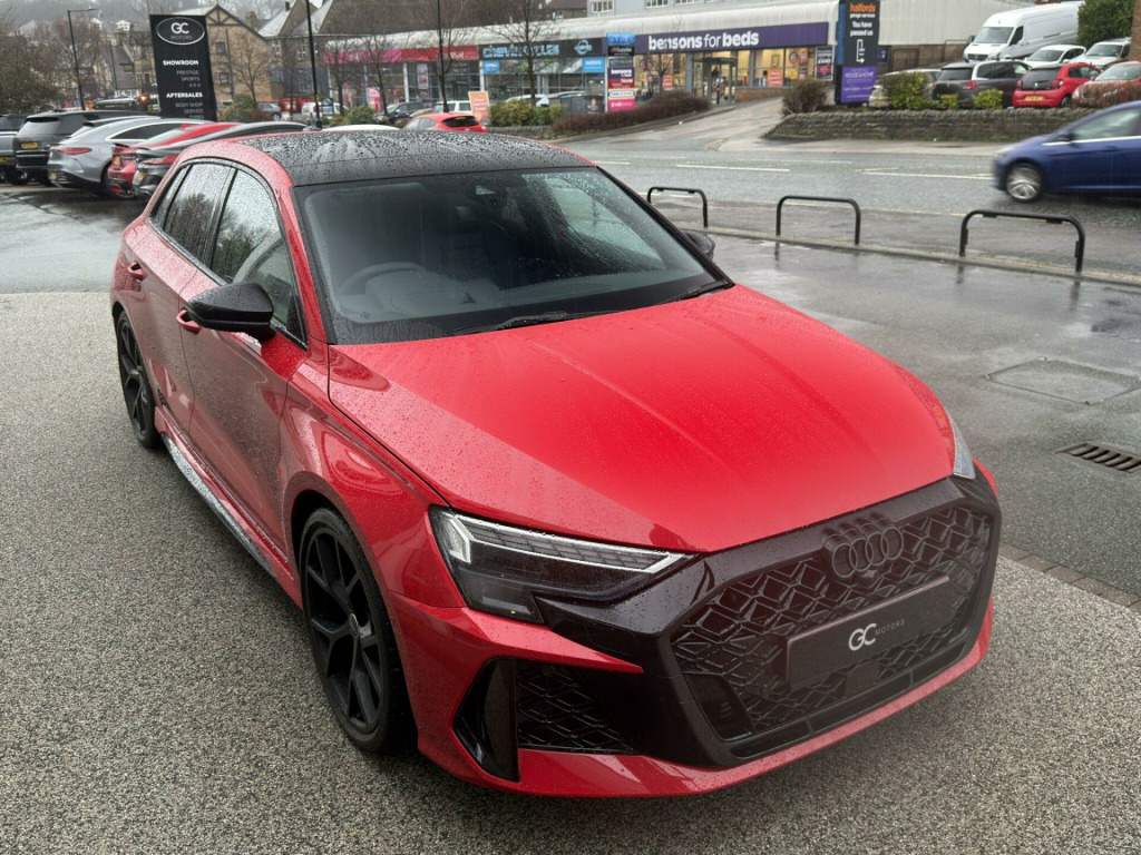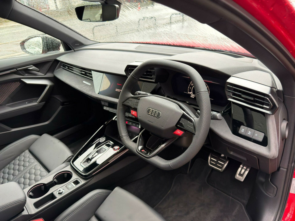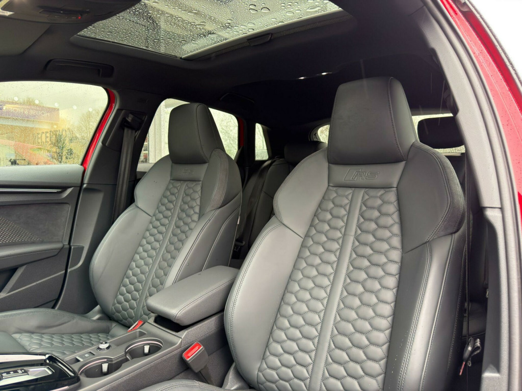 1 Owner Car, 2.5 TFSI Sportback. Factory Options: Technology Pack Pro (Panoramic Sunroof, Heads Up Display, Electric Front Seats with Driver Memory and Door Mirrors Memory, Comfort Key, 360 Surround View Camera, Park Assist Plus with Parking System, Adaptive Cruise Control, Side Assist with Exit Warning, Swerve Assist & Turn Assist, Front Emergency Brake Assist, Side & Rear), Red Brake Calipers, Black Leather Interior. Standard Specification: RS Sport Exhaust System, Sonos 3D Sound System, Black Styling Pack Plus, Reversing Camera, Heated Front Sports Seats, 19” Alloys, Privacy Glass, Ambient Lighting Package Pro, RS Sports Suspension, 3-Zone Deluxe Automatic Air Conditioning, Drive Select, Lane Departure Warning, Electric Folding Heated Wing Mirrors, Speed Limiter, LED Headlights with LED Rear Lights and Dynamic Rear Indicators, Phone Box with Wireless Charging, Virtual Cockpit with RS Specific Design and 12.3in Display, Traffic Sign Recognition, Collision Avoidance Assistant, Hill Hold Assist, MMI Navigation Plus with High Resolution 10.1in Touchscreen Colour Display, DAB Radio, Bluetooth, Apple CarPlay, Android Auto, Leather Multi-Function Steering Wheel with Shift Paddles, 60/40 Split Folding Rear Seats, Illuminated Kick Plates. Finished in Progressive Red Metallic Paint. Audi Warranty Until 03/2028. Panoramic Roof, Panoramic Glass Roof, Pan Roof, Pano Roof, Panorama Roof, Sunroof, Glass Roof, Panoramic Sunroof. Tech Pack, Tech Package, Technology Package.Proudly No.1 in the UK for customer service in 2024, as awarded by AutoTrader. All our cars are HPI clear. Please contact us for your own personal video presentation of this particular car. We offer competitive finance rates with our in-house team from PCP, lease purchase and HP. Whilst we make every effort to ensure that the specification and technical information for the cars on our website is correct, some of it is supplied by third party providers and we cannot guarantee its accuracy. It is therefore important that you do not solely rely on this information.. RS Sport Exhaust System, Sonos 3D Sound System, Black Styling Pack Plus, Reversing Camera, Heated Front Sports Seats, 19” Alloys, Privacy Glass, Ambient Lighting Package Pro, RS Sports Suspension, 3-Zone Deluxe Automatic Air Conditioning, Drive Select, Lane Departure Warning, Electric Folding Heated Wing Mirrors, Speed Limiter, LED Headlights with LED Rear Lights and Dynamic Rear Indicators, Phone Box with Wireless Charging, Virtual Cockpit with RS Specific Design and 12.3in Display, Traffic Sign Recognition, Collision Avoidance Assistant, Hill Hold Assist, MMI Navigation Plus with High Resolution 10.1in Touchscreen Colour Display, DAB Radio, Apple CarPlay, Android Auto, Leather Multi-Function Steering Wheel with Shift Paddles, 60/40 Split Folding Rear Seats, Illuminated Kick Plates, Technology Pack Pro, Red Brake Calipers.