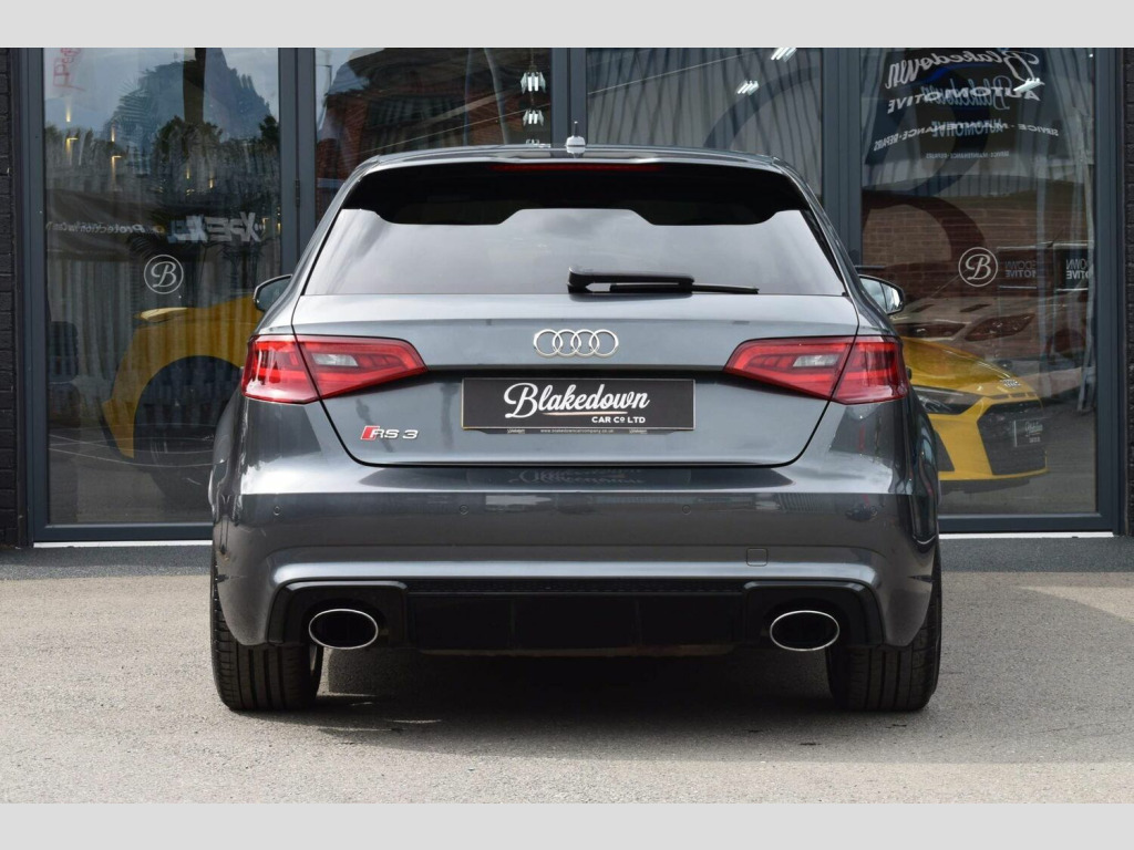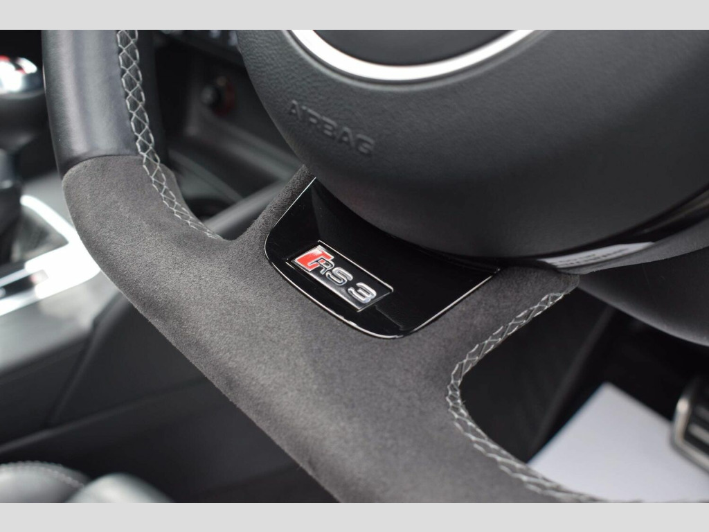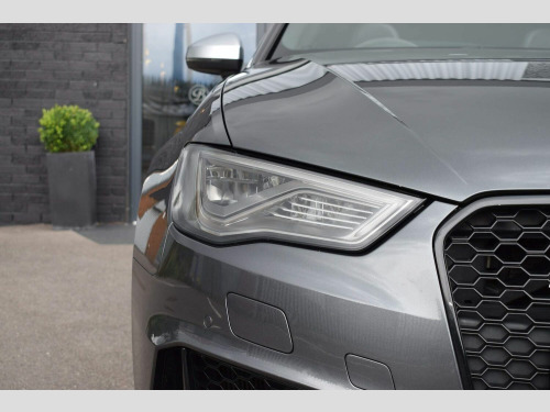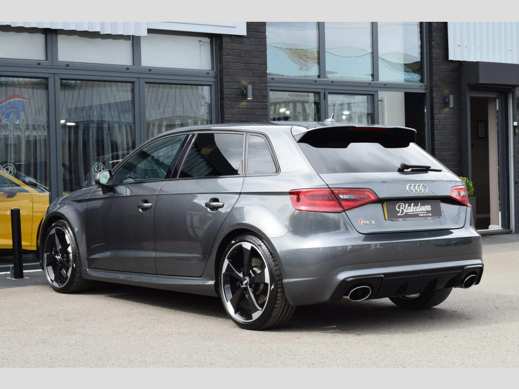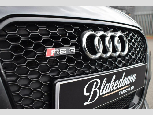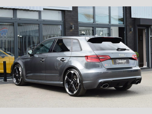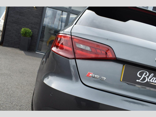 2016 16 Audi RS3 2.5 TFSI Sportback S Tronic Quattro (Nav) finished in Daytona Grey Pearl Effect with full black Nappa leather interior. Just 33600 miles covered and supported with full service history with electronic record present - 3 Audi services and a further independant service in May 2021. This was a major service including air filter and brake fluid change. This RS3 is boasting an fantastic specification with over £4,000 in optional extras fitted and all the most sought after equipment. This includes: Dynamic Package (Audi Sports Exhaust and Magnetic Ride), Comfort and Sound Package (Bang & Olufsen Audio, Auto Dimming Rear View Mirror, Cruise Control and Interior Lighting Package), Panoramic Glass Sunroof, Pearl Effect Paint and Privacy Glass, Presented in beautiful condition inside and out - cherished and maintained to the highest standard. Supplied with two keys, all original bookpacks, documentation etc. 4 matching Pirelli P-Zero tyres with excellent tread and finally a Ghost immobiliser has been fitted for additional security. FINANCE FROM 6.9% APR | GTECHNIQ DETAILING & CERAMIC COATINGS | XPEL PAINT PROTECTION FILM