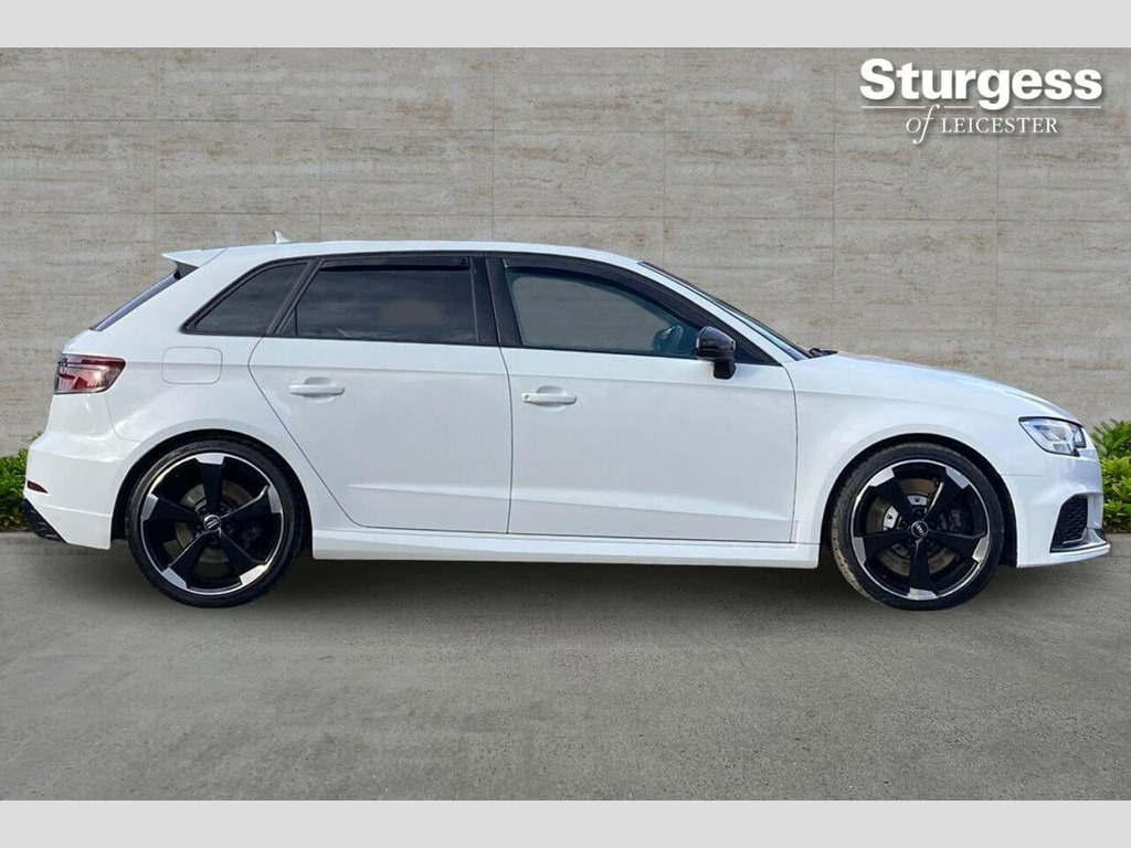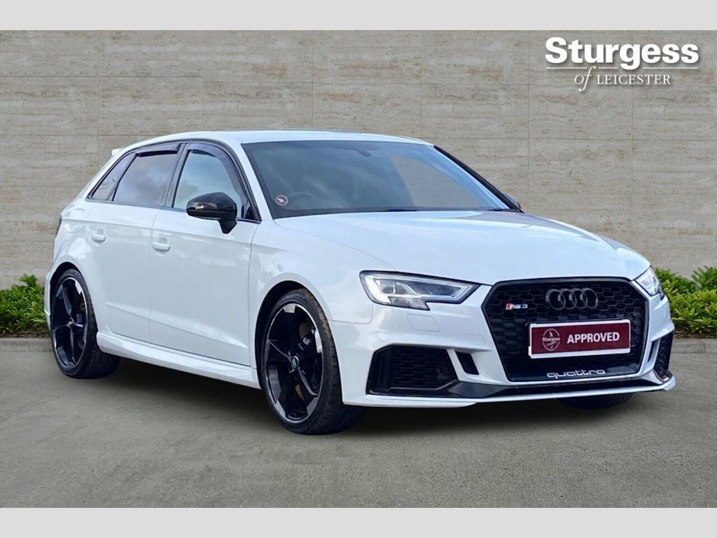 This 2018 Audi RS3 TFSI offers an impressive 0-62mph acceleration time of just 4.1 seconds, a testament to its powerful 2.5 litre petrol engine. This Euro 6 compliant model features a sophisticated four wheel drive system for enhanced handling and stability. The vehicle has a partial service history, with its last service completed on 31 March 2023 at 34,249 miles and comes with 3 months warranty. Peace of Mind Package: - Partial Service History - Last serviced 31 March 2023 @ 34,249 miles - 12 month MOT will be provided upon purchase - 3 Months Comprehensive Warranty ? Included FREE - 3 Months Roadside Assistance ? Included FREE Experience superior visibility and safety with LED headlights and dynamic LED rear indicators. Parking is made effortless thanks to the Audi Parking System Plus, which includes front and rear sensors. Inside, enjoy the comfort of dual zone electronic climate control and the convenience of an auto dimming rear view mirror with light and rain sensors, automatically activating the headlights. Stay connected on the go with the integrated Bluetooth interface. This RS3 also boasts a surprisingly large boot space, making it practical for everyday use and weekend getaways. Buy Your Next Car Your Way! Reserve online for just ?100, pay in full, or apply for tailored finance. We welcome part exchanges with competitive valuations and offer a 14-day money-back guarantee plus nationwide delivery (subject to availability and cost to be paid by customer). 19in Alloy Wheels - 5-Arm Rotor Design, 2 x USB Charging Ports and 1 x AUX-IN, 6-Airbag System with Knee Airbag for Dri, Aluminium Interior Elements, Anti Theft Locking Wheel Bolts, Anti-Theft Alarm, Audi Beam, Audi Connect Infotainment Services (36 M, Audi Drive Select, Audi Hill Hold Assist, Audi Parking System Plus, Audi Smartphone Interface, Audi Sound System, Audi Virtual Cockpit with RS Specific Di, Auto-Dimming Rear-View Mirror with Light, Bluetooth Interface, Brake Calipers Painted in Black with RS , CD Drive, Cruise Control, DAB Digital Radio, Door Mirrors - Electrically Adjustable a, Dual-Zone Electronic Climate Control, ESC - Electronic Stabilisation Control i, Electric Windows -