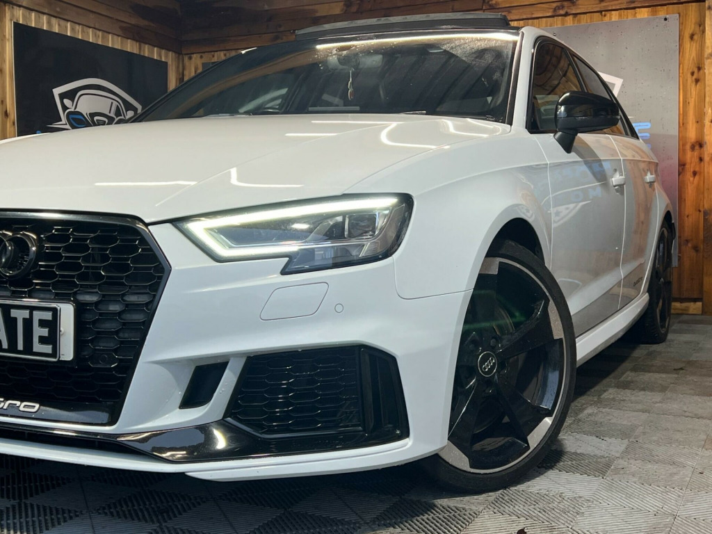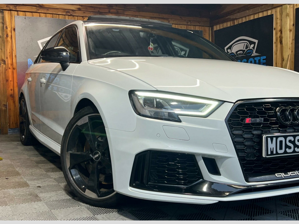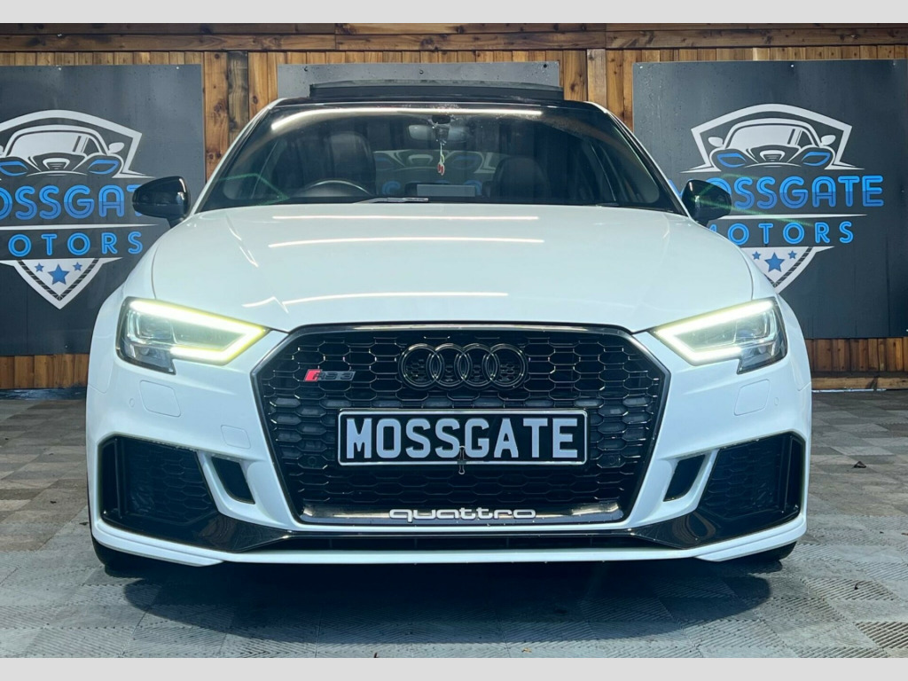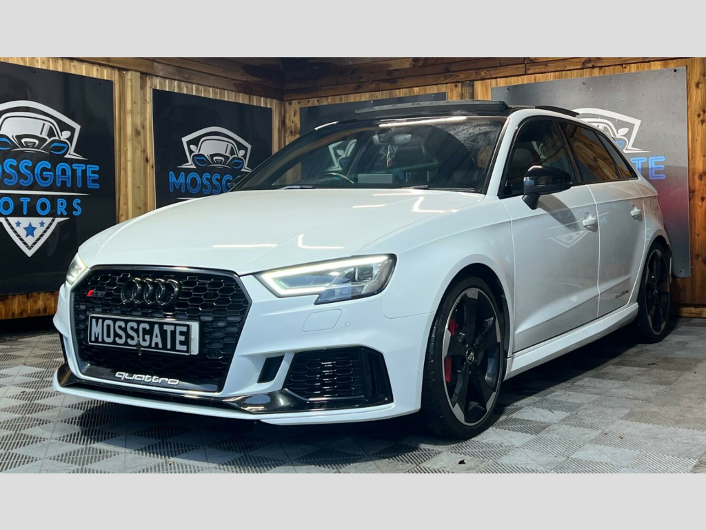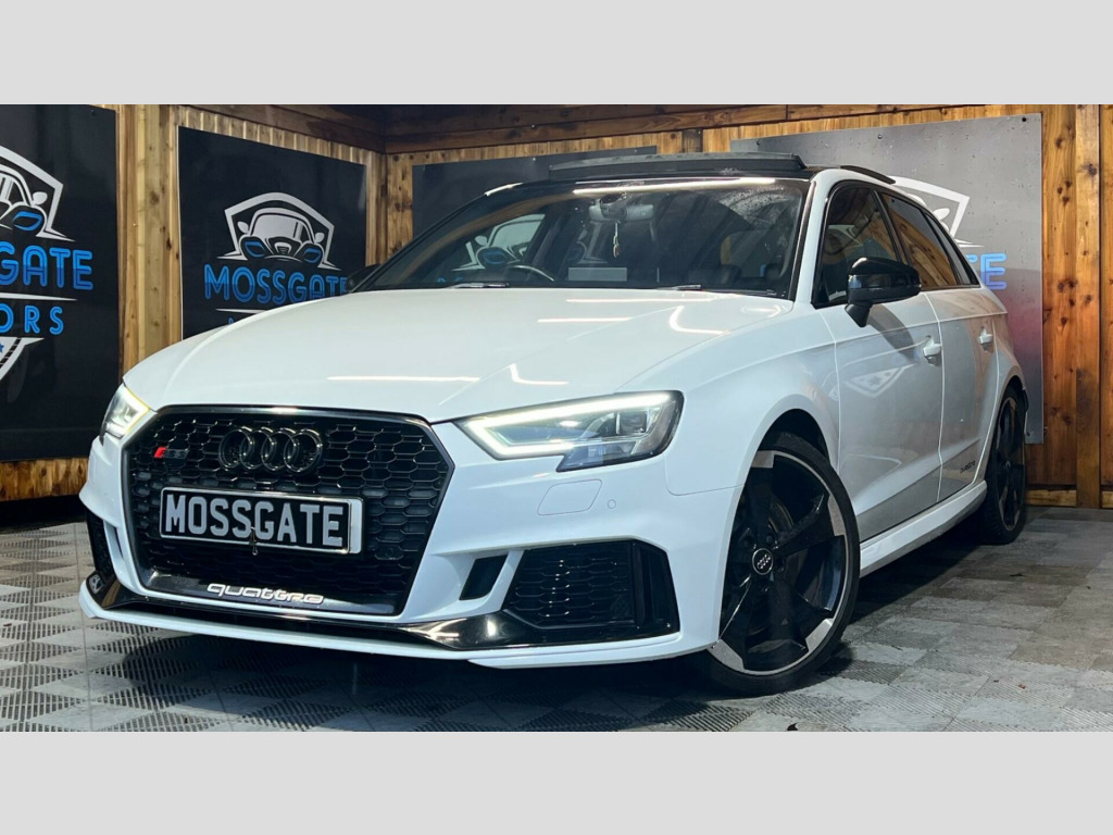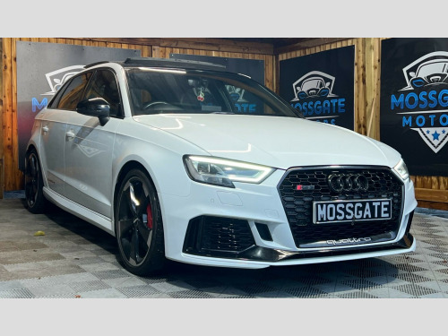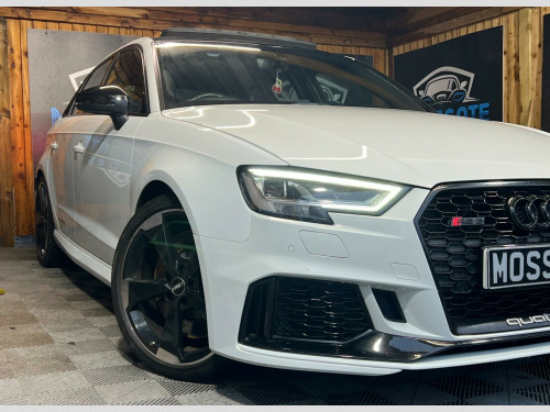 £7k in optional extras: Panoramic sunroof, RS Sport exhaust system, Audi Magnetic Ride, Comfort and Sound Pack, Electrically adjustable front seats, Privacy glass, Red painted brake calipers (with RS3 logo at the front), Audi Parking System Plus, Door mirrors (folding with auto-dimming function), 4 way electric lumbar support, High-beam assist, Glacier white (metallic), Optic 3D design (titanium grey), RS emblem on steering wheel.HPI Clear Over 70 Vehicles In Stock,MOSSGATE MOTORS LTD,6 MONTHS,12 MONTHS WARRANTIES AVAILABLE, DRIVE-AWAY WITHIN 1 HOUR, FINANCE AVAILABLE, ALL CARS WELCOME IN PART-EXCHANGE, ANY AGE, ANY MILEAGE, ANY CONDITION, INSPECTION & TEST-DRIVE WELCOME, NATIONWIDE DELIVERY AVAILABLE, OPEN 7 DAYS A WEEK, PHONE LINES OPEN TILL LATE/EVENING VIEWINGS AVAILABLE, MOSSGATE MOTORS LTD , UNIT 8 MOORHEY INDUSTRIAL ESTATE, MOORHEY ST, OLDHAM, OL4 1JE. 19in Alloy Wheels - 5-Arm Rotor Design, 2 x USB Charging Ports and 1 x AUX-IN, 6-Airbag System with Knee Airbag for Driver, Aluminium Interior Elements, Anti Theft Locking Wheel Bolts, Anti-Theft Alarm, Audi Beam, Audi Connect Infotainment Services (36 Month Subscription From New), Audi Drive Select, Audi Hill Hold Assist, Audi Parking System Plus, Audi Smartphone Interface, Audi Sound System, Audi Virtual Cockpit with RS Specific Display, Auto-Dimming Rear-View Mirror with Light and Rain Sensor, Bluetooth Interface, Brake Calipers Painted in Black with RS Logo at the Front, CD Drive, Cruise Control, DAB Digital Radio, Door Mirrors - Electrically Adjustable and Heated with Integrated LED Side Indicators, Dual-Zone Electronic Climate Control, ESC - Electronic Stabilisation Control inc ABS - ASR and EDL, Electric Windows - Front and Rear, Electromechanical Parking Brake, First Aid Kit and Warning Triangle, Front Centre Armrest, Front and Rear Floor Mats, Headlights Washers, Heated Front Seats, ISOFIX Child Seat Mounting and Top Tether, Illuminated Door Sill Trims with RS Logo, Inlays - Optic 3D Design - Titanium Grey, Interior Light Package, LED Headlights with LED Rear Lights and Dynamic Rear Indicators, MMI Navigation Plus including MMI Touch, Manual Seat Adjustment, Matt Aluminium Look Door Mirrors, Matt Aluminium Look Window Trims, Pedals - Brushed Stainless Steel, Progressive Steering, RS Body Styling, RS Brake System, RS Dual-branch Exhaust System with Two Oval Tailpipe Trims, RS Flat Bottomed 3 Spoke Leather Multi-function Sport Steering Wheel with Alcantara Inserts and Gear Shift Paddles in Aluminium Look - Contrast Stitching and RS Badging, RS Gear Lever Knob in Alcantara with Leather Gaiter with Contrast Stitching, RS Roof Edge Spoiler, RS Sports Suspension, RS3 Badge on Grille and on Luggage Compartment Lid, Remote Central Locking with 2 Fold Away Keys, Seat Belt Monitoring, Seats - Split Folding Rear - 60-40, Storage Package, Tool Kit and Car Jack, Tyre Pressure Warning Light, Tyre Repair Kit, Voice Control, Rear-View Camera, Tyre Pressure Monitoring System, 19in Alloy Wheels - 5-Arm Rotor Design - Gloss Anthracite Black - Diamond Cut Finish, Panoramic Glass Sunroof, Privacy Glass, RS Sports Exhaust System, Comfort and Sound Package, Electrically Adjustable Front Seats, Electrically Adjustable 4-Way Lumbar Support, Fine Nappa Leather with Diamond Quilting - RS Super Sports Seats - Black/Rock Grey Stitching RS3 Logo.