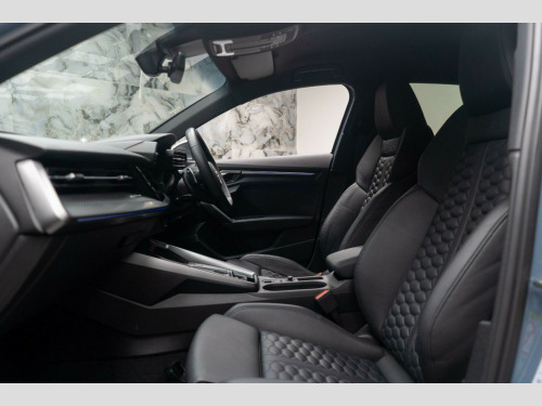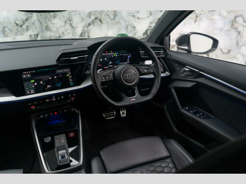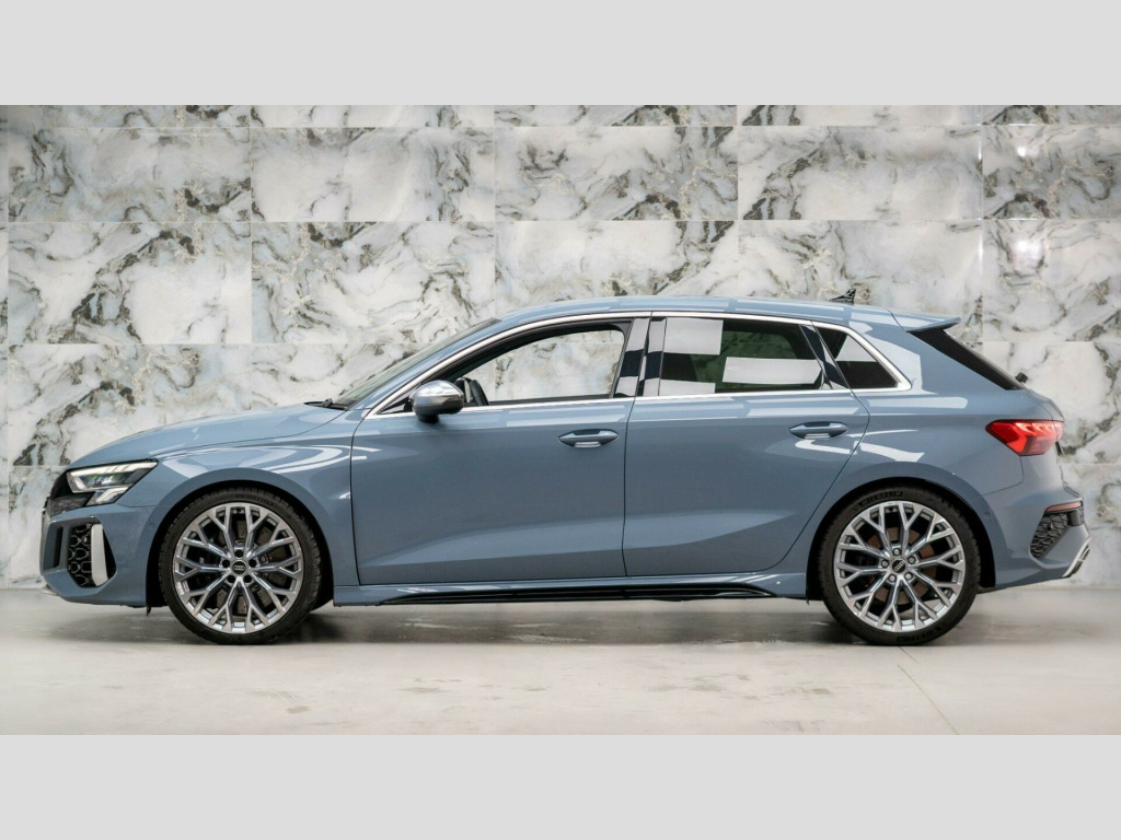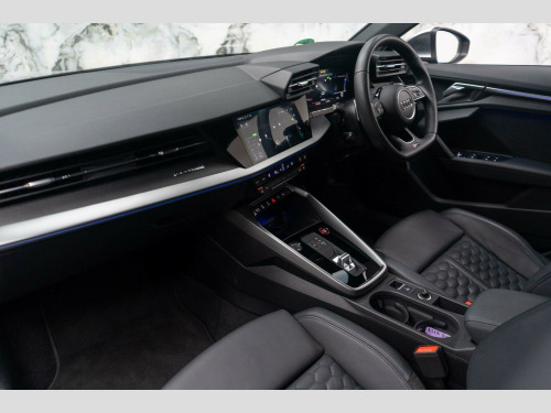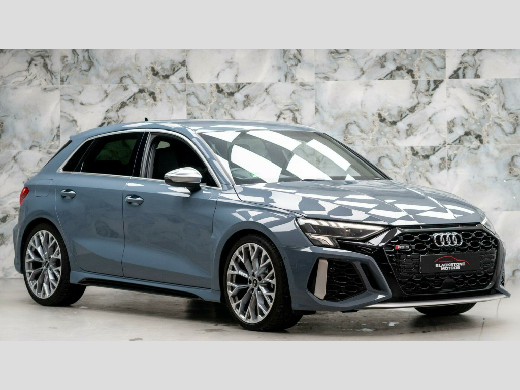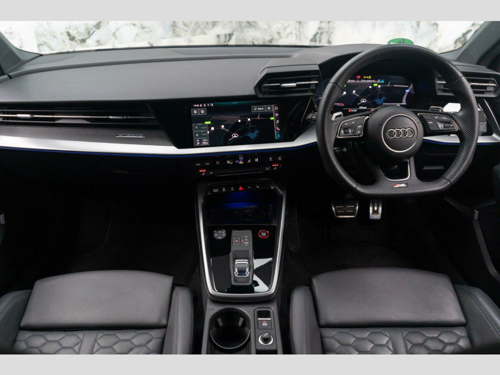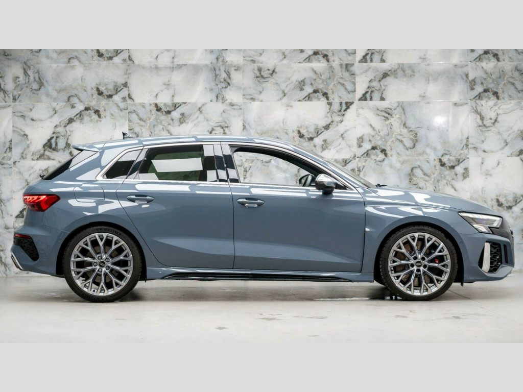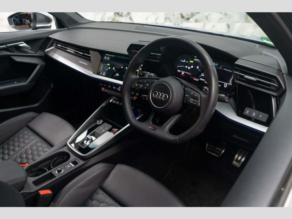 This 2022 Audi RS3 TFSI offers an exhilarating driving experience with its impressive 2.5 litre petrol engine and four wheel drive system. As a Euro 6 compliant vehicle, it meets modern emissions standards. This RS3 comes equipped with the desirable Comfort and Sound Package, which includes keyless entry for effortless access, a luxury branded sound system to enhance your journeys, and parking assistance with a rear camera for confident manoeuvring. You'll also appreciate the dual zone electronic climate control, ensuring personalised comfort for both driver and passenger, and the convenience of heated front seats. The striking LED headlights and LED rear lights, complete with dynamic rear indicators, not only improve visibility but also add to the car's sophisticated appearance. Stay connected on the go with the integrated Bluetooth interface.The performance of this Audi RS3 is truly exceptional, highlighted by its rapid 0-62mph acceleration in just 3.8 seconds. This remarkable speed demonstrates how this vehicle surpasses many others in its class, offering a level of responsiveness and dynamism that is sure to impress. The combination of its powerful engine, advanced drivetrain, and thoughtful features makes this 2022 Audi RS3 TFSI a compelling choice for those seeking both performance and premium comfort. mfort and sound package, 19in alloy wheels - 10-y-spoke - platinum grey - gloss turned finish, airbags - driver and front passenger with passenger airbag deactivation, aluminium interior elements, ambient lighting pack, anti theft locking wheel bolts, anti-theft alarm, audi beam, audi connect emergency call and service, audi connect infotainment services (3 month subscription from new), audi drive select, audi pre-sense front, audi smartphone interface, audi sound system, audi virtual cockpit with rs specific display, auto-dimming rear-view mirror, bluetooth interface, brake calipers painted in black with rs logo at the front, cloth headlining in black, collision avoidance assistant, cruise control, dab digital radio, door mirrors - electrically folding and heated and auto dimming on both sides, door sill trims - inlays in aluminium and illuminated with rs3 logo, dual-zone electronic climate control, esc - electronic stabilisation control inc abs - asr and edl, electric windows - front, electronically operated child locks, first aid kit and warning triangle, flat bottomed 3 spoke leather multi-function sport steering wheel with gear shift paddles in aluminium look - contrast stitching and rs badging, front centre armrest, front side airbags with head airbags and interaction airbag, front and rear floor mats, headlights washers, heated front seats, hill hold assist, i-size and top tether child seat mounting for the outer rear seats, inlays - carbon, led headlights with led rear lights and dynamic rear indicators, lane departure warning, legal emergency call - e-call, light and rain sensor, mmi navigation plus with mmi touch, manual boot compartment lid, manual front seat adjustment, matt aluminium look door mirrors, matt aluminium look window trims, parking assist with parking system plus, pedals in stainless steel and footrest in black, privacy glass, progressive steering, rs body styling, rs dual-branch exhaust system with two chrome-plated oval tailpipe trims, rs emblem, rear suspension, rear window wiper and washer system, remote central locking, roof colour in bodycolour, seat belt reminder with passenger presence detection in rear, side skirts in black, split folding rear seat bench - 60-40 or fully, storage package, tool kit, tyre pressure loss indicator, tyre repair kit, windscreen with acoustic glazing