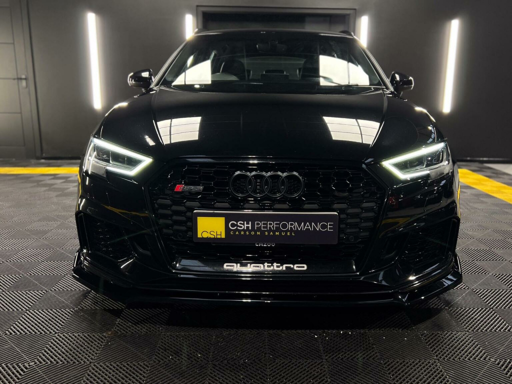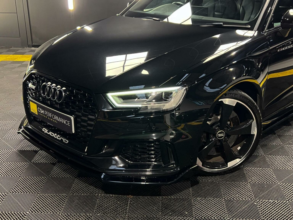 Were pleased to present this lovely Audi RS3, finished in Mythos Black Metallic. This car comes with a fantastic range of factory features, including Carbon inlays, fine Nappa leather RS embossed sports seats in black with rock grey stitching, 19in 5-arm rotor alloy wheels in gloss anthracite black with diamond-cut finish, privacy glass, RS sports exhaust system, TPMS, black roof rails, high-gloss black styling package, Audi Virtual Cockpit with RS-specific display, LED headlights with LED rear lights and dynamic rear indicators, MMI Navigation Plus including MMI Touch, RS sports suspension, RS flat-bottomed leather multi-function sport steering wheel with Alcantara inserts and gear shift paddles, heated front seats, Audi Drive Select, dual-zone electronic climate control and so much more. Maxton Design kit including rear diffuser, rear spats, front splitter, side skirts and spoiler lip, black roof rails and black badges. 2 keys, full service history. At CSH Performance we offer extended warranties, immobilisers and tracking devices, ceramic coating, styling kits and more - enquire with us today. All vehicles undergo comprehensive health checks and are sold with warranty packages. Contact us today to enquire - appointment only due to multiple sites. Finance available. Part exchange welcome. 01484 941105.