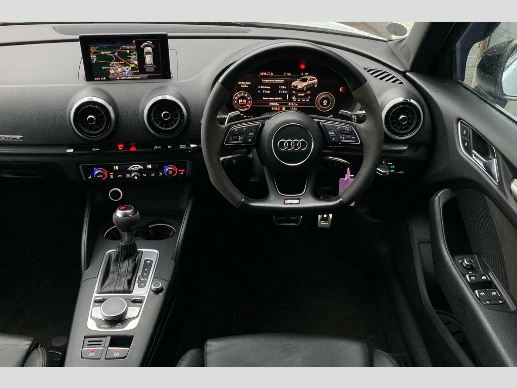 This 2018 Audi RS3 TFSI offers an impressive 0-62mph acceleration time of just 4.1 seconds, a testament to its powerful 2.5 litre petrol engine. This Euro 6 compliant model features a sophisticated four wheel drive system for enhanced handling and stability. The vehicle has a partial service history, with its last service completed on 31 March 2023 at 34,249 miles and comes with 3 months warranty.Peace of Mind Package:- Partial Service History - Last serviced 31 March 2023 @ 34,249 miles- 12 month MOT will be provided upon purchase- 3 Months Comprehensive Warranty – Included FREE- 3 Months Roadside Assistance – Included FREEExperience superior visibility and safety with LED headlights and dynamic LED rear indicators. Parking is made effortless thanks to the Audi Parking System Plus, which includes front and rear sensors. Inside, enjoy the comfort of dual zone electronic climate control and the convenience of an auto dimming rear view mirror with light and rain sensors, automatically activating the headlights. Stay connected on the go with the integrated Bluetooth interface. This RS3 also boasts a surprisingly large boot space, making it practical for everyday use and weekend getaways.Buy Your Next Car Your Way! Reserve online for just £100, pay in full, or apply for tailored finance. We welcome part exchanges with competitive valuations and offer a 14-day money-back guarantee plus nationwide delivery (subject to availability and cost to be paid by customer). Explore our wide range of vehicles or request a personalised video. *Unaccompanied test drives available on request. T&Cs apply.Disclaimer: While every effort has been made to ensure accuracy, please confirm specific features with our sales team before purchase.. 19in Alloy Wheels - 5-Arm Rotor Design, 2 x USB Charging Ports and 1 x AUX-IN, 6-Airbag System with Knee Airbag for Driver, Aluminium Interior Elements, Anti Theft Locking Wheel Bolts, Anti-Theft Alarm, Audi Beam, Audi Connect Infotainment Services (36 Month Subscription From New), Audi Drive Select, Audi Hill Hold Assist, Audi Parking System Plus, Audi Smartphone Interface, Audi Sound System, Audi Virtual Cockpit with RS Specific Display, Auto-Dimming Rear-View Mirror with Light and Rain Sensor, Bluetooth Interface, Brake Calipers Painted in Black with RS Logo at the Front, CD Drive, Cruise Control, DAB Digital Radio, Door Mirrors - Electrically Adjustable and Heated with Integrated LED Side Indicators, Dual-Zone Electronic Climate Control, ESC - Electronic Stabilisation Control inc ABS - ASR and EDL, Electric Windows - Front and Rear, Electromechanical Parking Brake, First Aid Kit and Warning Triangle, Front Centre Armrest, Front and Rear Floor Mats, Headlights Washers, Heated Front Seats, ISOFIX Child Seat Mounting and Top Tether, Illuminated Door Sill Trims with RS Logo, Inlays - Optic 3D Design - Titanium Grey, Interior Light Package, LED Headlights with LED Rear Lights and Dynamic Rear Indicators, MMI Navigation Plus including MMI Touch, Manual Seat Adjustment, Matt Aluminium Look Door Mirrors, Matt Aluminium Look Window Trims, Pedals - Brushed Stainless Steel, Progressive Steering, RS Body Styling, RS Brake System, RS Dual-branch Exhaust System with Two Oval Tailpipe Trims, RS Flat Bottomed 3 Spoke Leather Multi-function Sport Steering Wheel with Alcantara Inserts and Gear Shift Paddles in Aluminium Look - Contrast Stitching and RS Badging, RS Gear Lever Knob in Alcantara with Leather Gaiter with Contrast Stitching, RS Roof Edge Spoiler, RS Sports Suspension, RS3 Badge on Grille and on Luggage Compartment Lid, Remote Central Locking with 2 Fold Away Keys, Seat Belt Monitoring, Seats - Split Folding Rear - 60-40, Storage Package, Tool Kit and Car Jack, Tyre Pressure Warning Light, Tyre Repair Kit, Voice Control. Part service history