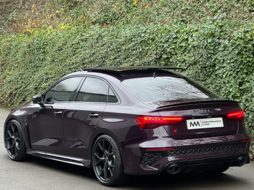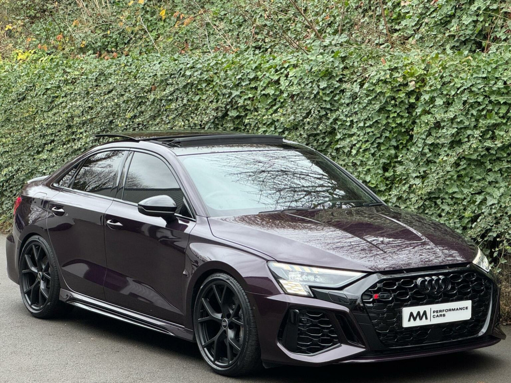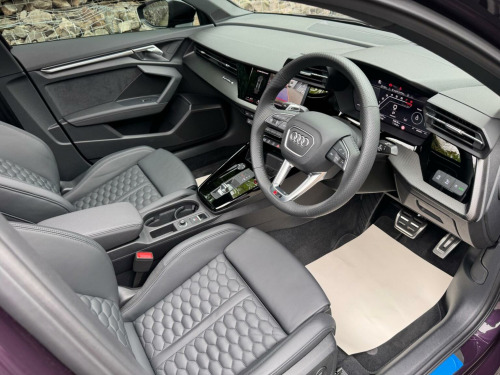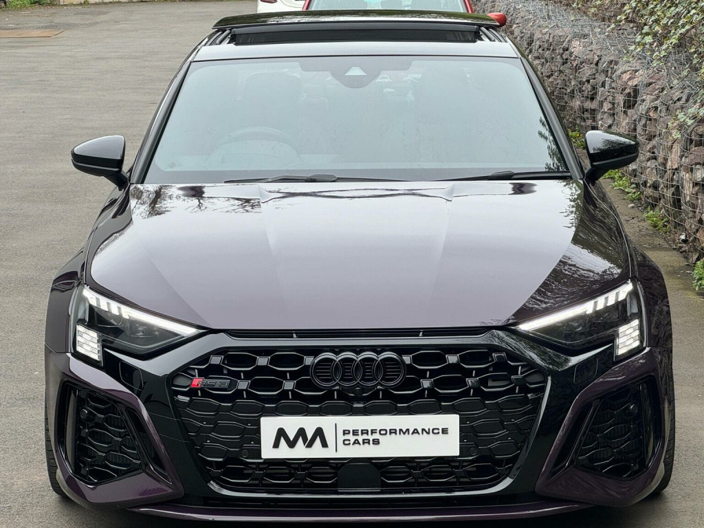 2023 Audi RS3 vorsprung finished in Audi Exclusive Merlin Purple with Full PPF, Specifications on this car include - Dynamic Pack | Carbon Ceramic Brakes | Lowering Springs & Spacers | Sliding Panoramic roof | RS Sports exhaust | Comfort and sound pack | Bang & Olufsen Premium Sound system With 3D Sound | Parking Assist with Parking System Plus | Reverse camera | Audi Matrix LED Headlights with LED Rear Lights | Heads up display | Front & Rear parking sensors | Privacy Glass | Apple Car Play & much more listed in the standard spec section below, 1 Owner From New, HPI clear, Warranty with Audi until June 2026. This vehicle has passed a thorough inspection which includes exterior and interior inspection, mechanical inspection & document and history inspection. All our cars comes with a HPI report to prove they havent been written off & are clear of finance. We are available on whats app - 07827 958980 or alternative feel free to give us a call or drop us a email using the message seller button above. We offer some of the lowest finance rates in the country on all of our vehicles. Please get in contact with us & one of our finance experts will help you build the ideal package for you based on your monthly affordability, We would love to take your vehicle in a part exchange no matter what make, model or condition or if you just want to sell your vehicle then please get in contact with us for more information. We Are Open By Appointment Only So Please Get In Contact With Us To Book A Viewing. We offer nationwide delivery on all of our cars & extended warranty packages