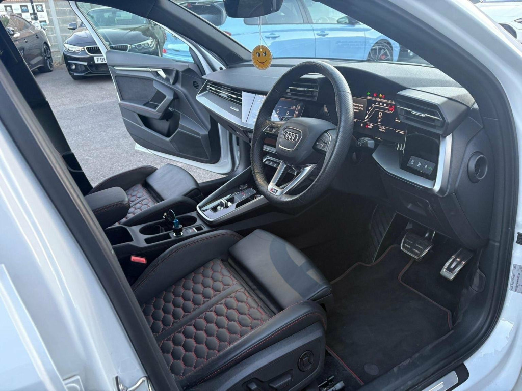 This 2023 Audi RS3 2.5 TFSI Vorsprung S Tronic quattro Euro 6 (s/s) 4dr Saloon is currently available for £45,900 in Bradford West Yorkshire with Petrol engine and Auto Clutch Manual gearbox. For more information or to arrange a viewing, click here to send us an email using form below.
