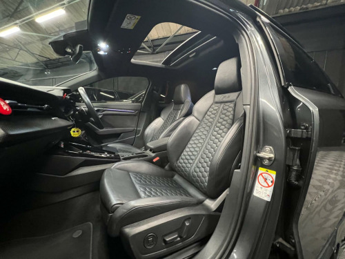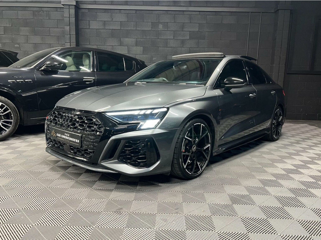 2022 Audi RS3 Vorspung Saloon in Grey with Black Heated Quilted Leather Interior. Full Service History with a recent service. Head Up Display, B&O Sound System, Adaptive Cruise Control, Adaptive Suspension, Ambient Lighting, Matrix LED Headlights, Black Styling Pack, RS Sport Exhaust System, Rear View Camera with Front/Rear Parking Sensors, Lane Assist, Factory Tinted Windows, Exterior Folding Mirrors, Keyless Entry/Start, 2 Keys +MORE! - All of our cars are subject to meticulous care and preparation by our skilled technicians and bodywork experts to guarantee peace of mind. To request a personalised presentation, arrange a test drive or to simply ask for additional info give us a call! Based in Hainault, Essex just off A12 and within easy reach of M25/M11 | 6 MONTHS WARRANTY INCLUDED | SAME DAY FINANCE ARRANGED | PART EXCHANGE WELCOME | WORLDWIDE DELIVERY SERVICES AVAILABE | SELL YOUR VEHICLE WITH US | BODYSHOP, DETAILING & WRAPPING SERVICES AVAILABLE | WWW.TCCESSEX.CO.UK