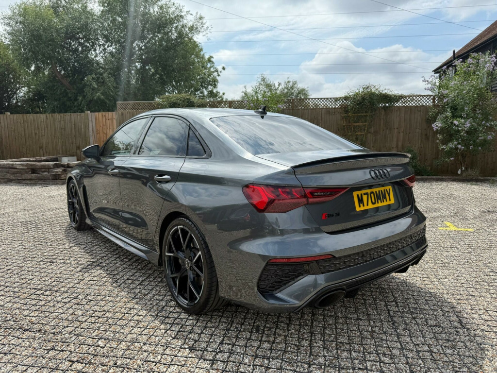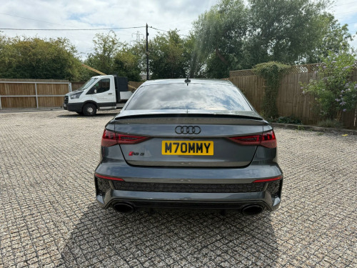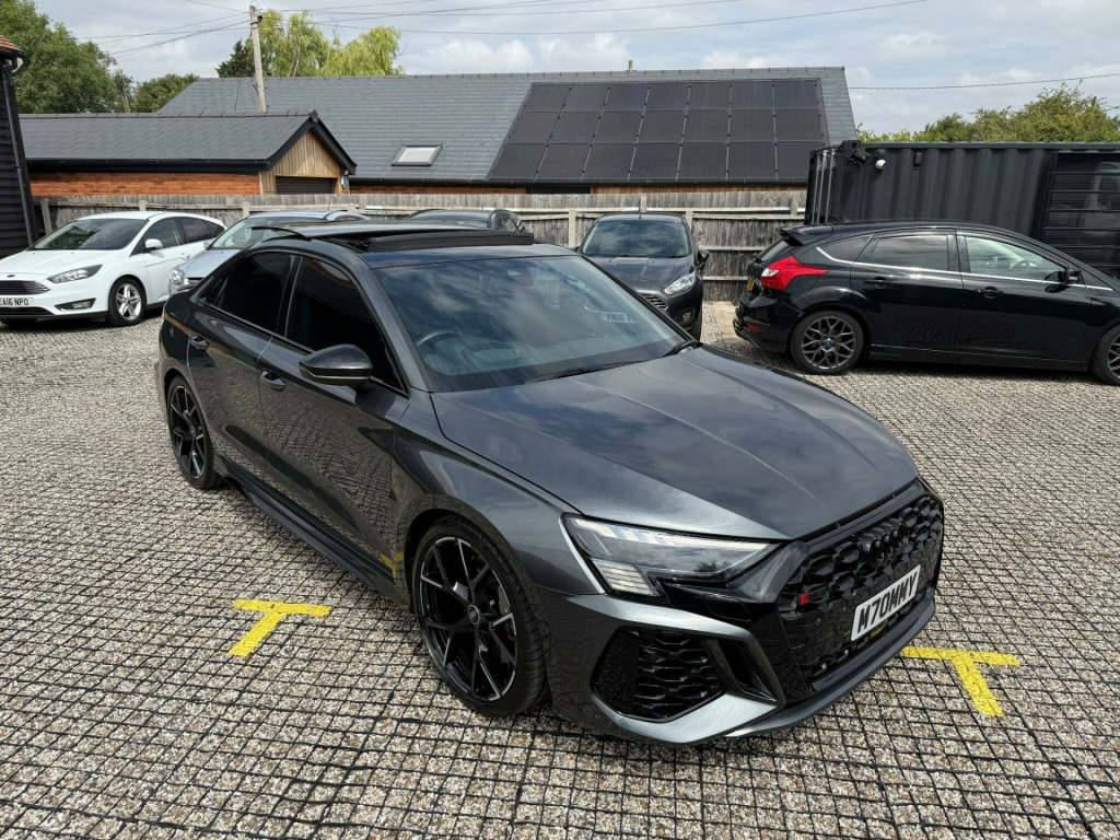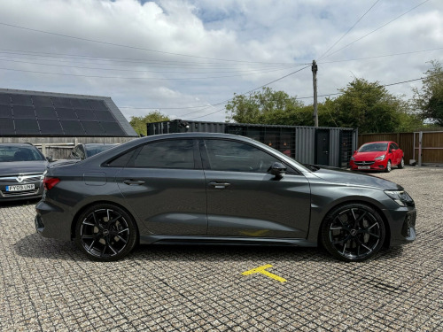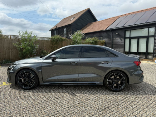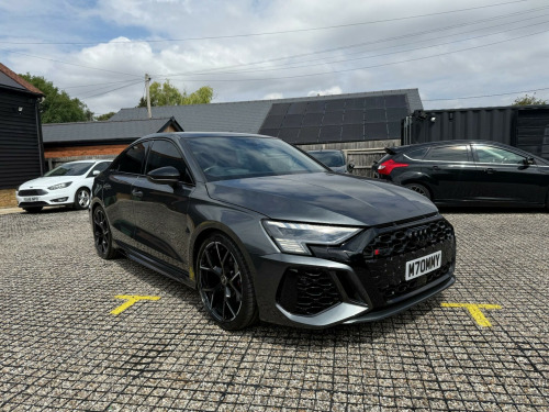 This Car Is Now Back On Its Original Registration EO22 YJZ, TCH Automotive Presents This Exceptional Audi RS3 2.5 TFSI Vorsprung S Tronic Quattro, Fresh 1 Years M.O.T, Full Audi Service History, Recent Service At Audi, Fully Loaded With Every Extra, Top Speed Increase To 180Mph, Carbon Ceramic Brakes, RS Sports Exhausts, Heads Up Display, 2 Keys, This Car Does Not Want For Anything, 4 Good Tyres, All 4 Alloys In Brand New Condition, This Car Has Been Cherished And Loved.This 2022 Audi RS3 TFSI Vorsprung offers exceptional value with its remarkably low mileage of just 23,899 miles. This four wheel drive, Euro 6 compliant performance saloon is equipped with a potent 2.5 litre petrol engine, delivering exhilarating performance. The Vorsprung trim level ensures a premium experience, enhanced by features such as the RS Dynamic Pack, Dual Zone Electronic Climate Control, and Adaptive Cruise Control for effortless journeys. Parking is made simple with the integrated Reversing Camera, while the Audi Matrix LED Headlights with dynamic indicators and headlight cleaning system provide superior visibility and a distinctive lighting signature.The Audi RS3 TFSI Vorsprung stands out with its impressive acceleration, achieving 0-62mph in a mere 3.8 seconds. This rapid acceleration demonstrates its superior performance capabilities compared to other vehicles in its class. The combination of its advanced technology, sophisticated design, and dynamic driving characteristics makes this 2022 model a truly compelling proposition for any discerning driver. ne nappa leather - black, rs dynamic pack, 19in alloy wheels - 5-y-spoke-black with graphic print, 4-way lumbar support for front seats, adaptive cruise control, adaptive suspension with audi drive select, airbags - driver and front passenger with passenger airbag deactivation, aluminium interior elements, ambient lighting pack, anti theft locking wheel bolts, anti-theft alarm, audi beam, audi connect emergency call and service, audi connect infotainment services (3 month subscription from new), audi drive select, audi matrix led headlights with led rear lights - dynamic front and rear indicators - headlight cleaning system, audi pre-sense front, audi smartphone interface, audi virtual cockpit with rs specific display, auto-dimming rear-view mirror, black styling pack, bluetooth interface, brake calipers painted in black with rs logo at the front, camera based traffic sign recognition, cloth headlining in black, collision avoidance assistant, comfort and sound package, dab digital radio, door mirrors - electrically adjustable - heated - folding - automatically dimming with memory function and integrated led indicators with kerb view function for passenger side, door sill trims - inlays in aluminium and illuminated with rs3 logo, driver assistance package, dual-zone electronic climate control, esc - electronic stabilisation control inc abs - asr and edl, electric windows - front, electrically adjustable front seats with memory function for drivers side, electronically operated child locks, first aid kit and warning triangle, front centre armrest, front side airbags with head airbags and interaction airbag, front and rear floor mats, head-up display, headlights washers, heated front seats, hill hold assist, i-size and top tether child seat mounting for the outer rear seats, interior inlays - full decorative carbon trim, lane departure warning, legal emergency call - e-call, light and rain sensor, mmi navigation plus with mmi touch, manual boot compartment lid, matt aluminium look door mirrors, matt aluminium look window trims, parking assist with parking system plus, pedals in stainless steel and footrest in black, power operated tailgate, privacy glass, progressive steering, rs body styling, rs emblem, rs exterior features in gloss black, rs sport exhaust system, rear suspension, remote central locking, reversing camera, roof colour in bodycolour, seat belt reminder with passenger presence detection in rear, side skirts in black, split folding rear seat bench - 60-40 or fully, steering wheel - 3-spoke leather-multi-function, storage package, tool kit, tyre pressure loss indicator, tyre repair kit, windscreen with acoustic glazing, windshield with heat insulated glass