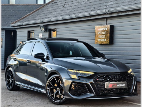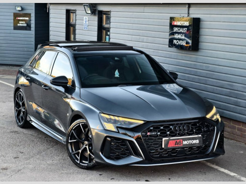 SAME DAY FINANCE AVAILABLE WITH £0 DEPOSIT. CALL OUR FINANCE TEAM FOR A QUOTATION TODAY. REQUEST A PERSONALISED VIDEO TODAY. STUNNING DAYTOANA GREY AUDI RS3 VORSPRUNG EDITION BOASTING A FULL AUDI SERVICE HISTORY & COMPLIMENTED BY A HUGE FACTORY SPECIFICATION. LOVELY CONDITION THROUGH OUT. DRIVES WELL. SUPPLIED HPI CLEAR & WITH A NATIONWIDE WARRANTY. EXTENDED APPROVED AUDI WARRANTY ON THE CAR. Rear Side Airbags with Head Airbag Syste, RS Dynamic Pack, Daytona Grey, 19in Alloy Wheels - 5-Y-Spoke-Black with, 4-Way Lumbar Support for Front Seats, Adaptive Cruise Control, Adaptive Suspension with Audi Drive Sele, Airbags - Driver and Front Passenger wit, Aluminium Interior Elements, Ambient Lighting Pack, Anti Theft Locking Wheel Bolts, Anti-Theft Alarm, Audi Beam, Audi Connect Emergency Call and Service, Audi Connect Infotainment Services (3 Mo, Audi Drive Select, Audi Matrix LED Headlights with LED Rear, Audi Pre-Sense Front, Audi Smartphone Interface, Audi Virtual Cockpit with RS Specific Di, Auto-Dimming Rear-View Mirror, Black Styling Pack, Bluetooth Interface, Brake Calipers Pai