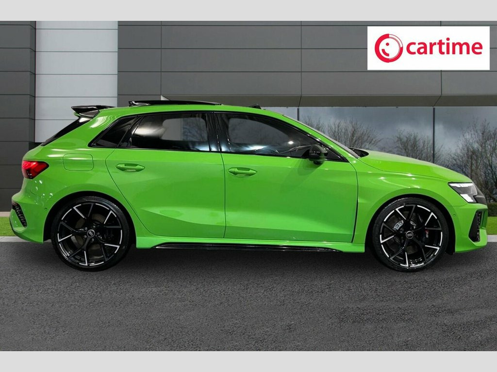 This 2022 Audi RS3 TFSI Vorsprung offers exceptional peace of mind with its MOT valid until November 2026. This striking example of the RS3 TFSI Vorsprung, presented in the desirable Vorsprung trim, is equipped with a powerful 2.5 litre petrol engine and a sophisticated four wheel drive system, ensuring dynamic performance and assured handling. As a Euro 6 emission class vehicle, it meets modern environmental standards. Notable features include Adaptive Cruise Control for effortless long distance journeys, and Parking Assist with Parking System Plus, incorporating front and rear sensors, which makes manoeuvring in tight spaces considerably easier. The Comfort and Sound Package adds further refinement with Keyless Entry, a Luxury Branded Sound System for an immersive audio experience, and a Reversing Camera integrated into the Parking System Plus. A Head Up Display provides essential driving information directly within your line of sight. The performance of this Audi RS3 TFSI Vorsprung is truly a standout aspect, accelerating from 0 to 60mph in a remarkable 3.8 seconds. This rapid acceleration demonstrates its capability and sets it apart from many other vehicles in its class. The combination of its advanced technology, luxurious appointments, and exhilarating performance makes this 2022 Audi RS3 TFSI Vorsprung a compelling choice for those seeking a premium driving experience. 19in Alloy Wheels - 5-Y-Spoke-Black with, 4-Way Lumbar Support for Front Seats, Adaptive Cruise Control, Adaptive Suspension with Audi Drive Sele, Airbags - Driver and Front Passenger wit, Aluminium Interior Elements, Ambient Lighting Pack, Anti Theft Locking Wheel Bolts, Anti-Theft Alarm, Audi Beam, Audi Connect Emergency Call and Service, Audi Connect Infotainment Services (3 Mo, Audi Drive Select, Audi Matrix LED Headlights with LED Rear, Audi Pre-Sense Front, Audi Smartphone Interface, Audi Virtual Cockpit with RS Specific Di, Auto-Dimming Rear-View Mirror, Black Styling Pack, Bluetooth Interface, Brake Calipers Painted in Black with RS , Camera Based Traffic Sign Recognition, Cloth Head