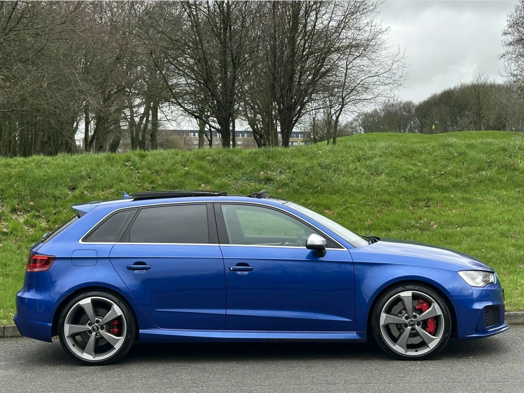 We are extremely pleased to offer this Superb 2016 Audi RS3 Quattro - 2.5 TFSI - S Tronic - Finished in Metallic Sepang Blue - Complimented with the Rare Factory Upgraded SuperSport Seats. , We handpicked this Immaculate Audi RS3 from Japan - To join our stock. NOT to be confused with poorer examples - This car is immaculate. , Covered a Genuine 33,000 miles Complete with a Full Audi Japan Service History, Just serviced Genuine Audi Main Dealer Parts. , MOT Expires January 2027. , This lovely example benefits from a Very High Specification from new, spec includes;, , - Full Electric Pack, - Climate Control, - Cruise Control, - Panoramic Sunroof, - SuperSport Seats, - Heated Seats, - Alcantara Flat Bottom Steering Wheel, - S - Tronic With Paddleshift Option, - Colour Satellite Navigation, - Bluetooth, - Media, - Multi Function Steering Wheel, - Push Button Start, - Bang and Olufsen Sound System, - Audi Drive Select, - Reverse Camera, - Front and Rear Parking Sensors, - 19 Diamond Cut Alloys, - Pirelli P Zero Tyres All Round, - LED Xenon Headlights, - LED Rear Lights, - Folding Mirrors, - DAB Radio, - CD / MP3 Player, - ISOFIX, , Plus so much more…. , This is a Grade 4.5 IMPORT which is the highest grade possible for a used car. , This is a highly maintained, cherished example which clearly shows by looking at the condition inside and out. , An absolute gem!, , Overall a stunning example of a popular performance hatchback, finished in the best colour Sepang Blue with the upgraded supersport interior. , Viewing By Appointment - Part Exchange Welcome